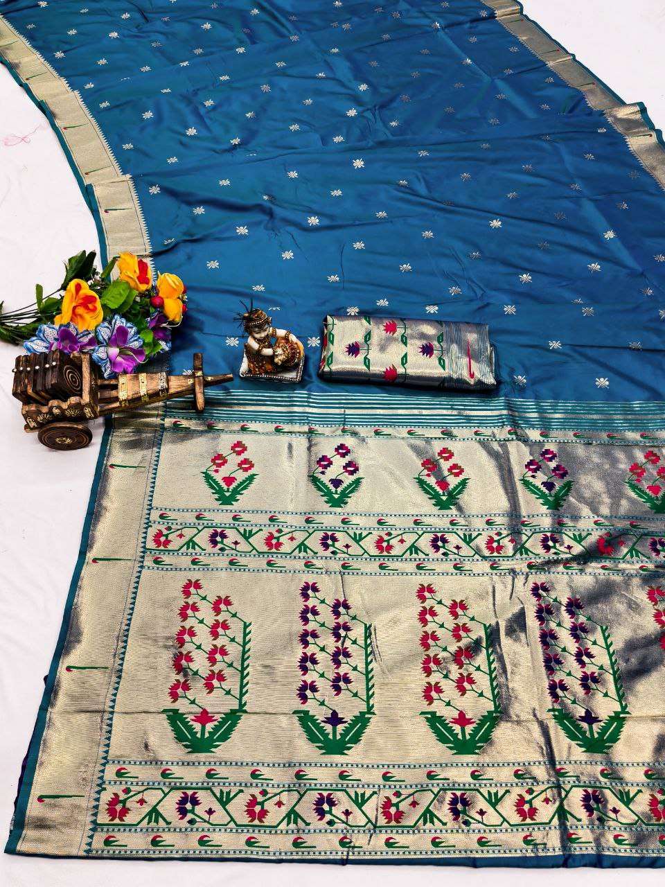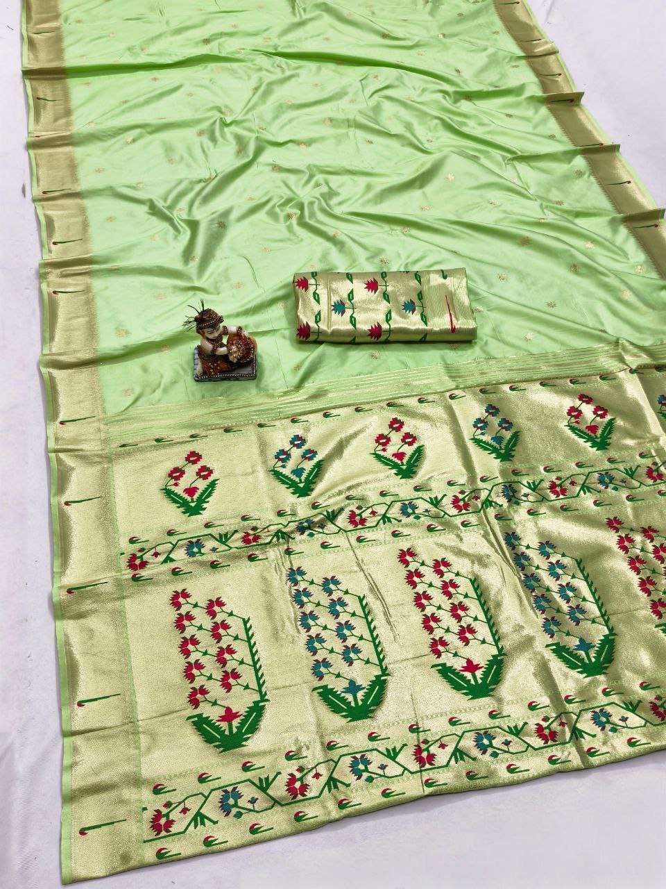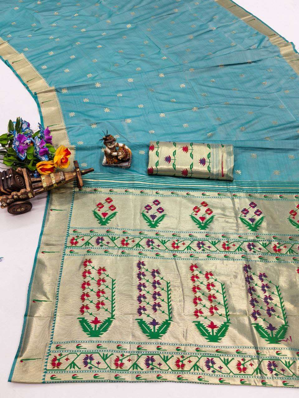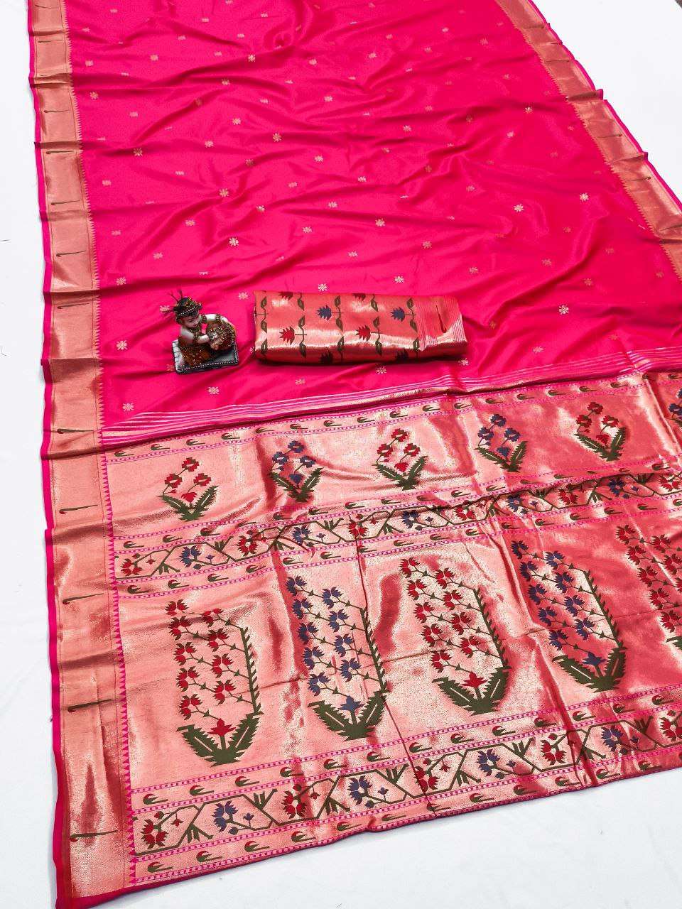 RENUKA PAITHANI COLLECTION SILK SAREE WITH MUNIYA BORDER GOLD JARI BUTTI PALLU BUY ETHNIC