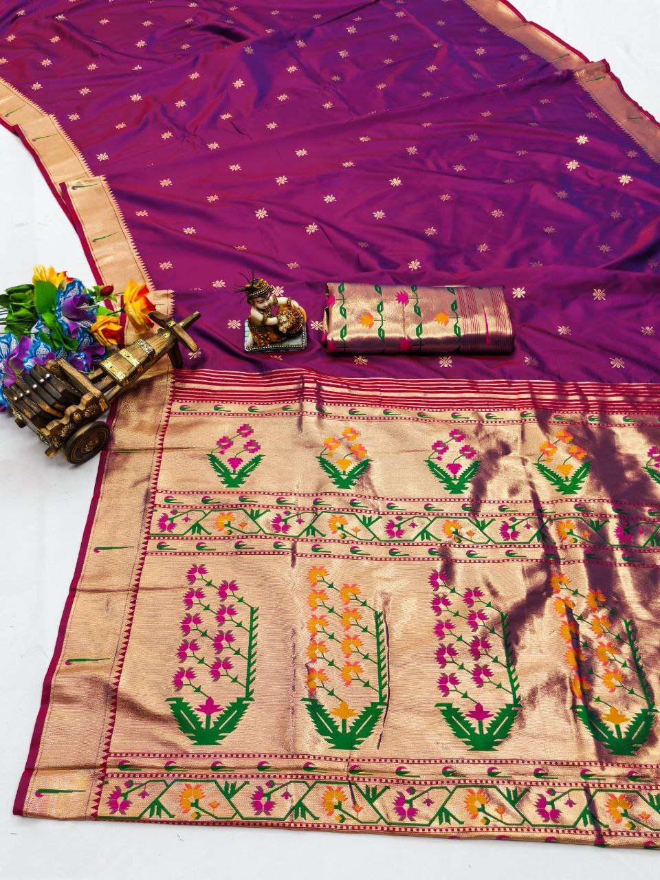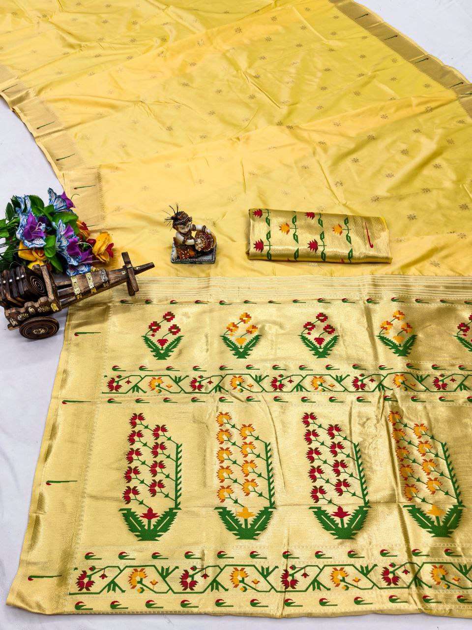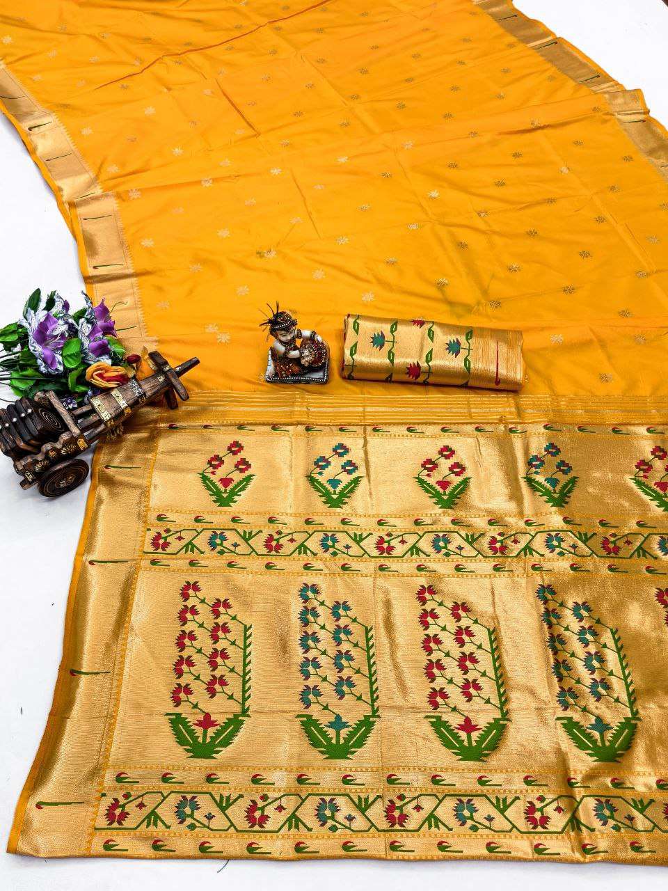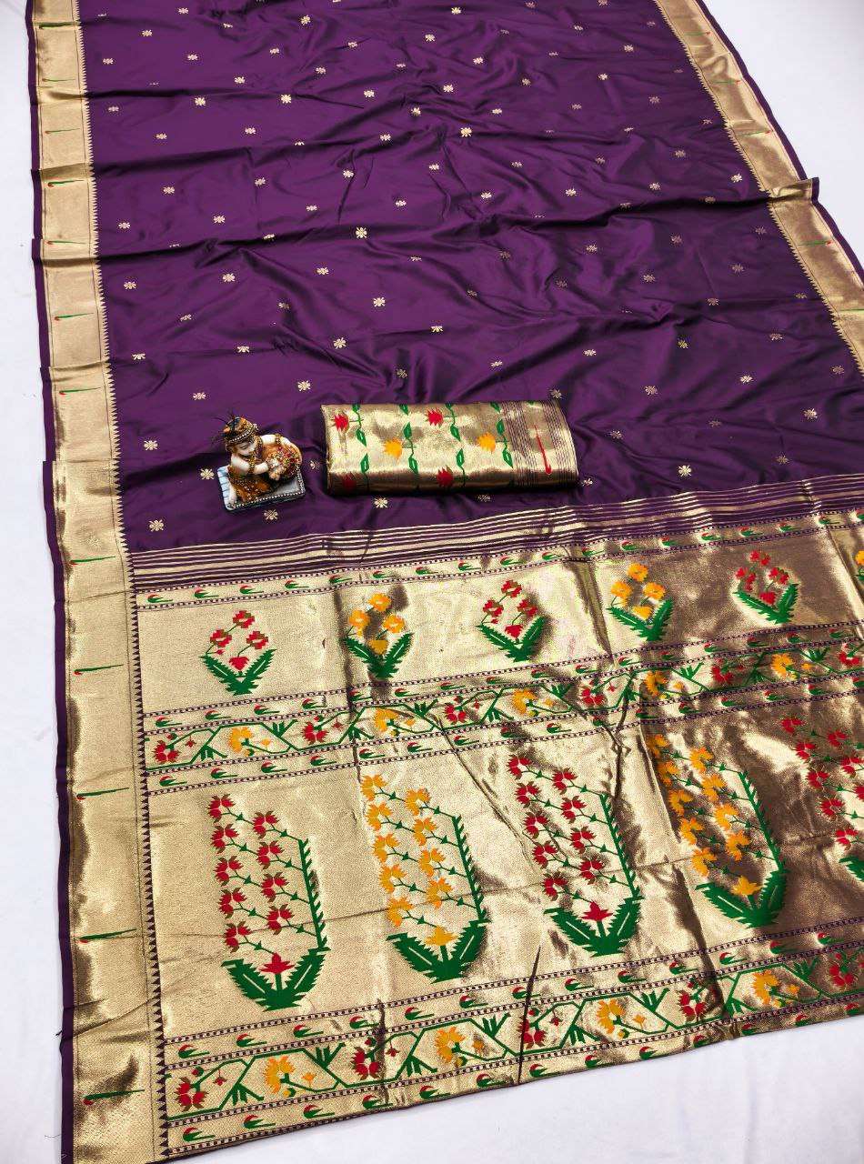 Title | RENUKA PAITHANI COLLECTION SILK SAREE WITH MUNIYA BORDER GOLD JARI BUTTI PALLU BUY ETHNIC |