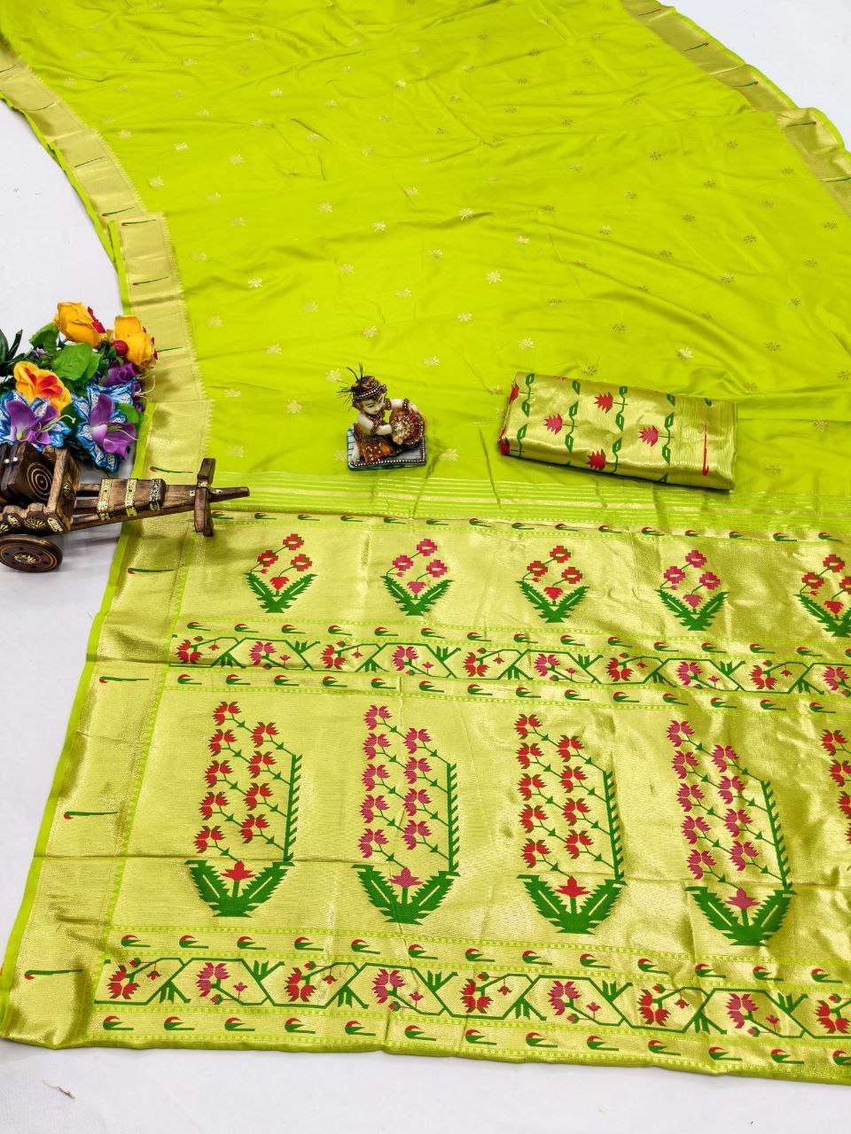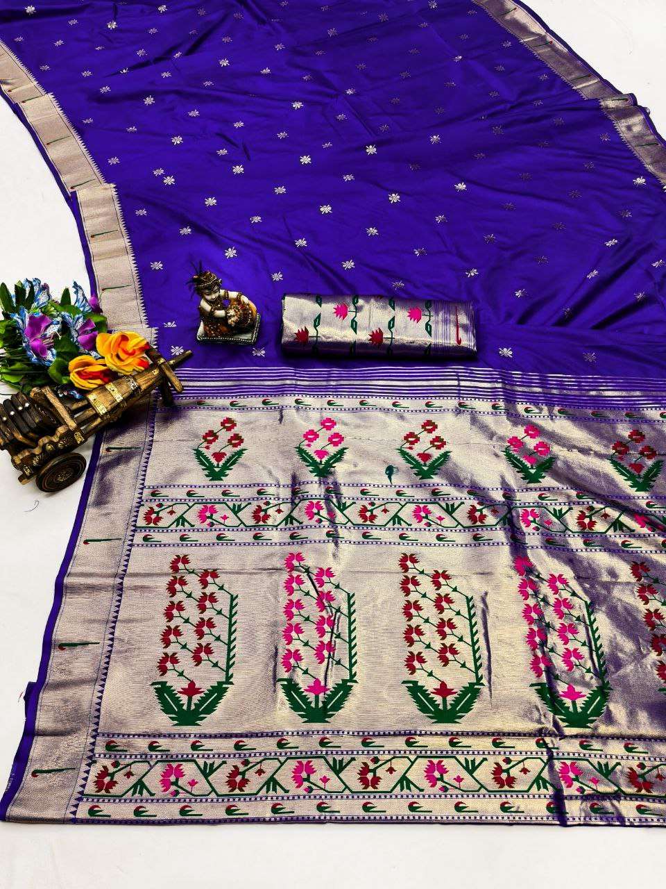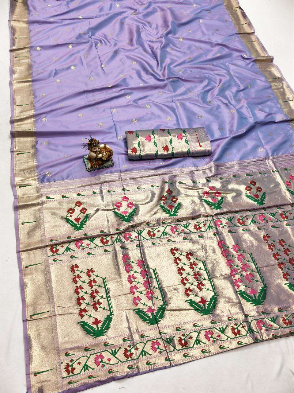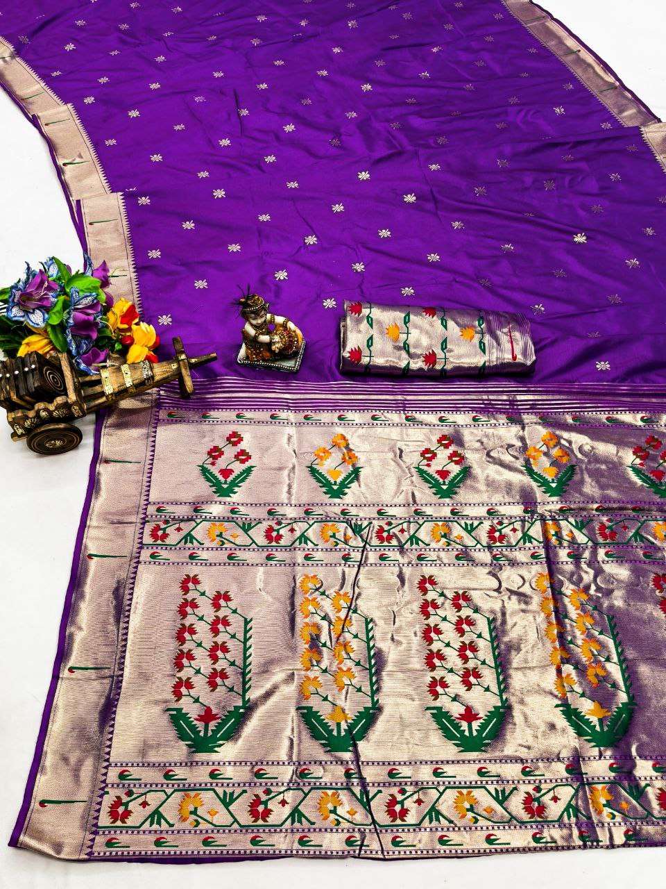 Title | RENUKA PAITHANI COLLECTION SILK SAREE WITH MUNIYA BORDER GOLD JARI BUTTI PALLU BUY ETHNIC |