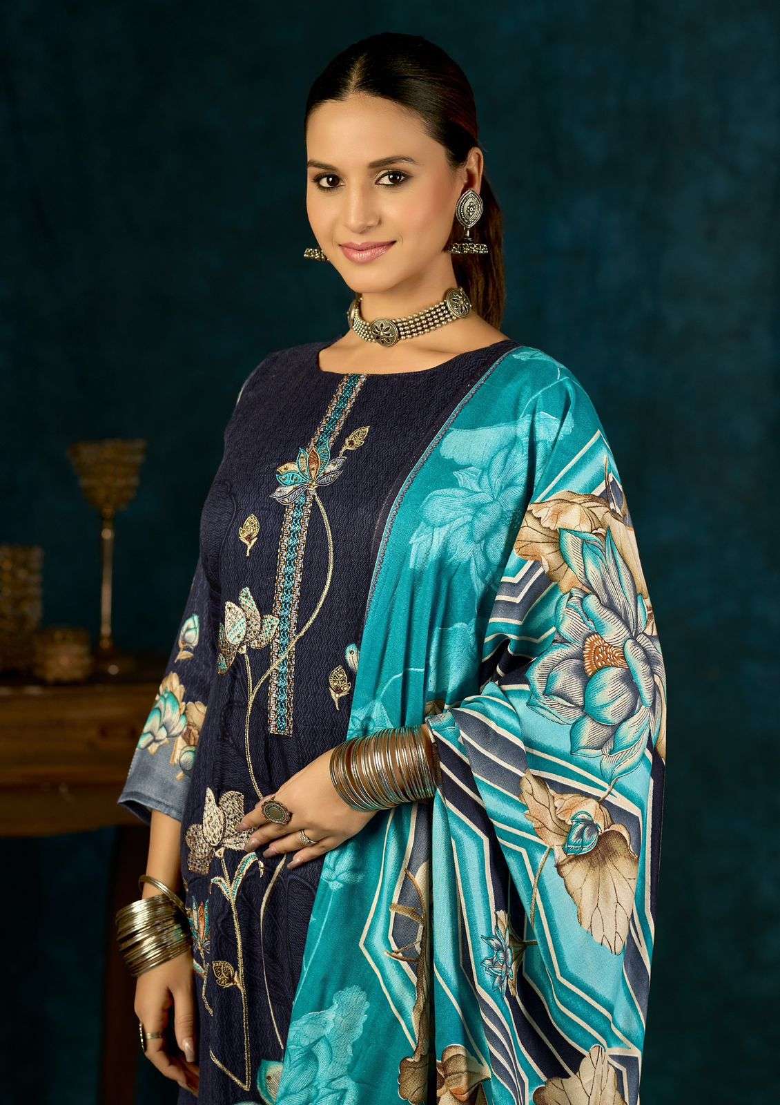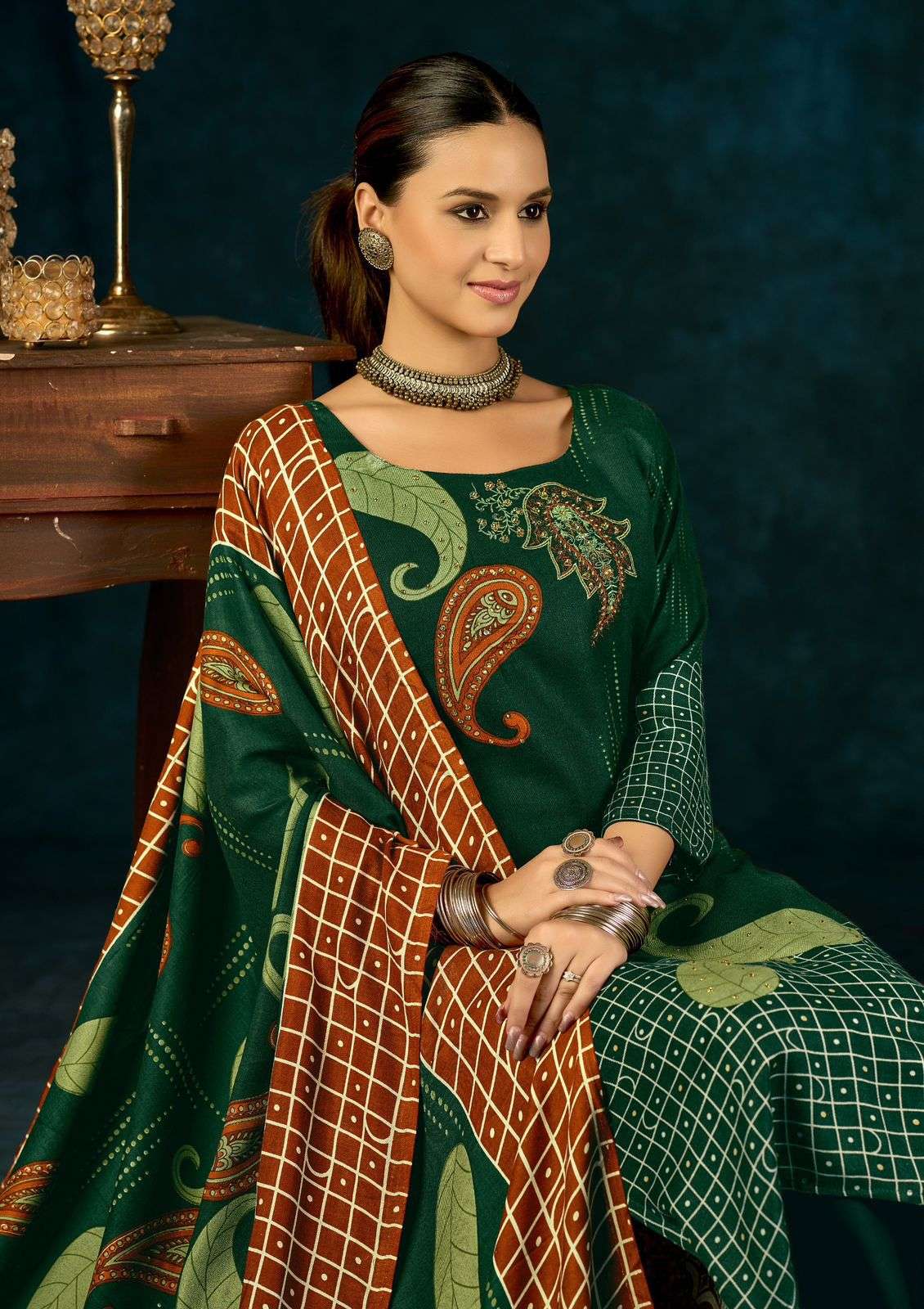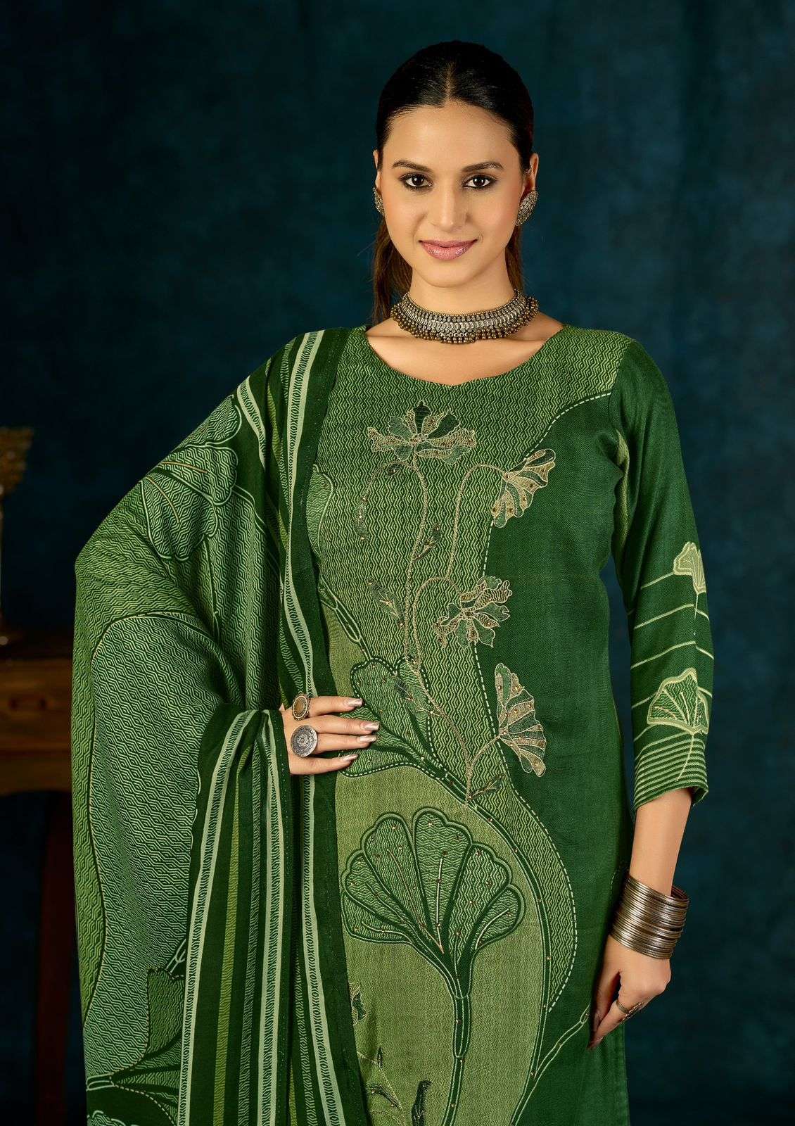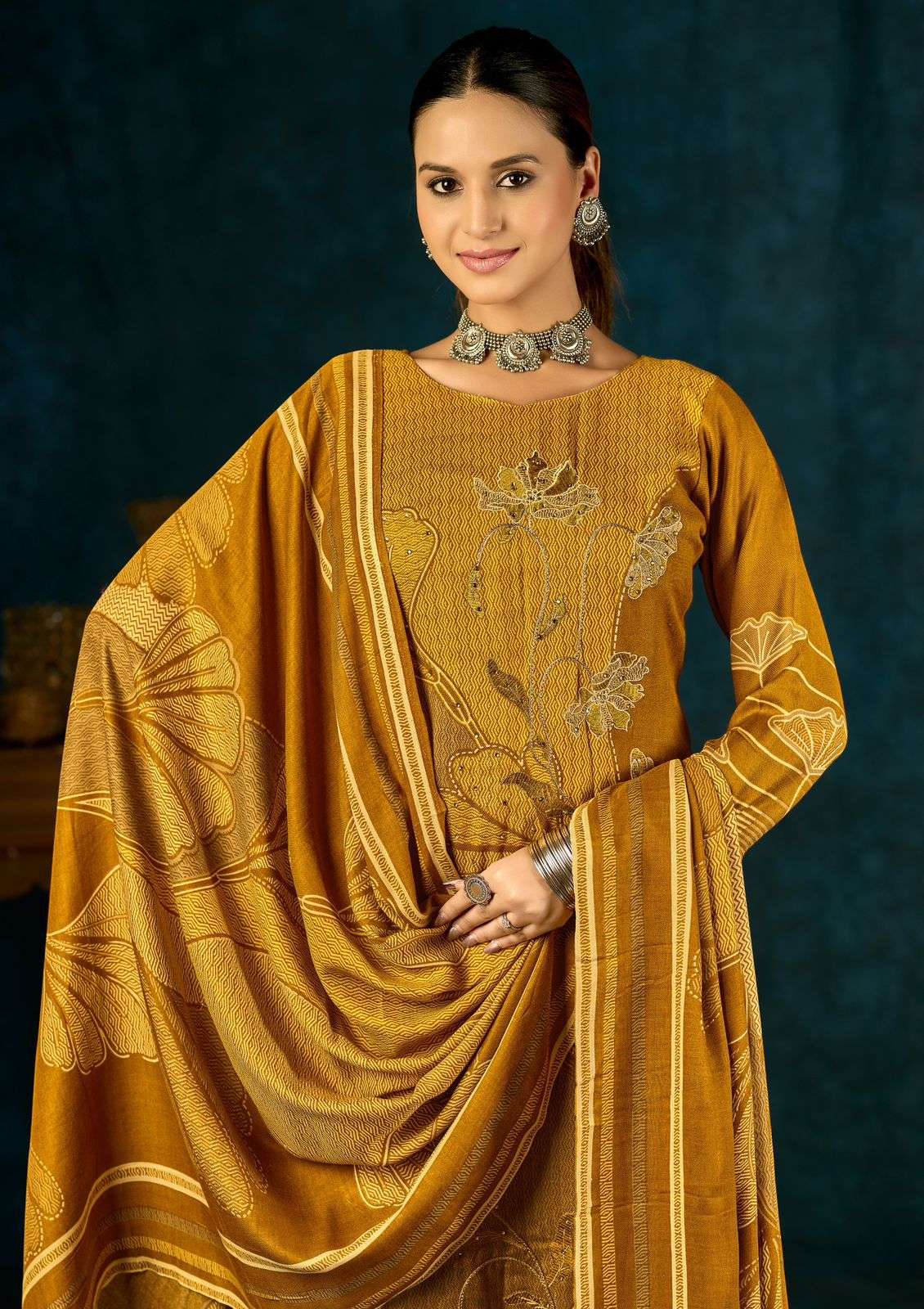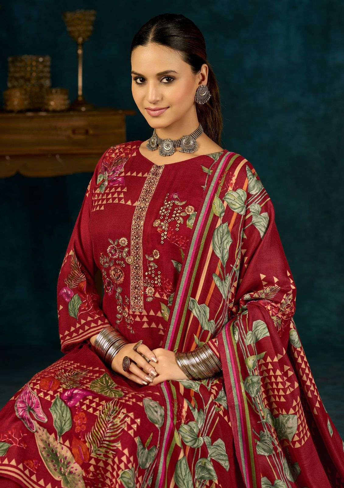 Top - PURE VISCOSE PASHMINA PRINT WITH ELEGANCE EMBROIDERY AND HANDWORK Bottom -WOOLLEN DYED DUPATTA -PURE VISCOSE PASHMINA PRINT FULL SET ONLY |