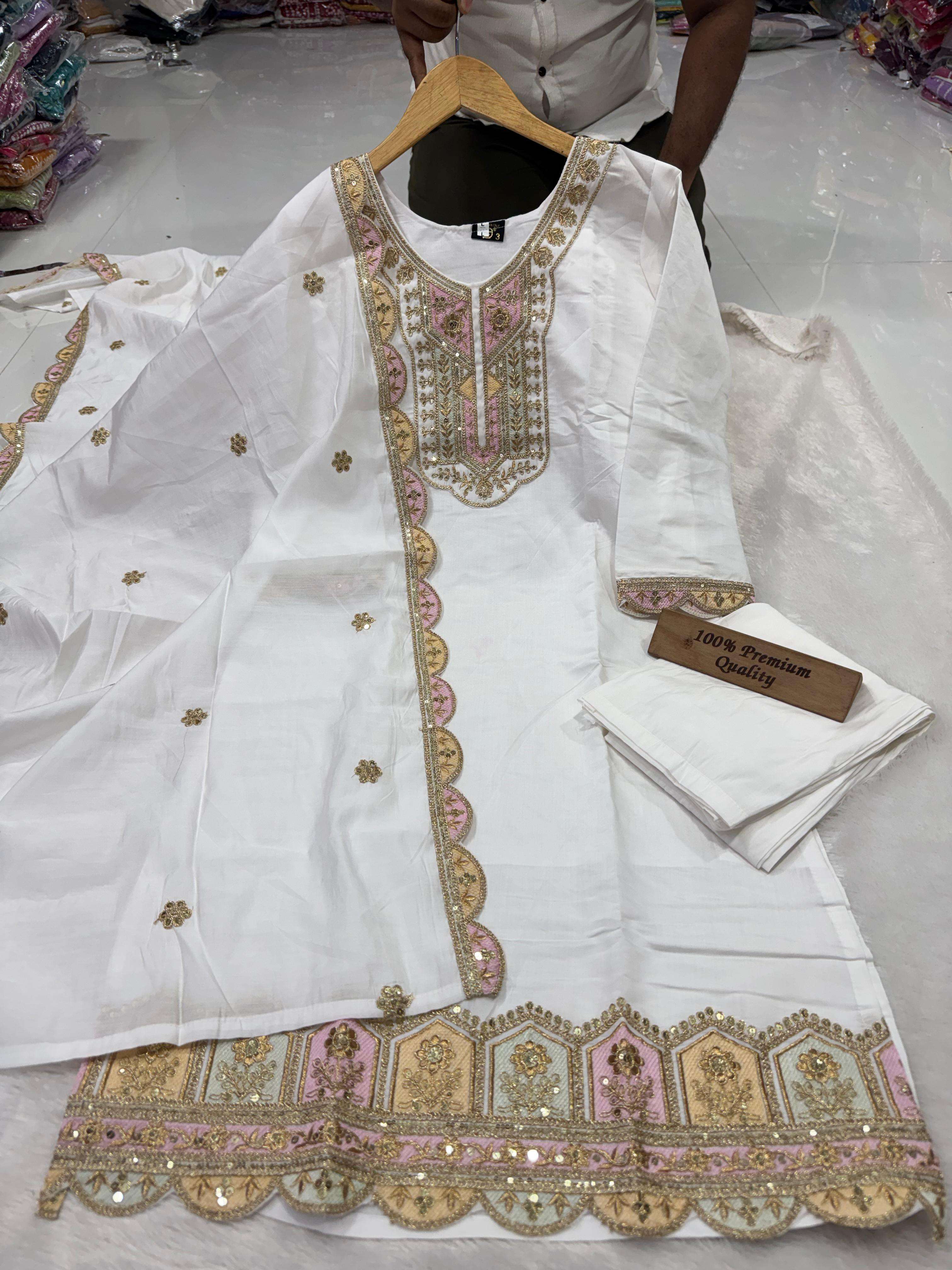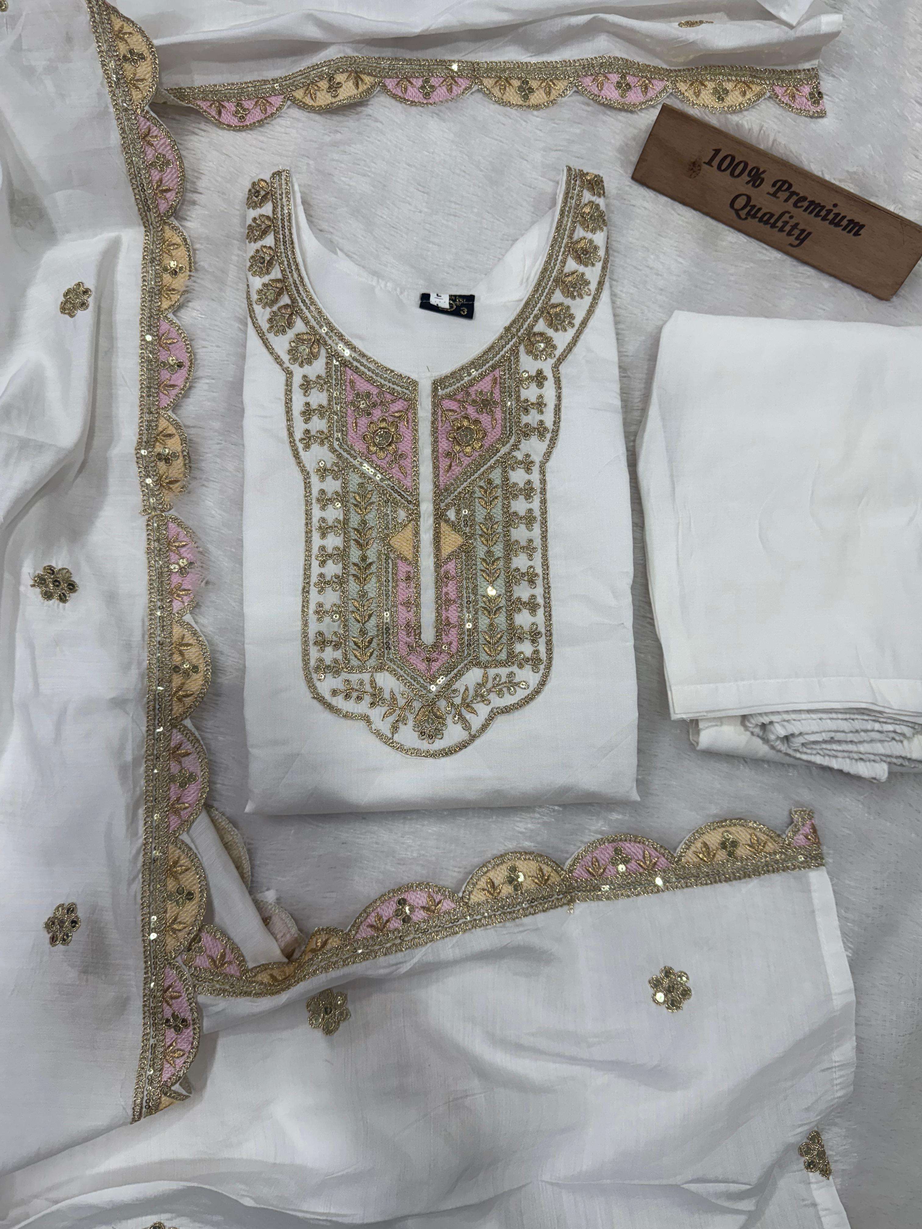 Title | ROMAN SILK WHITE SHADES SEQUENCE EMBROIDERY WORK READYMADE SUITS BEST COLLECTION |