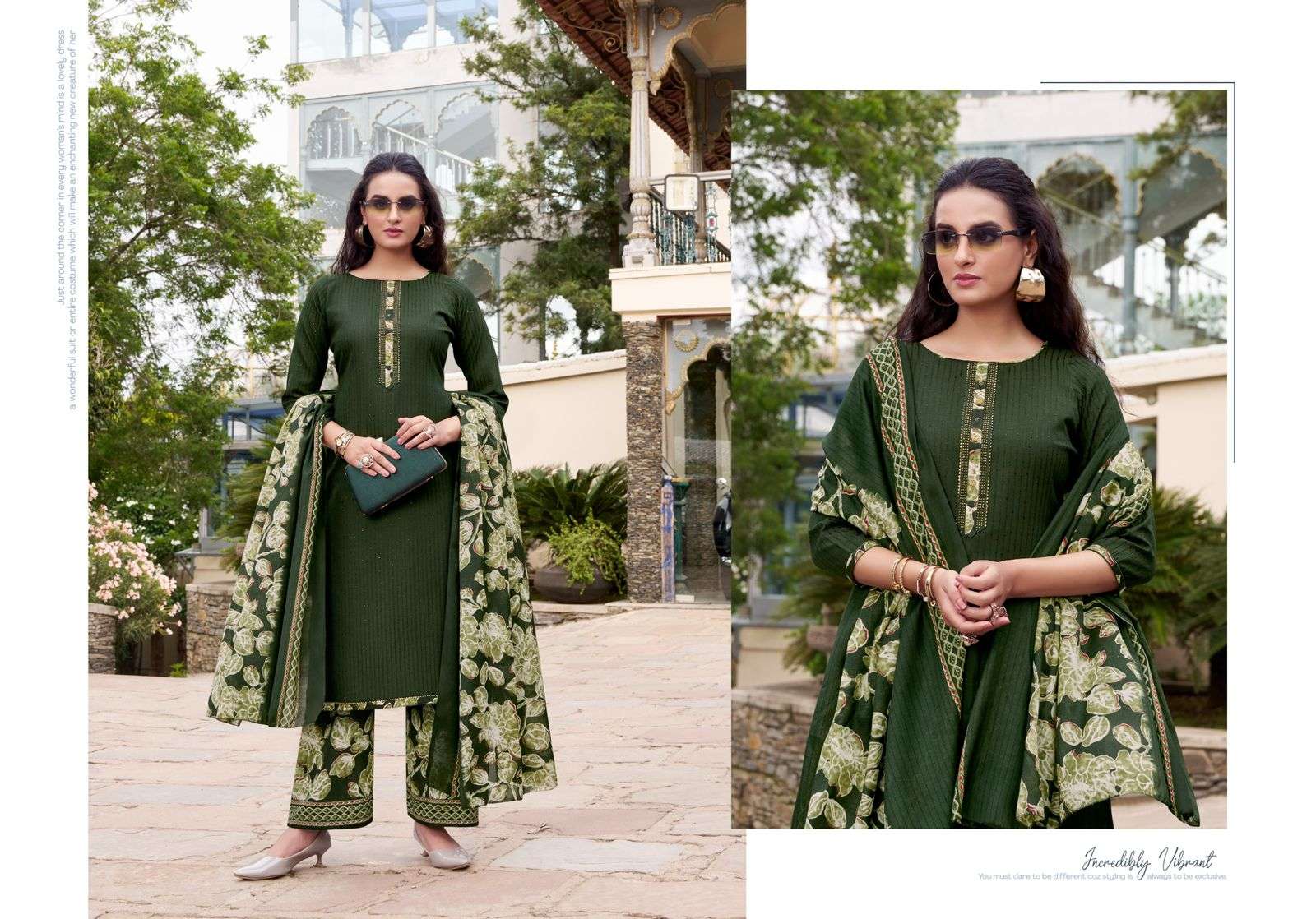 "PATIALA HOUSE" 🔸 Top: Premium Soft Cotton with Self Embroidery Work & Swarovsky Work. (2.50 mtrs) 🔸 Dupatta: Soft Cotton Mal mal dupatta. (2.30 mtr) 🔸 Bottom: Soft Cotton plazo print. (2.5 mtrs apx) 🔸️Pcs: 08 FULL SET ONLY |