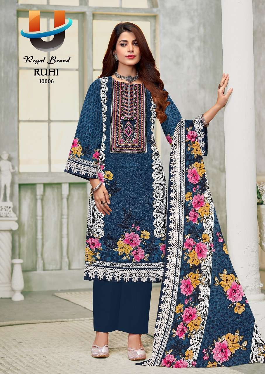 Buy Online ROYAL RUHI VOL 10 SUMMER DAILY HOME WEAR COTTON PRINTED SALWAR SUIT CATALOG 8 Pcs of Full Catalogue at Wholesale Price. Looking for ROYAL RUHI VOL 10 SUMMER DAILY HOME WEAR COTTON PRINTED SALWAR SUIT CATALOG Full Catalouge at Best Price? Buy Now ROYAL RUHI VOL 10 SUMMER DAILY HOME WEAR COTTON PRINTED SALWAR SUIT CATALOG at Wholesale Rate of Rs 1960 with Total 8 Pcs from authroized dealer and supplier of ROYAL Brand. Cost of Each piece is just only Rs 245 which is very low and affordable price to resale the product in your retail store Ethnic Export is Surat based Wholesale Supplier & Dealer of ROYAL Brand. Click on Brand name to Know more about ROYAL Brand's products.Call or Whatsapp on +91-9825759366 for booking or enquiry