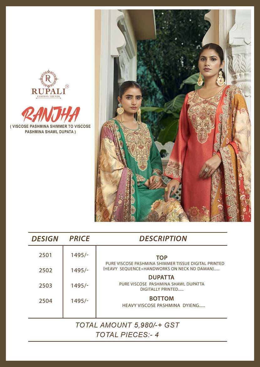 Title | RUPALI FASHION RANJHA WINTER SPECIAL PAKISTANI LOOK PASHMINA PRINT SUIT FOR DEALER |