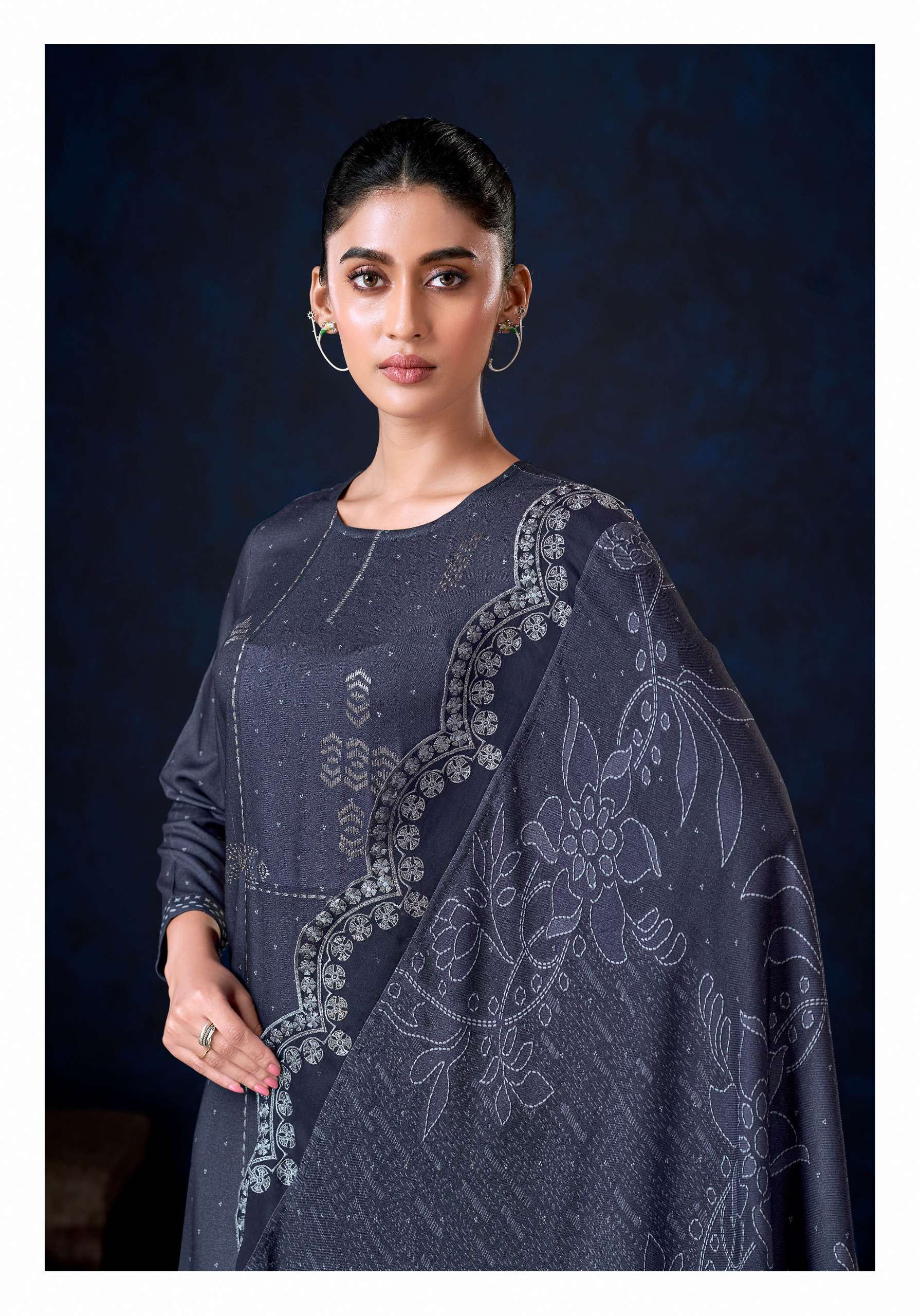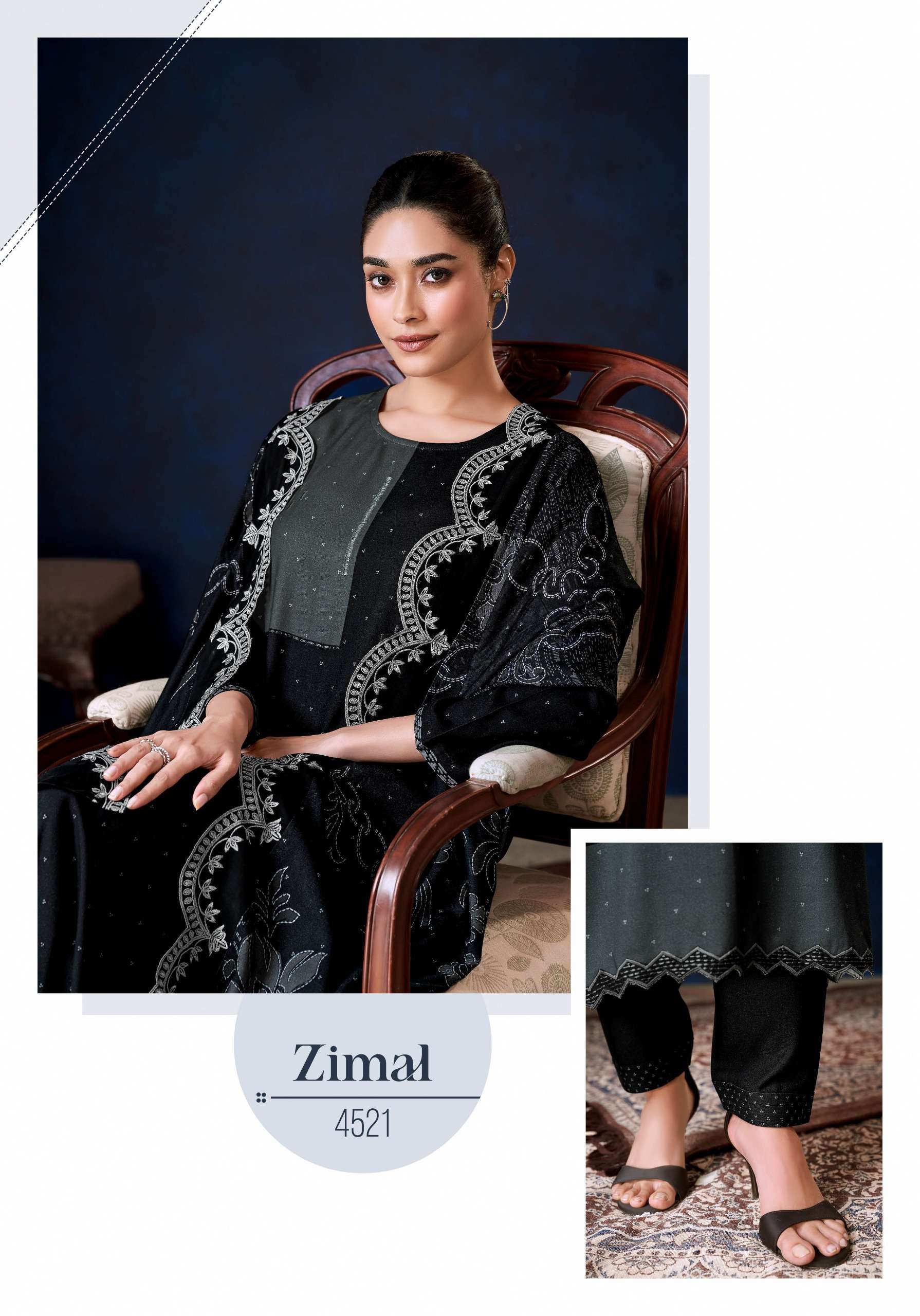 ZIMAL TOP - PURE PASHMINA TWIL DIGITAL PRINT WITH EMBROIDERY AND FANCY DAMAN EMBROIDERY BOTTOM - PURE PASHMINA TWILL DYED WITH DIGITAL PRINTED PLAZZO DUPATTA - PASHMINA TWILL DIGITAL PRINTED WITH FANCY EMB. LACE FULL SET ONLY |