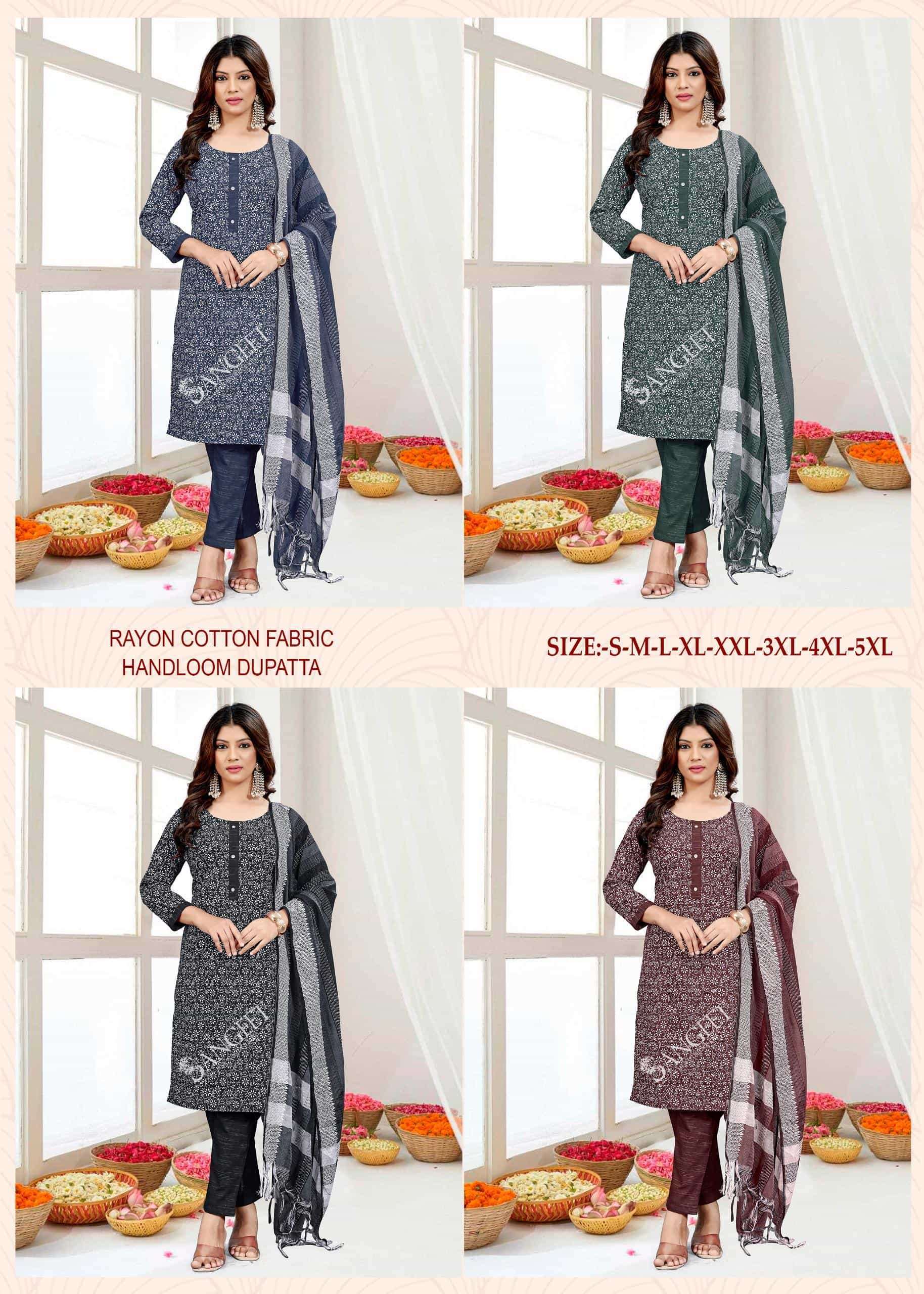 Buy Online SANGEET RABDI FRY VOL 1 RAYON PRINT 3 PIECE SUIT REGULAR BEST SUPPLIER 4 Pcs of Full Catalogue at Wholesale Price. Looking for SANGEET RABDI FRY VOL 1 RAYON PRINT 3 PIECE SUIT REGULAR BEST SUPPLIER Full Catalouge at Best Price? Buy Now SANGEET RABDI FRY VOL 1 RAYON PRINT 3 PIECE SUIT REGULAR BEST SUPPLIER at Wholesale Rate of Rs 2000 with Total 4 Pcs from authroized dealer and supplier of SANGEET Brand. Cost of Each piece is just only Rs 500 which is very low and affordable price to resale the product in your retail store Ethnic Export is Surat based Wholesale Supplier & Dealer of SANGEET Brand. Click on Brand name to Know more about SANGEET Brand's products.Call or Whatsapp on +91-9825759366 for booking or enquiry