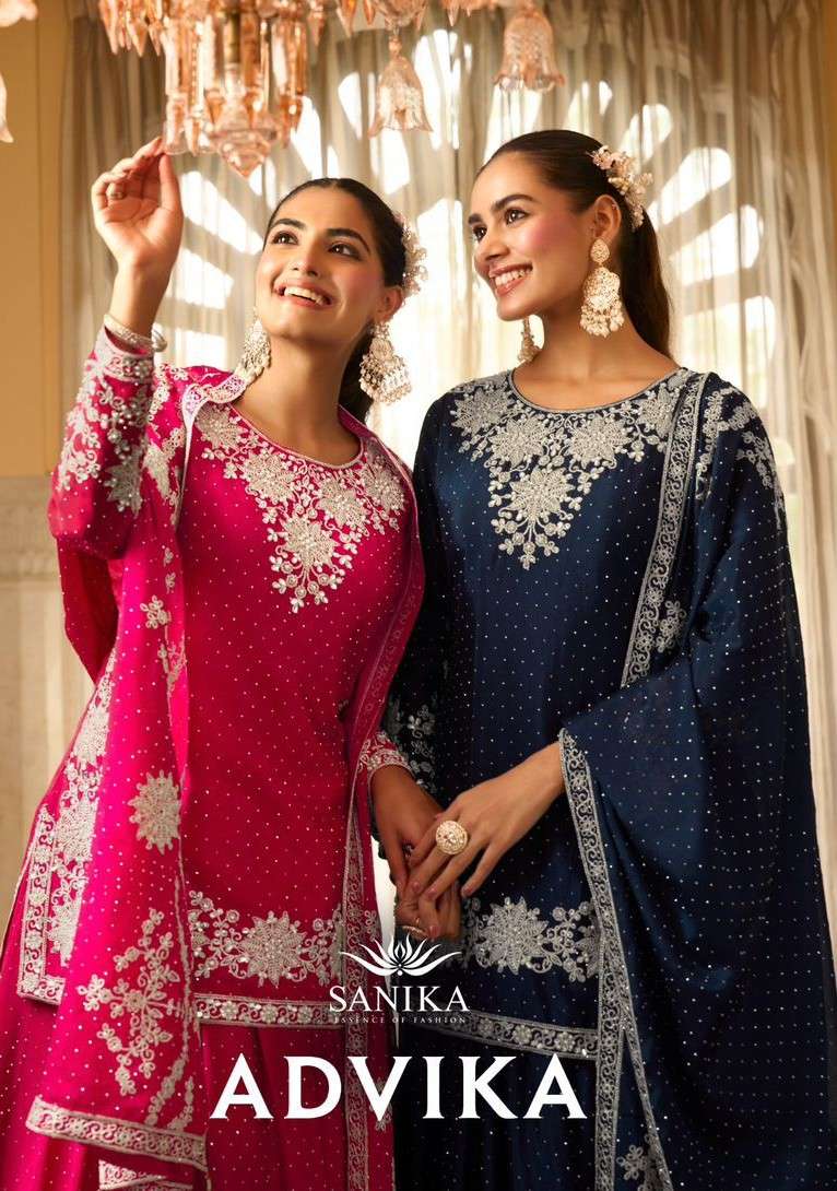 Title | SANIKA FASHION ADVIKA PREMIUM CHINON SILK HEAVY WORK SHARARA SUIT TO WEDDING WEAR CATALOG |
