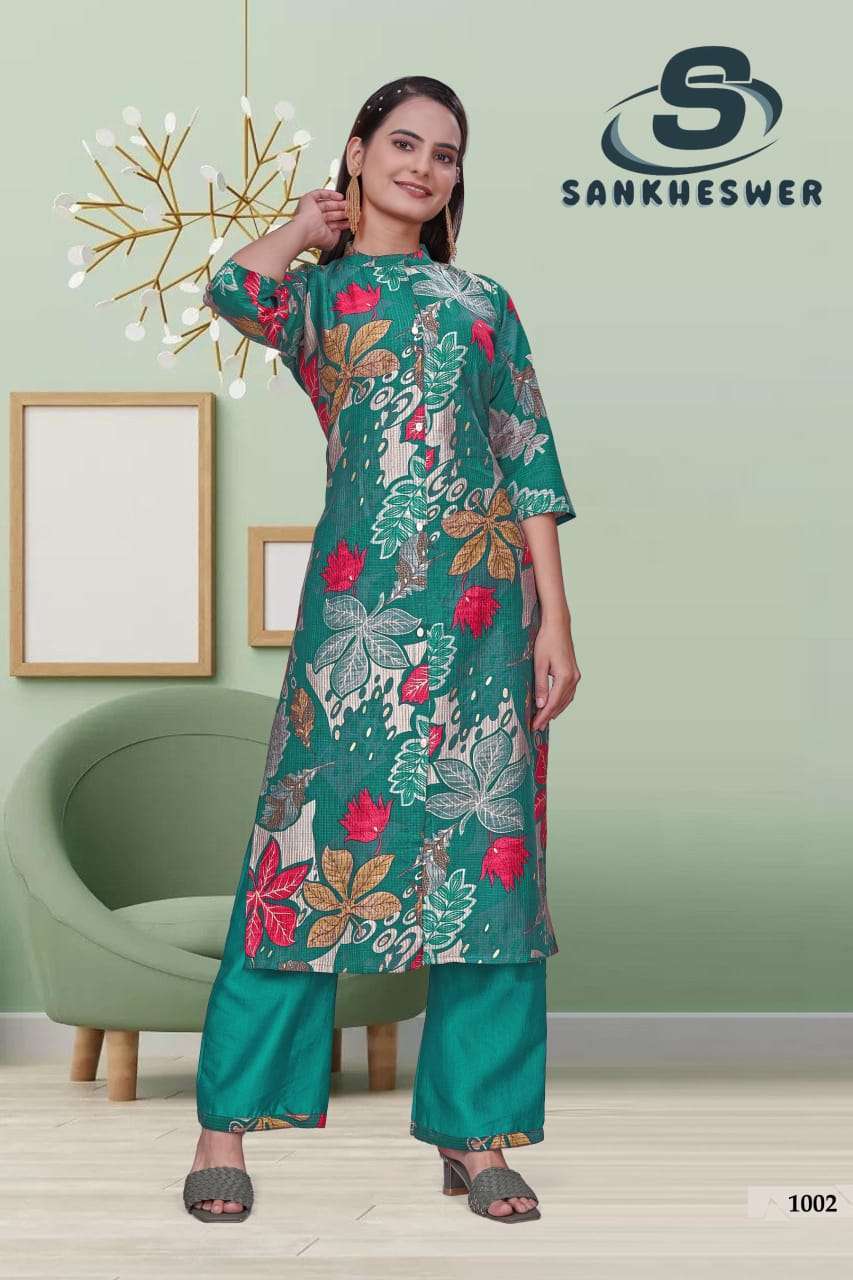 SANKHESWER MASTI VOL 1 OFFICE CASUAL WEAR DESIGNER CORD SET TO KURTI PANT TRADER