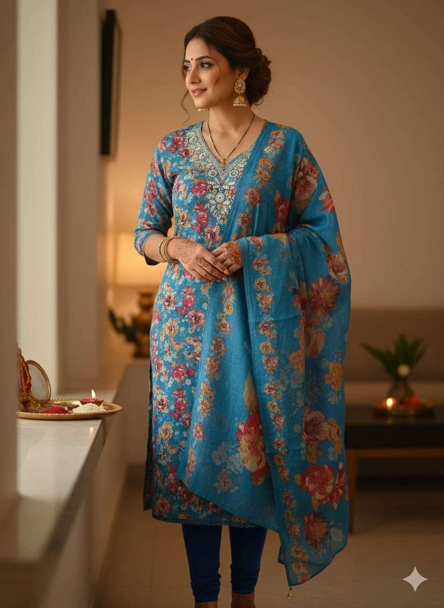🥇 Fabrics details🥇 👗*Top: - Viscose Modal Muslin Digitally Foil Prints With Beads Work 📦Designes:-4 Pcs FULL SET ONLY |