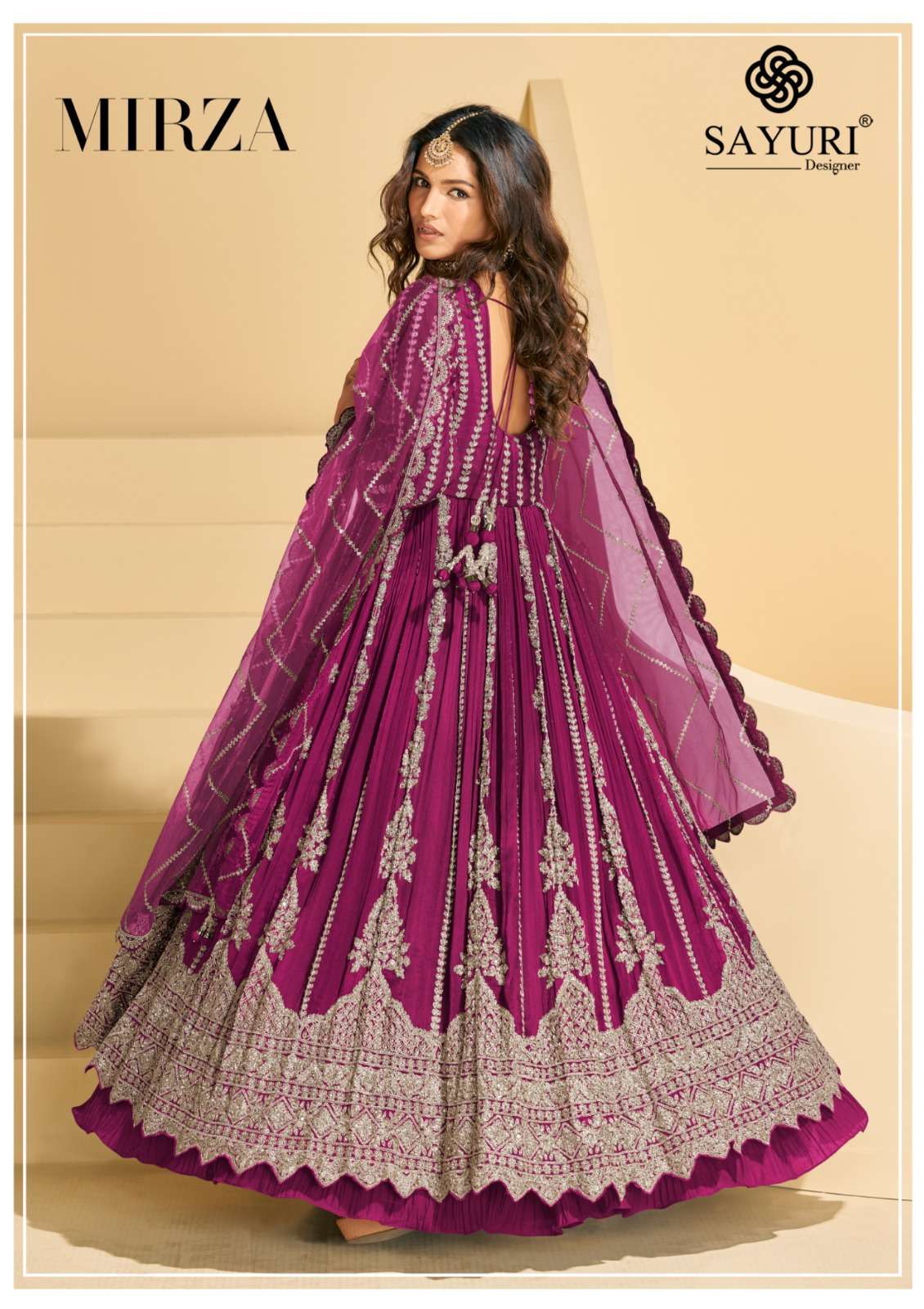 Sayuri Designer Mirza Chinon Silk Heavy Embroidery work Long Anarkali Style Designer suits