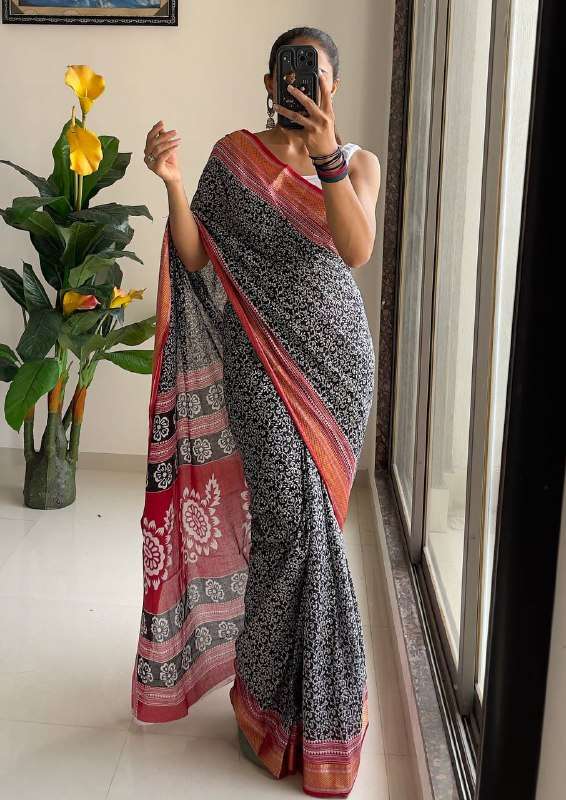 Title | SELFI 8 INDIAN WOMEN AJRAKH PRINT MULMUL SAREE COLLECTION DEALER MARKET PRICE |