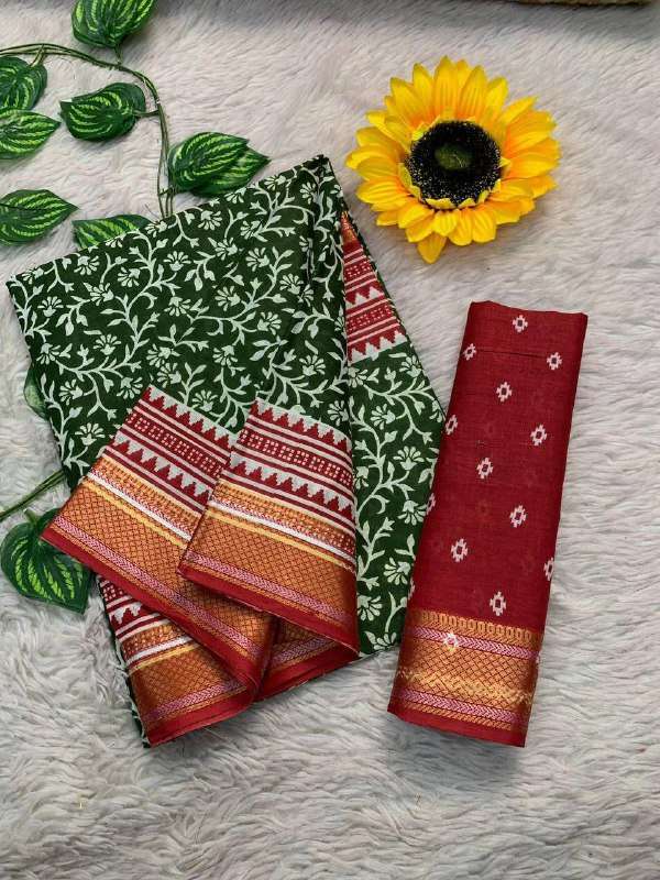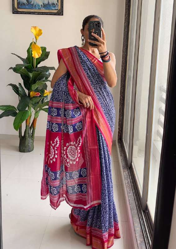 Fabric :- Primum Mulmul Cotton With Hevy Zari Bordar Beutiful Bagru Ajrakh Printed Sarees With Blouse Cut :- 6.30 Mtr Sarees With Blouse Pice *🎨 Colours : 5* SINGLE ALSO AVA |