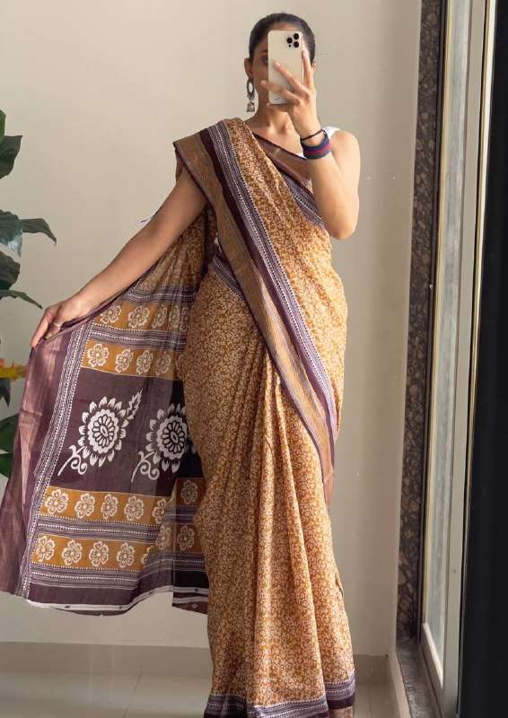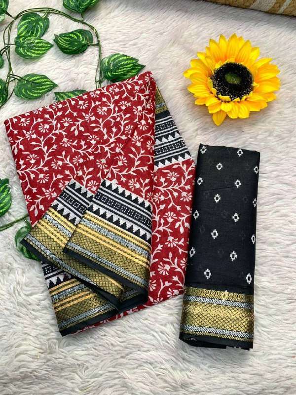 SELFI 8 INDIAN WOMEN AJRAKH PRINT MULMUL SAREE COLLECTION DEALER MARKET PRICE