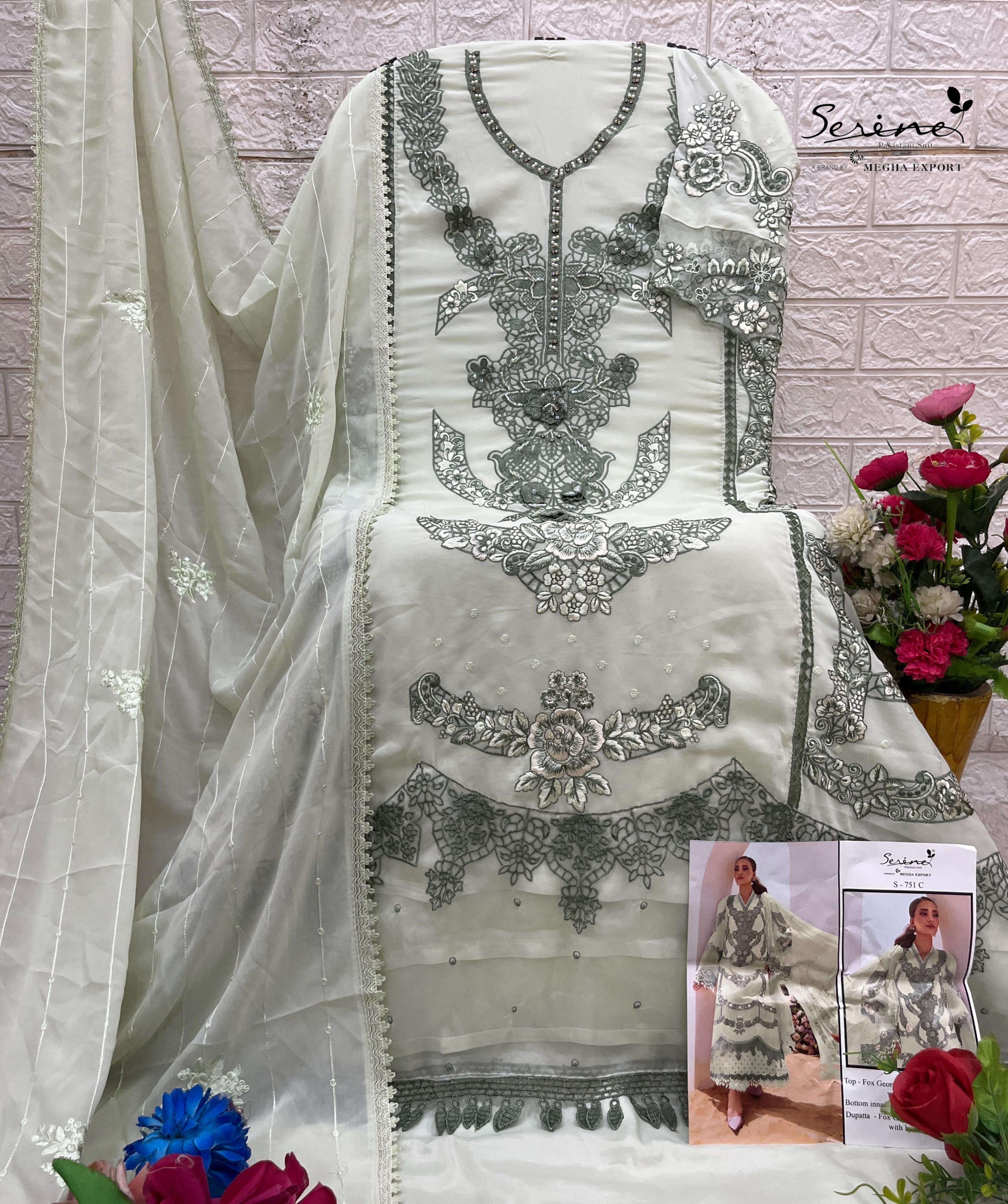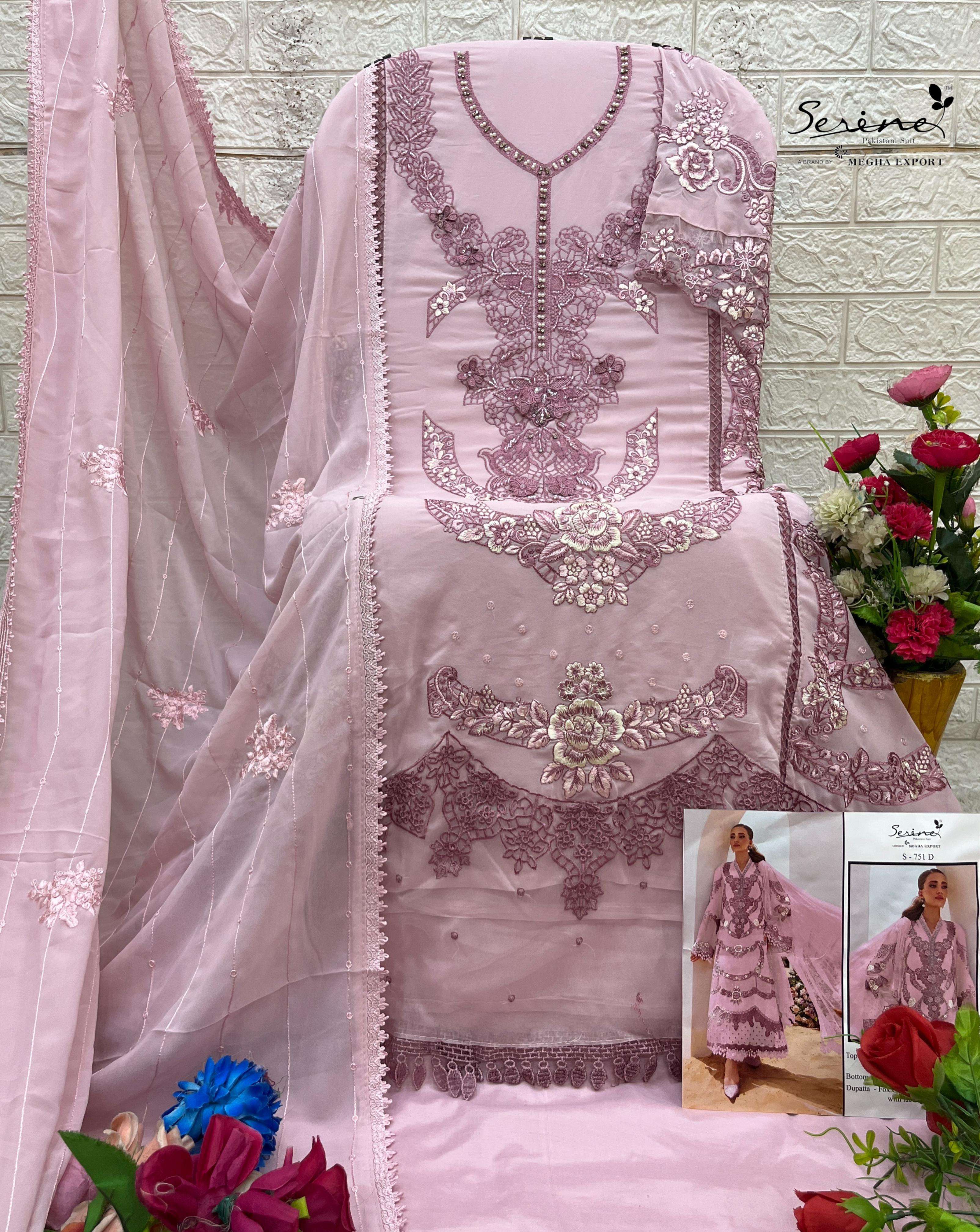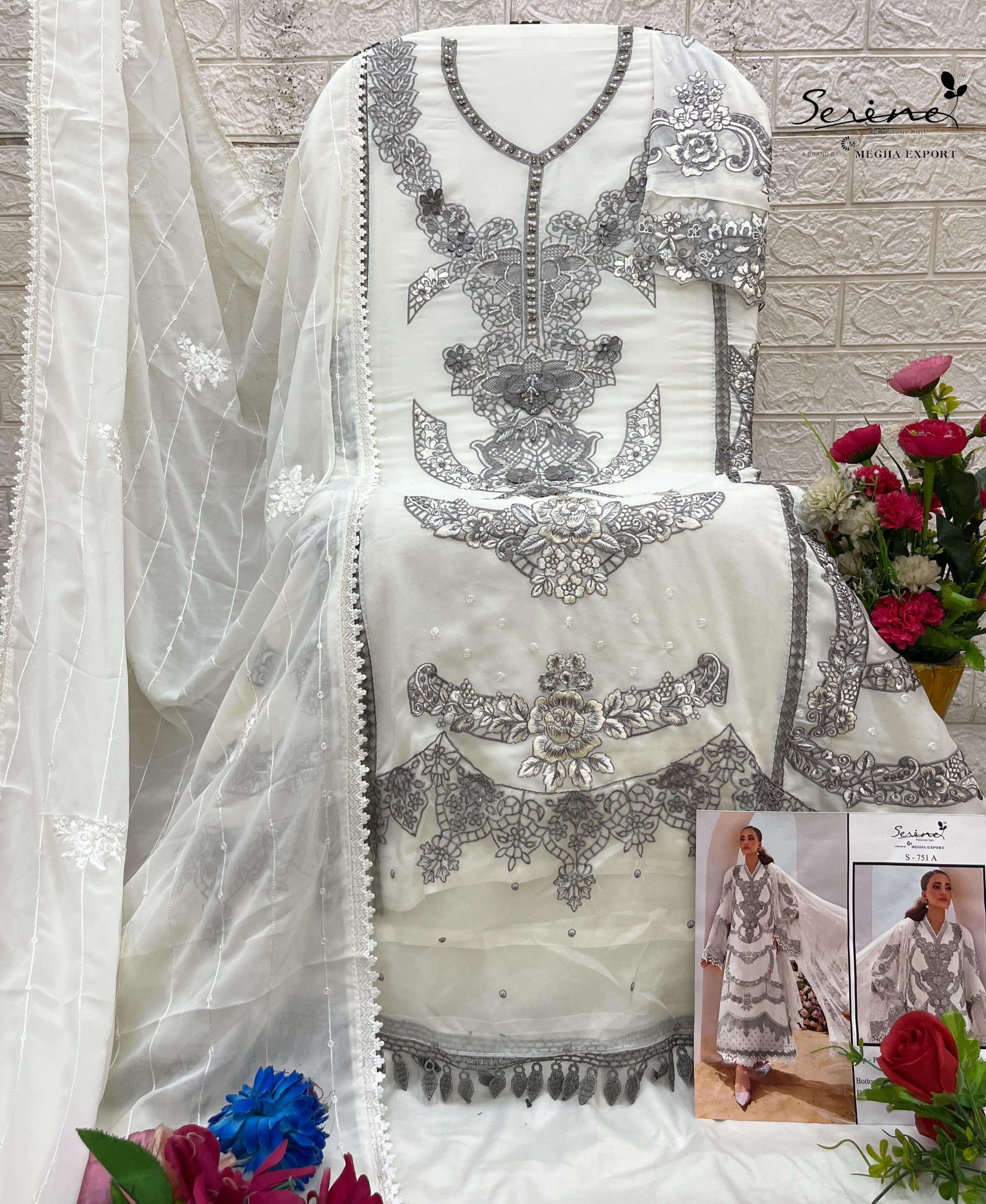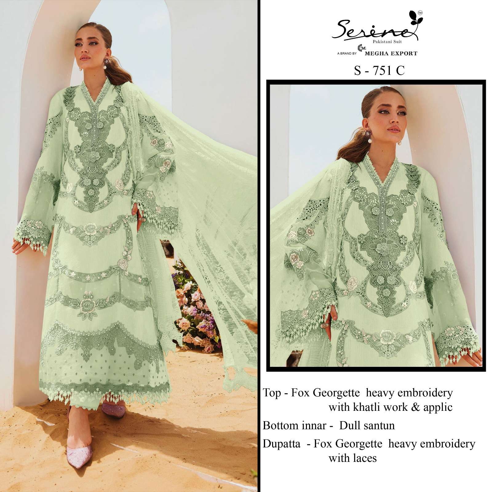 Buy Online SERINA S 751 GEORGETTE HEAVY EMBROIDERY WORK PAKISTANI STYLE SUIT TO EID & WEDDING 4 Pcs of Full Catalogue at Wholesale Price. Looking for SERINA S 751 GEORGETTE HEAVY EMBROIDERY WORK PAKISTANI STYLE SUIT TO EID & WEDDING Full Catalouge at Best Price? Buy Now SERINA S 751 GEORGETTE HEAVY EMBROIDERY WORK PAKISTANI STYLE SUIT TO EID & WEDDING at Wholesale Rate of Rs 6396 with Total 4 Pcs from authroized dealer and supplier of Serine Brand. Cost of Each piece is just only Rs 1599 which is very low and affordable price to resale the product in your retail store Ethnic Export is Surat based Wholesale Supplier & Dealer of Serine Brand. Click on Brand name to Know more about Serine Brand's products.Call or Whatsapp on +91-9825759366 for booking or enquiry