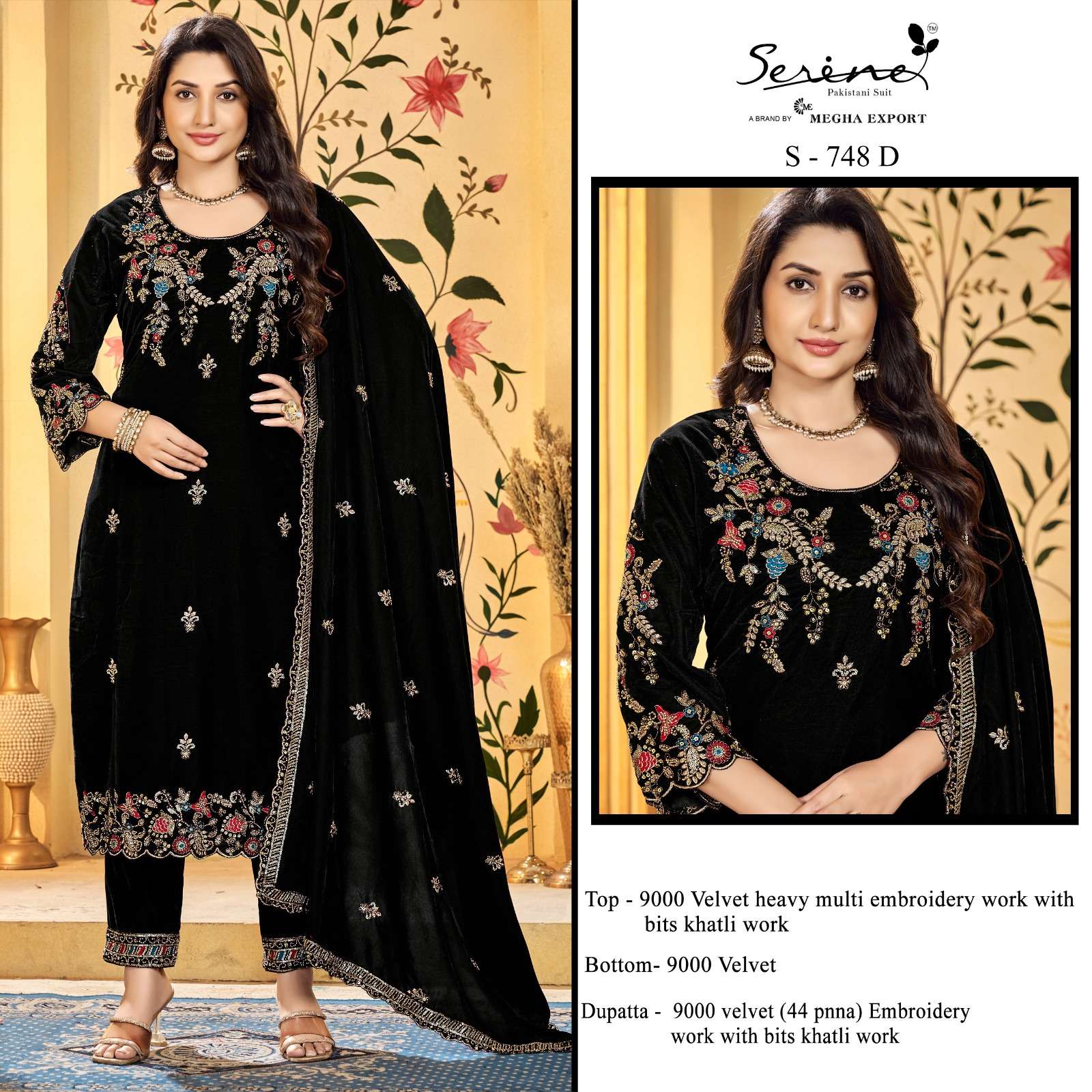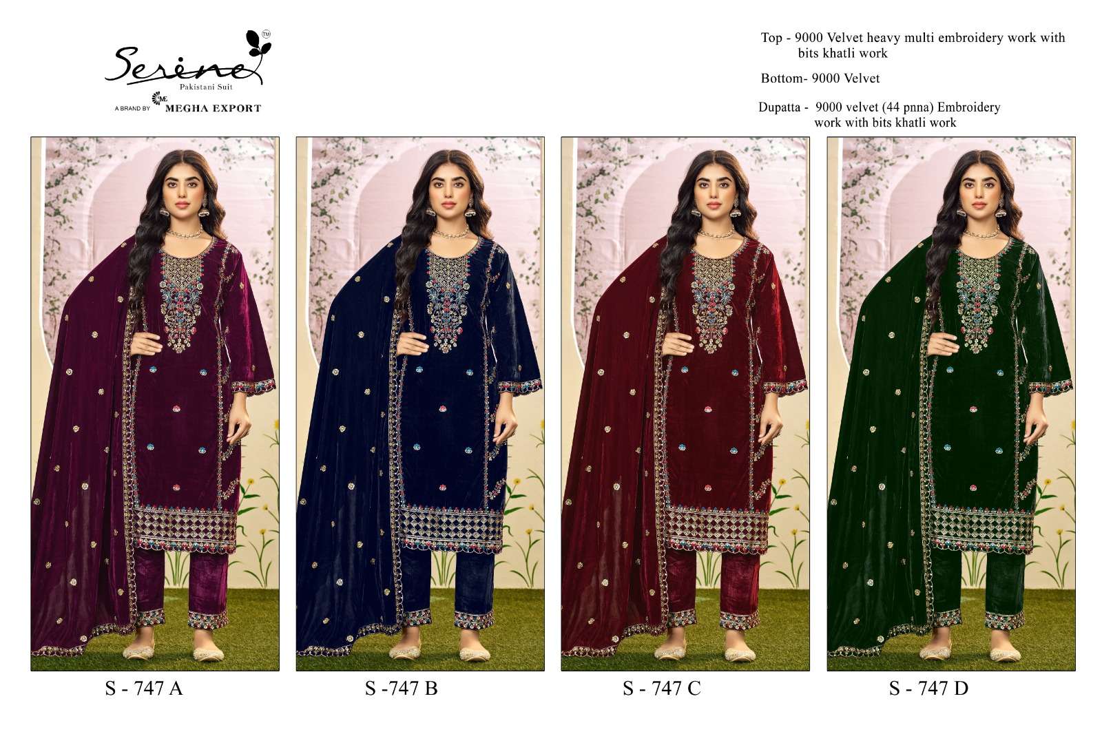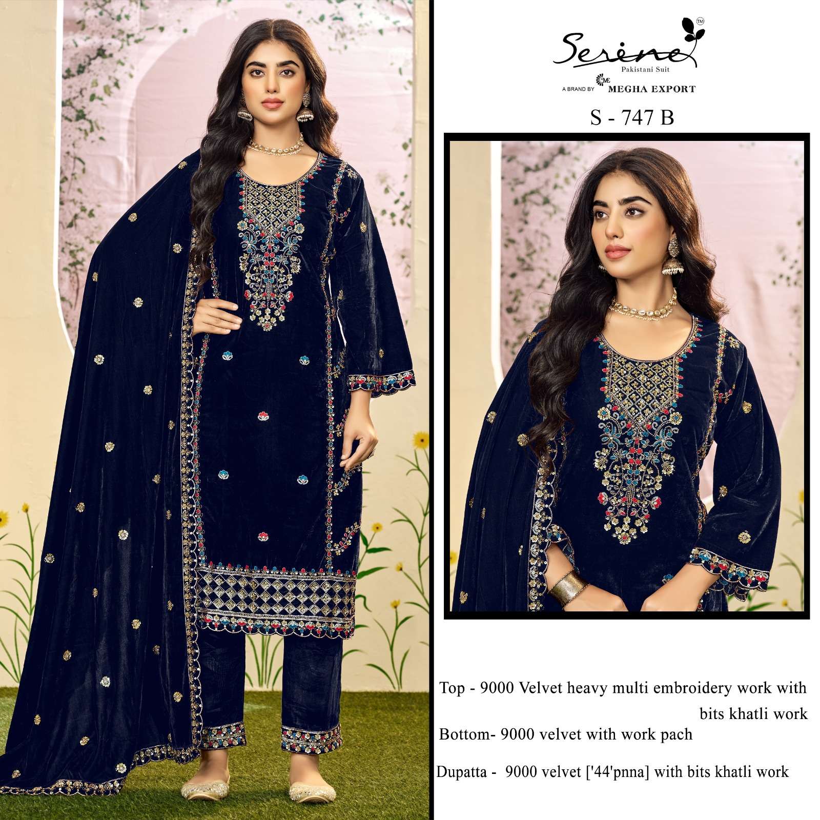Buy Online SERINE S 747 WINTER SPECIAL 9000 VELVET HEAVY KHATLI WORK MATERIAL SUIT EXPORT 4 Pcs of Full Catalogue at Wholesale Price. Looking for SERINE S 747 WINTER SPECIAL 9000 VELVET HEAVY KHATLI WORK MATERIAL SUIT EXPORT Full Catalouge at Best Price? Buy Now SERINE S 747 WINTER SPECIAL 9000 VELVET HEAVY KHATLI WORK MATERIAL SUIT EXPORT at Wholesale Rate of Rs 7596 with Total 4 Pcs from authroized dealer and supplier of Serine Brand. Cost of Each piece is just only Rs 1899 which is very low and affordable price to resale the product in your retail store Ethnic Export is Surat based Wholesale Supplier & Dealer of Serine Brand. Click on Brand name to Know more about Serine Brand's products.Call or Whatsapp on +91-9825759366 for booking or enquiry