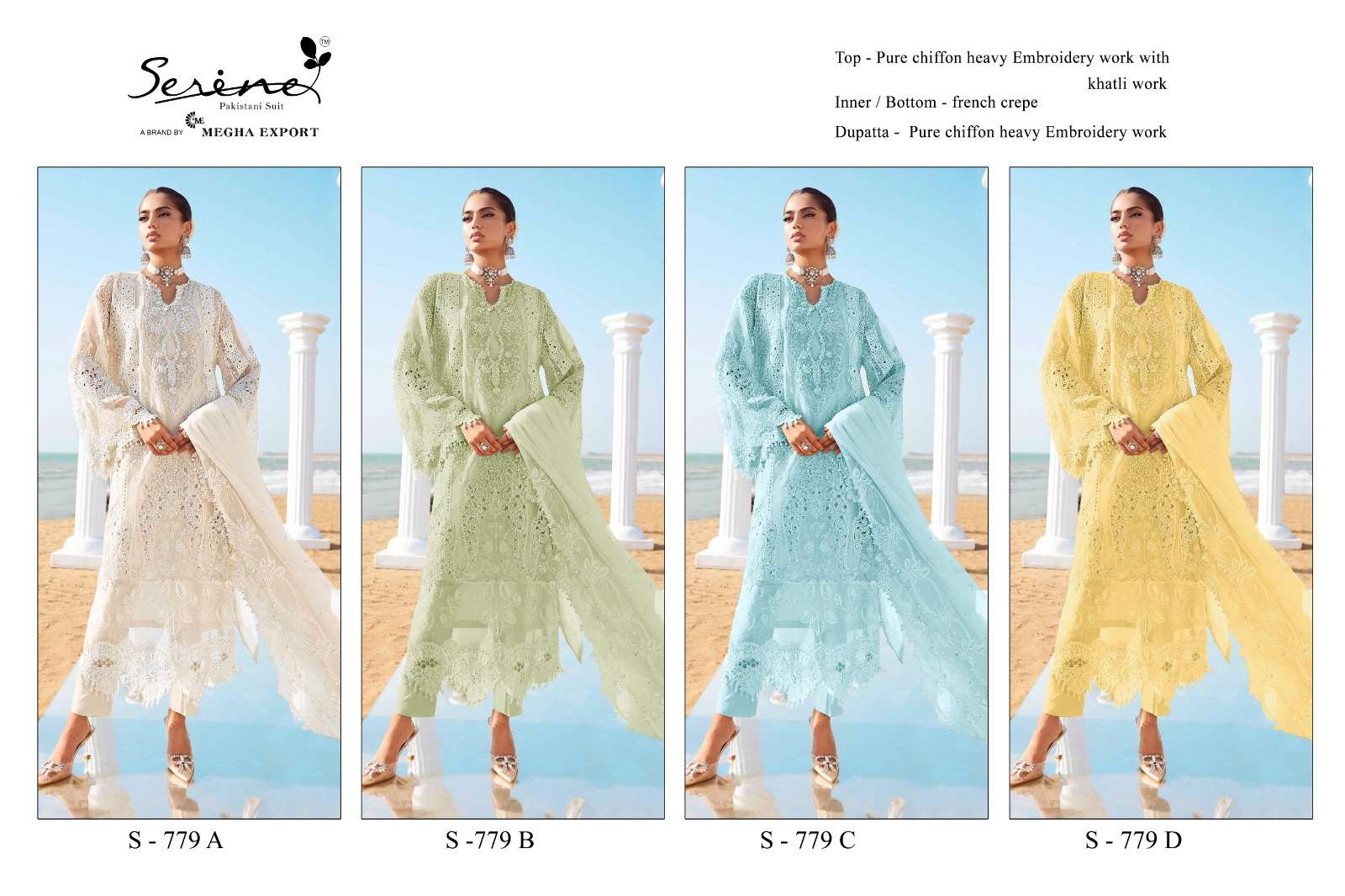 Buy Online SERINE S 779 HIT INDIAN PAKISTANI HEAVY WORK LONG SUIT FOR WOMEN FESTIVAL CLOTH 4 Pcs of Full Catalogue at Wholesale Price. Looking for SERINE S 779 HIT INDIAN PAKISTANI HEAVY WORK LONG SUIT FOR WOMEN FESTIVAL CLOTH Full Catalouge at Best Price? Buy Now SERINE S 779 HIT INDIAN PAKISTANI HEAVY WORK LONG SUIT FOR WOMEN FESTIVAL CLOTH at Wholesale Rate of Rs 6796 with Total 4 Pcs from authroized dealer and supplier of Serine Brand. Cost of Each piece is just only Rs 1699 which is very low and affordable price to resale the product in your retail store Ethnic Export is Surat based Wholesale Supplier & Dealer of Serine Brand. Click on Brand name to Know more about Serine Brand's products.Call or Whatsapp on +91-9825759366 for booking or enquiry