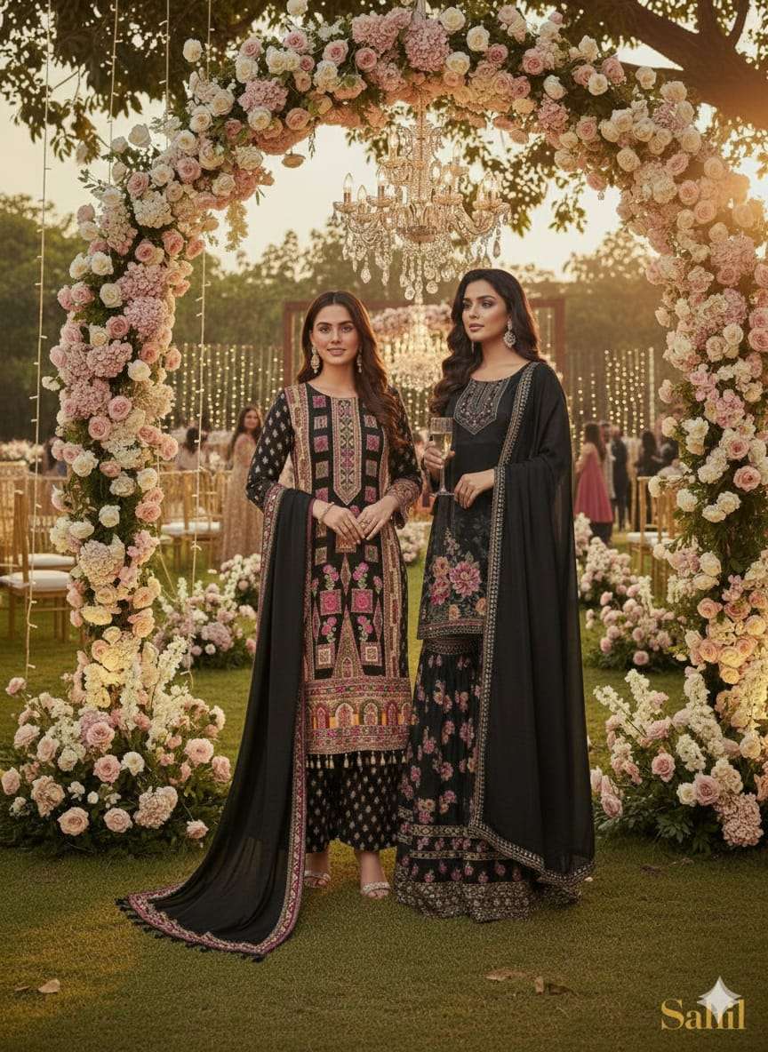 SHADI FESTIVAL CREAPE BLACK COLOR FLOWER PRINT SHARARA SUIT SIARA