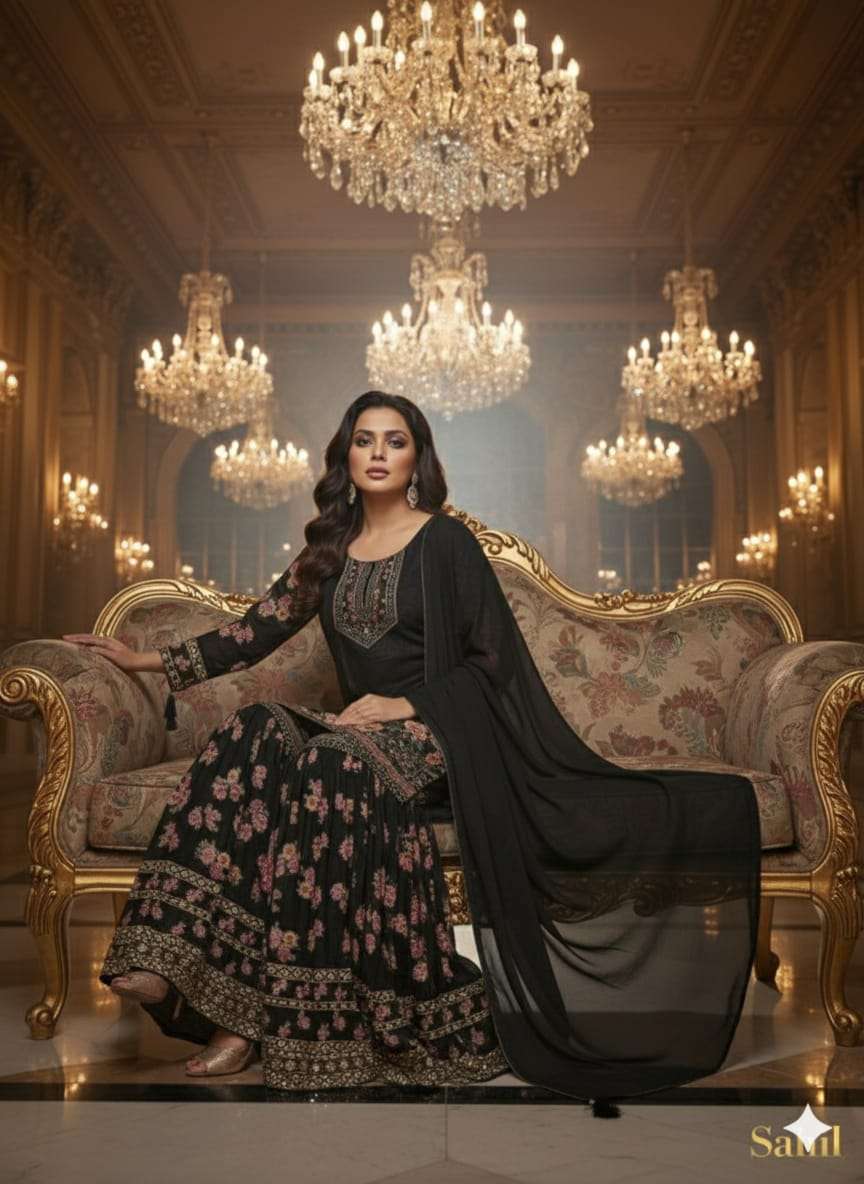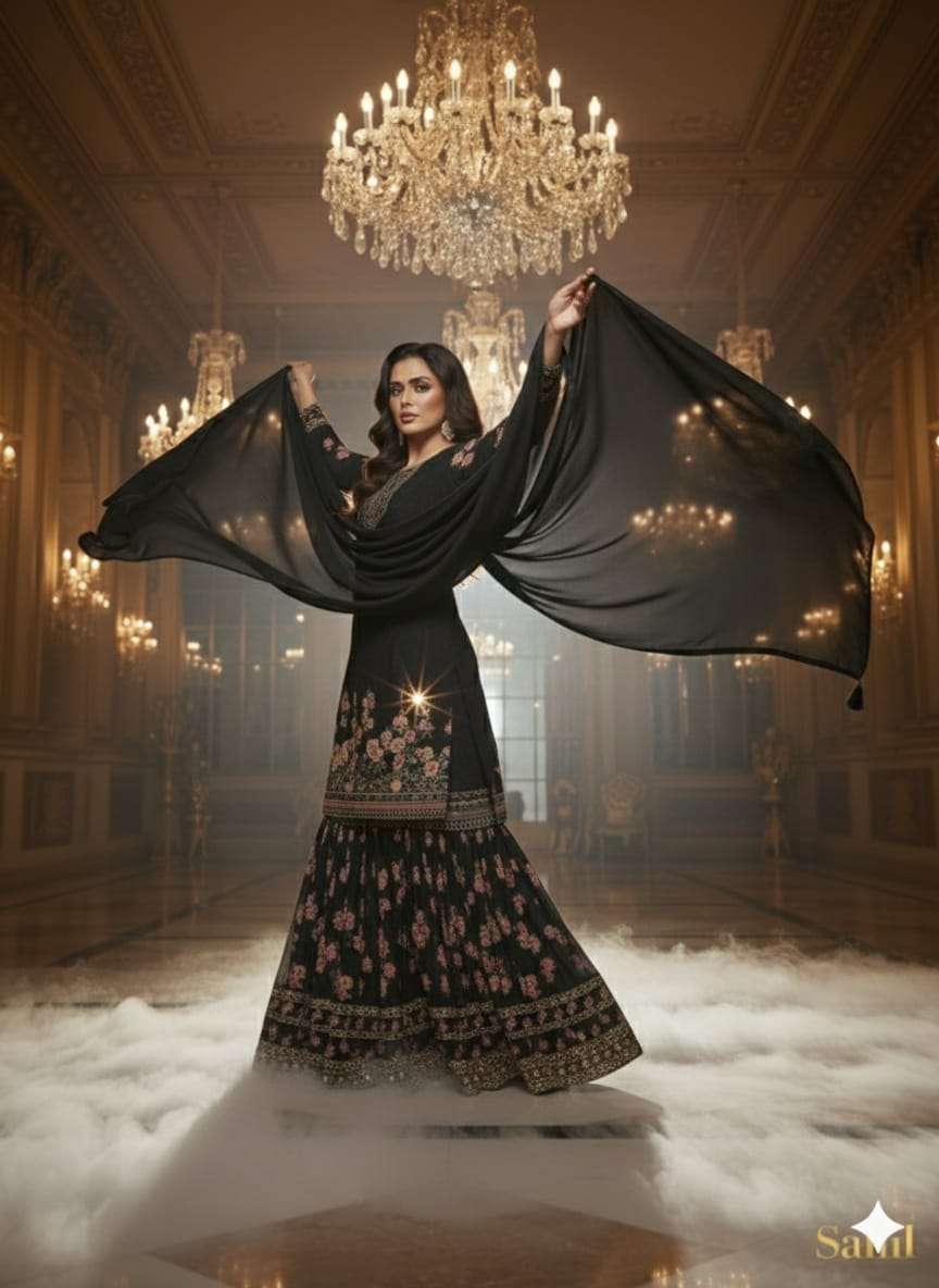 | Title | SHADI FESTIVAL CREAPE BLACK COLOR FLOWER PRINT SHARARA SUIT SIARA |