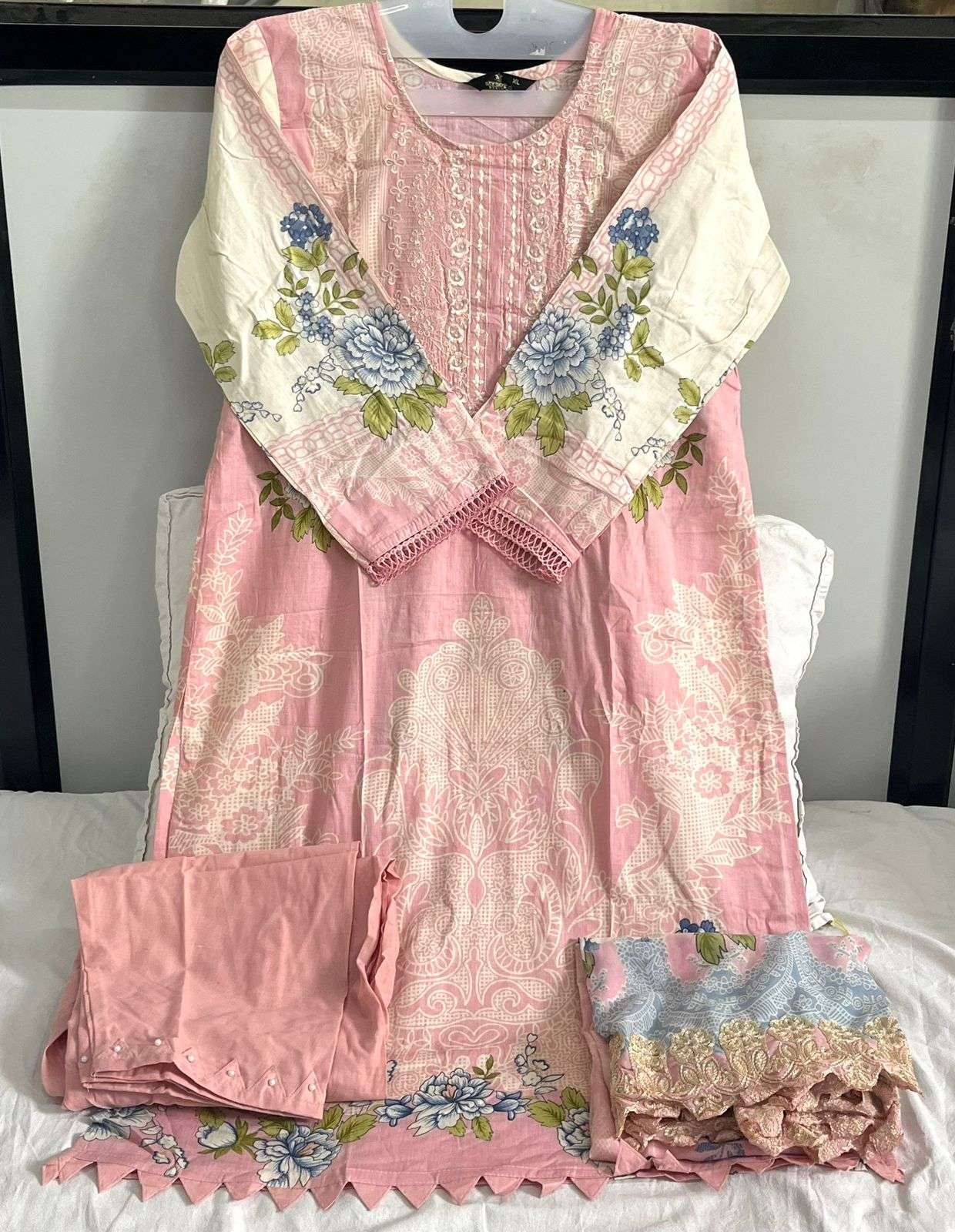 Dupta embroidery collection 🔹Top: Pure Cotton With SELF EMBROIDERY 🔹Bottom- Cotton Solid 🔹Dupp: Cotton /chiffon *EMBROIDERY Dupatta with cutwork FULL SET ONLY READYMADE SUIT DETAILS- Size -L xl xxl PRICE- 899/- COTTON |