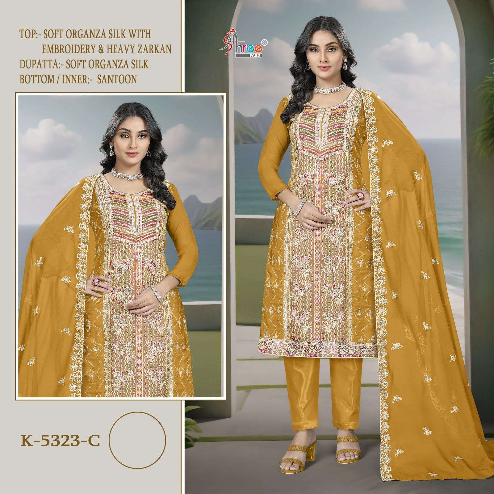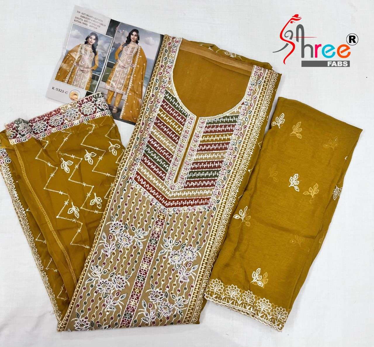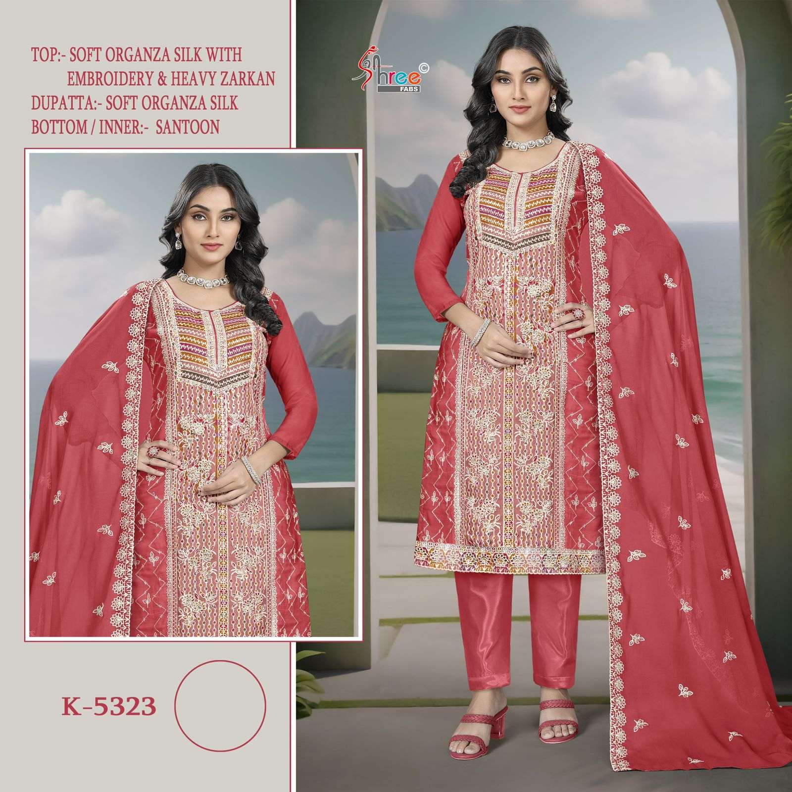 Title | SHREE FABS K 5323 COLOUR HEAVY SOFT ORGANZA HEAVY EMBROIDERY WORK SUIT SURAT RESELLER |