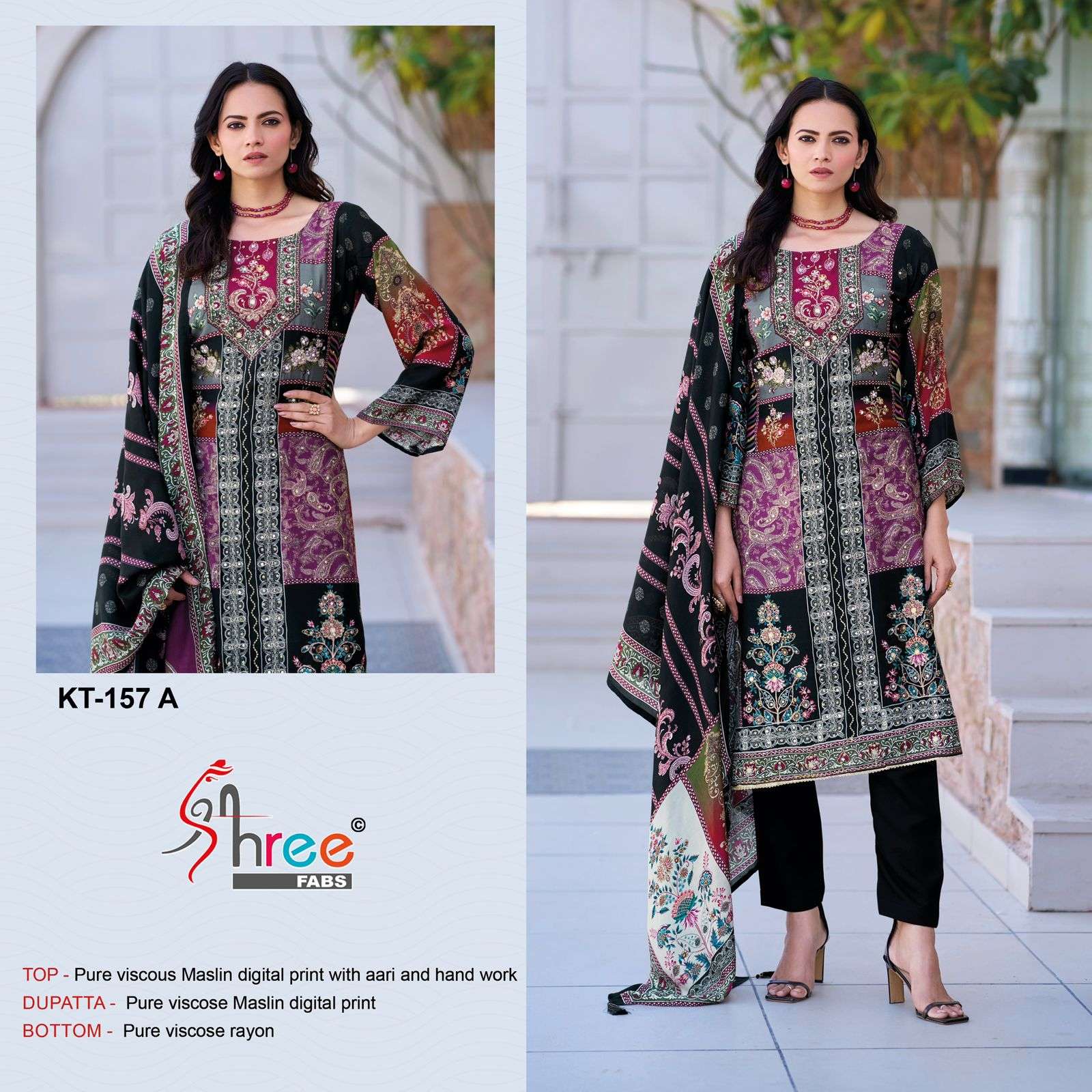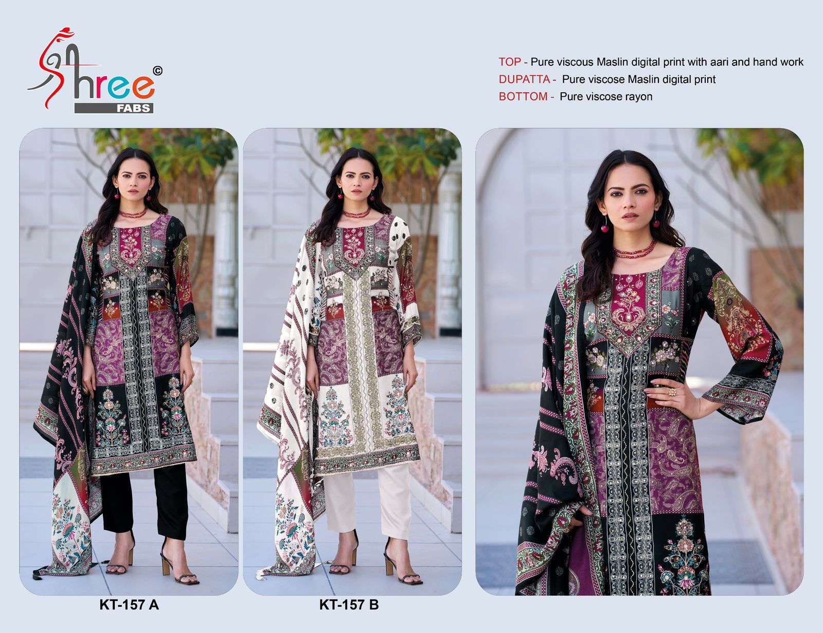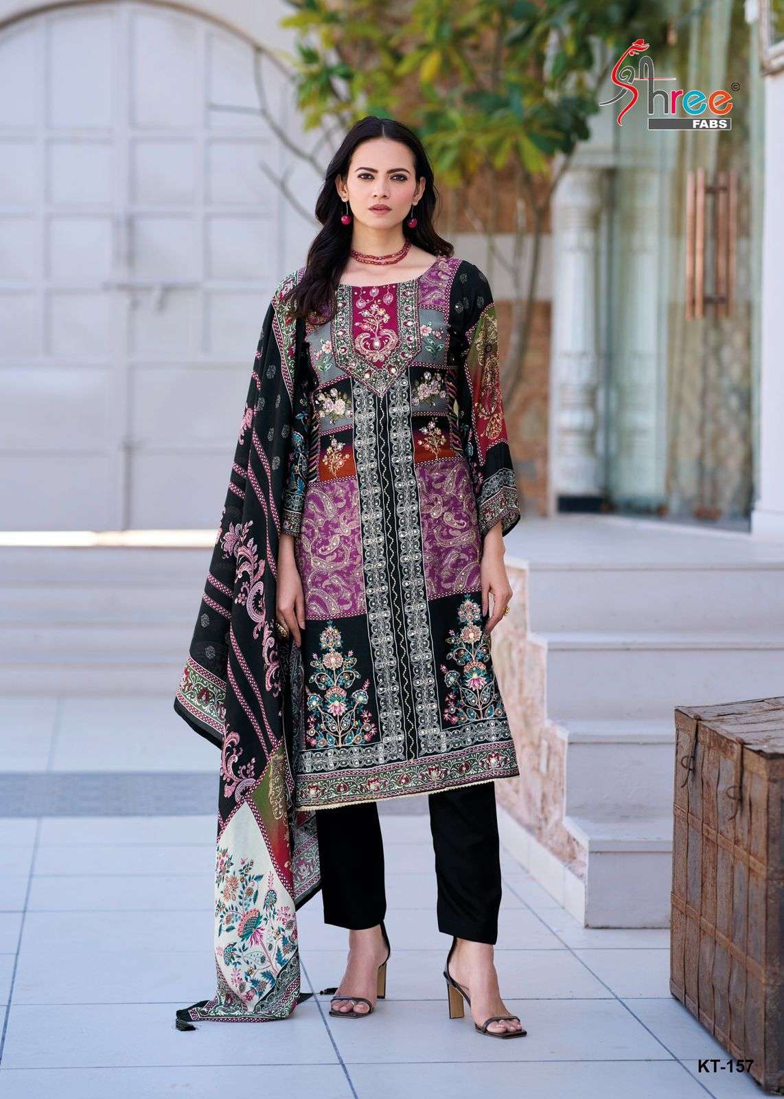 SHREE FABS KT 157 VISCOSE MUSLIN DIGITAL PRINT BLACK WHITE SALWAR SUIT RESELLER