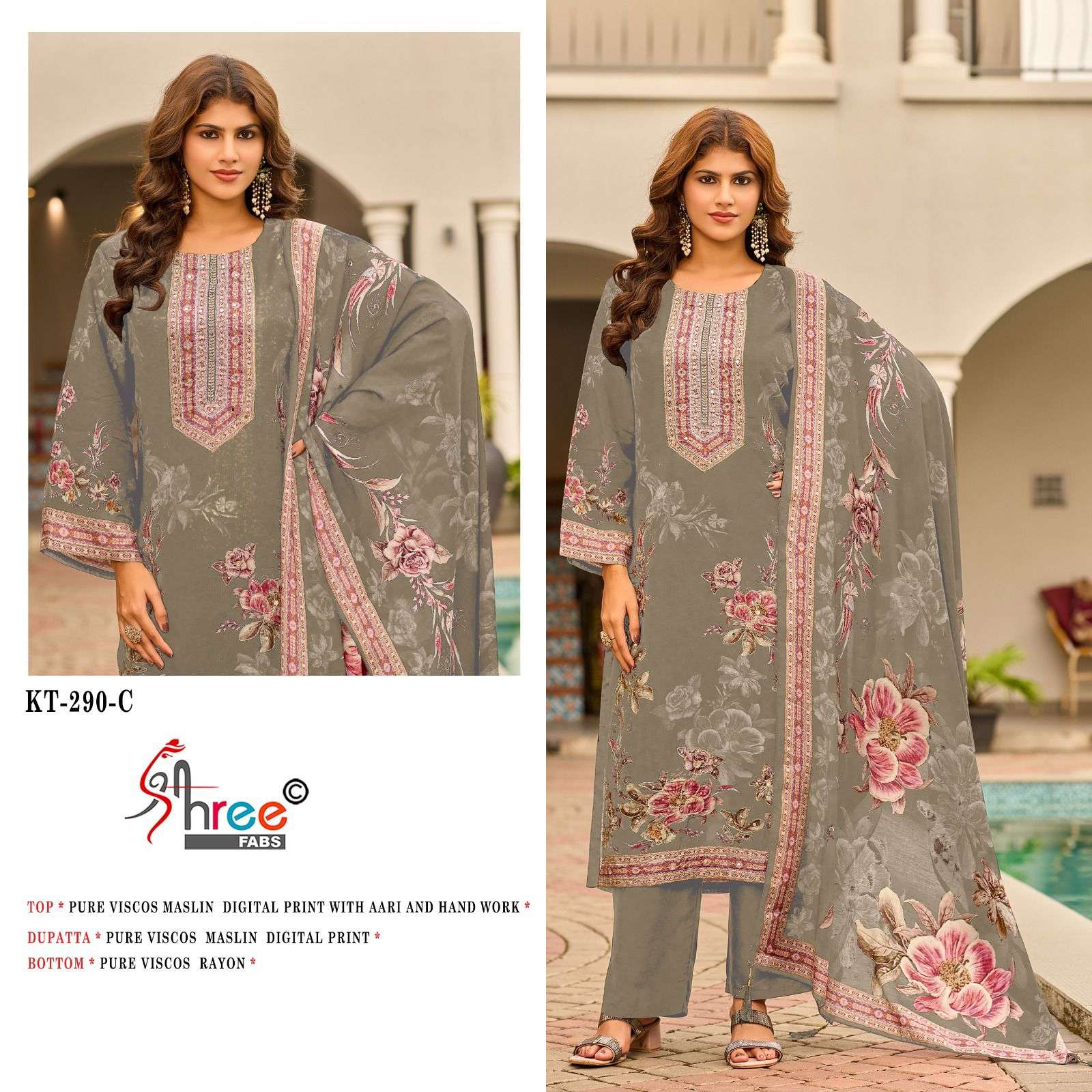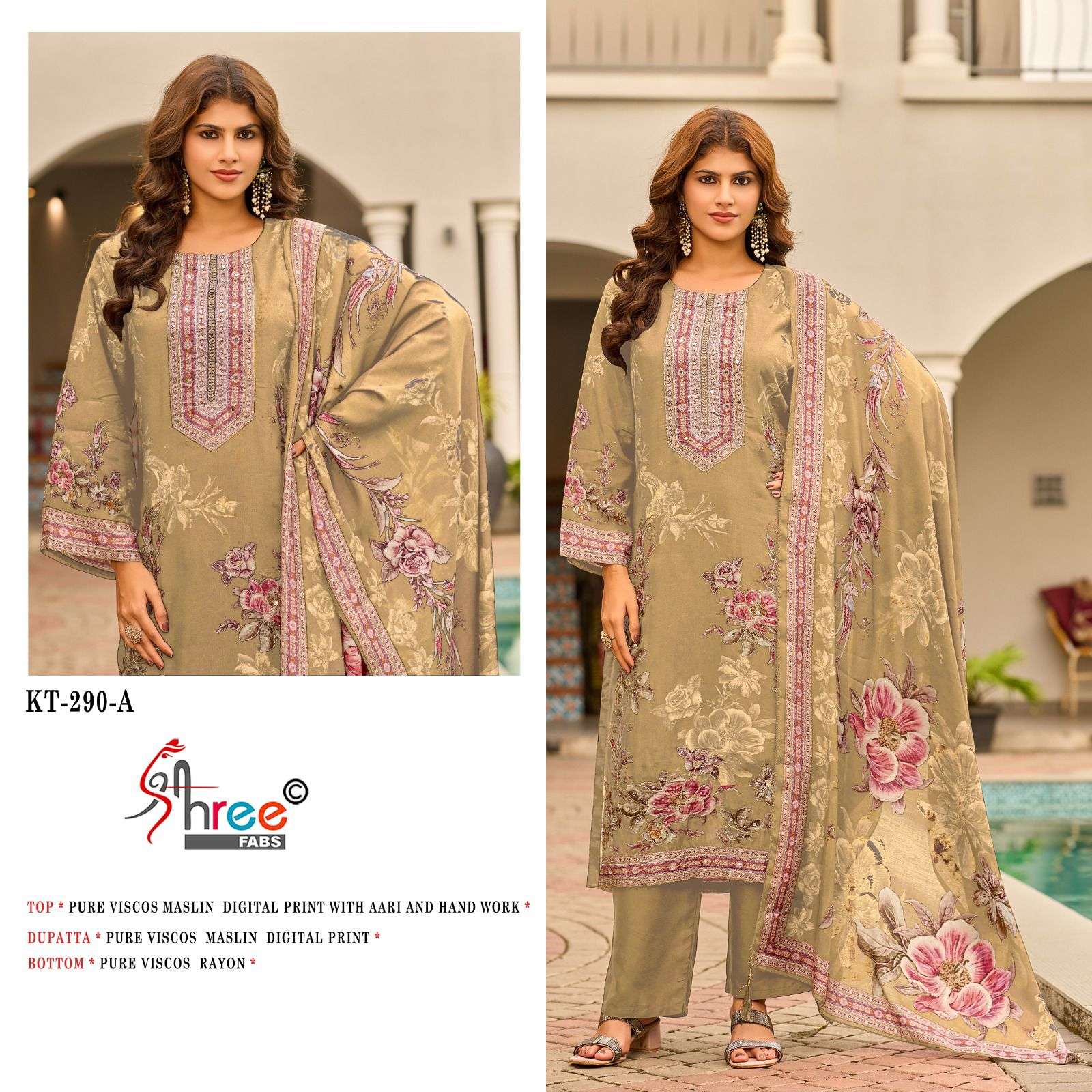 SHREE FABS KT 290 VISCOSE MUSLIN DIGITAL AARI WORK DRESS TO PERFACT SHADI CLOTHING EXPORT