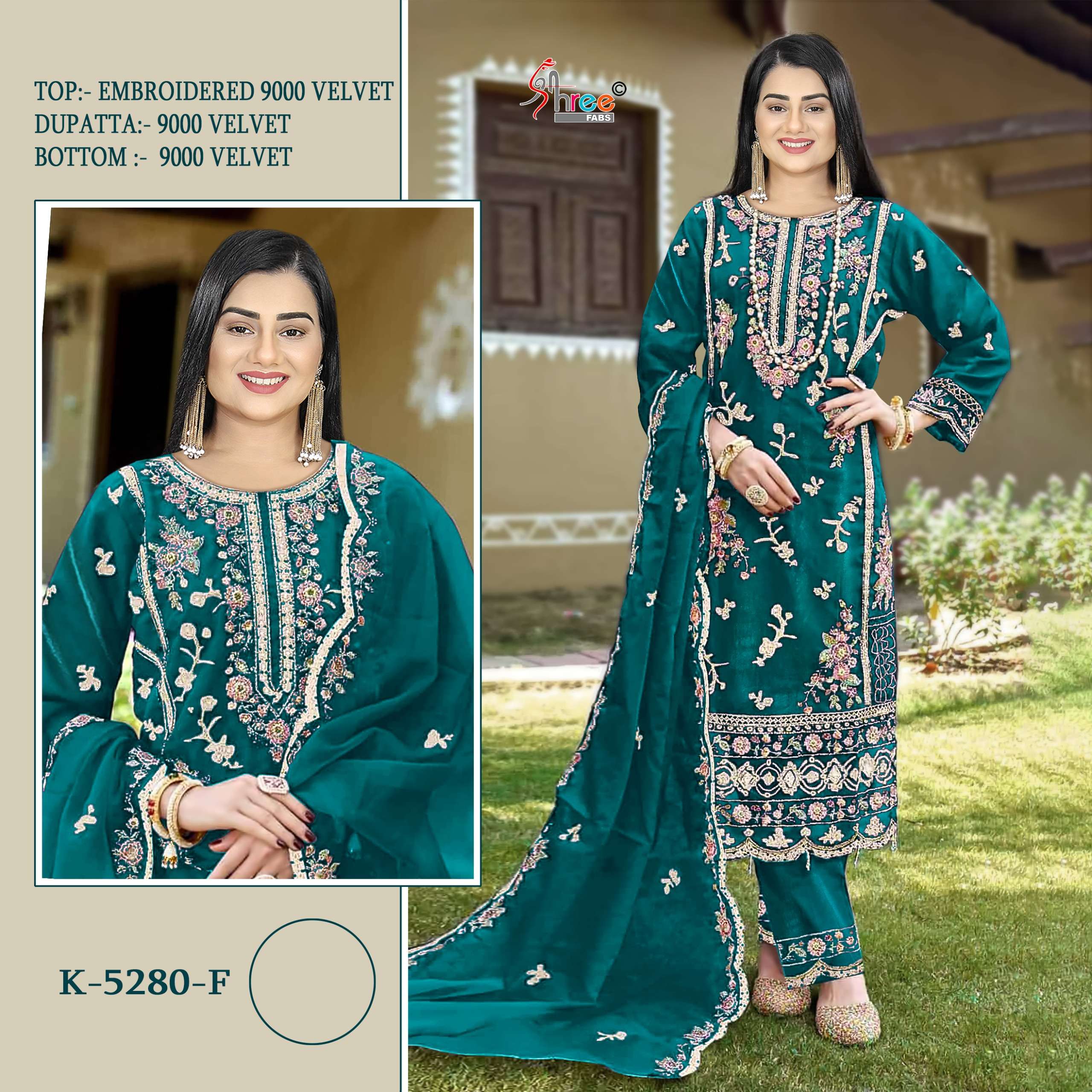 SHREE FABS S 5280 COLOUR 9000 VELVET HEAVY EMBROIDERY MATERIAL SUIT TO LADIES FUNCTION CLOTH