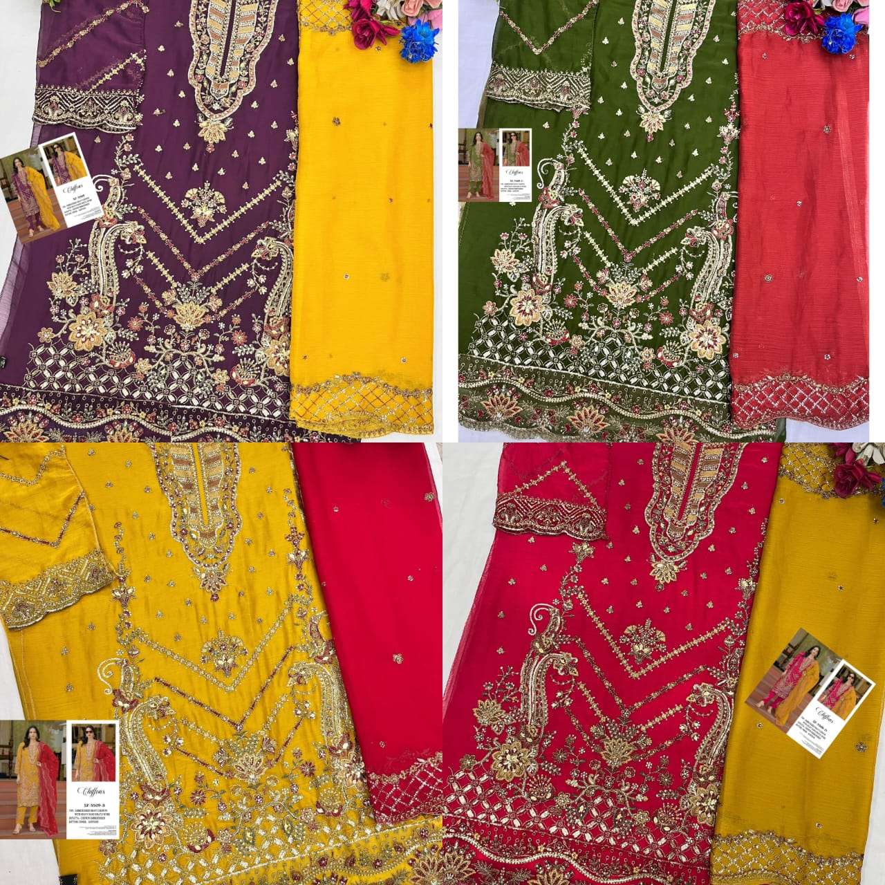 Buy Online SHREE FABS SF 5509 WEDDING WEAR DESIGNER CHIFFON HEAVY WORK SUIT COLLECTION ONLINE 4 Pcs of Full Catalogue at Wholesale Price. Looking for SHREE FABS SF 5509 WEDDING WEAR DESIGNER CHIFFON HEAVY WORK SUIT COLLECTION ONLINE Full Catalouge at Best Price? Buy Now SHREE FABS SF 5509 WEDDING WEAR DESIGNER CHIFFON HEAVY WORK SUIT COLLECTION ONLINE at Wholesale Rate of Rs 5196 with Total 4 Pcs from authroized dealer and supplier of Shree Fab Surat Brand. Cost of Each piece is just only Rs 1299 which is very low and affordable price to resale the product in your retail store Ethnic Export is Surat based Wholesale Supplier & Dealer of Shree Fab Surat Brand. Click on Brand name to Know more about Shree Fab Surat Brand's products.Call or Whatsapp on +91-9825759366 for booking or enquiry