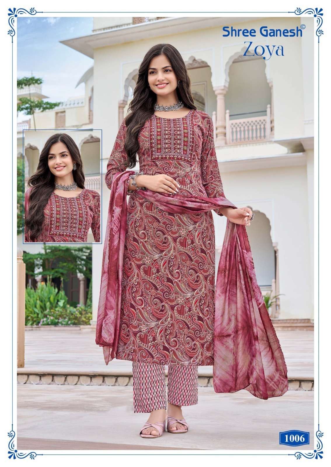 SHREE GANESH ZOYA VOL 1 DAILY WEAR RAYON FOIL PRINTED EMBROIDERY SALWAR SUIT EXPORT
