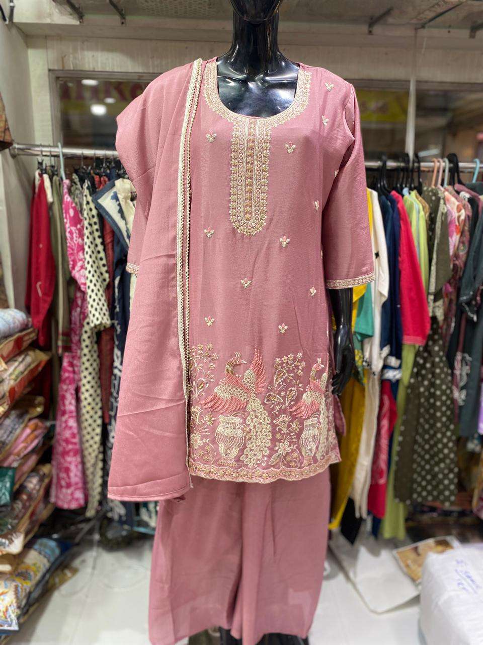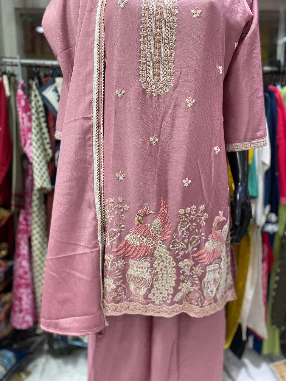 Top:Pure Chinon with heavy hand embroidery work Rate: 1680/- Combo Sizes L XL XXL These are combo sets: Select 1 Color All Size Compulsory