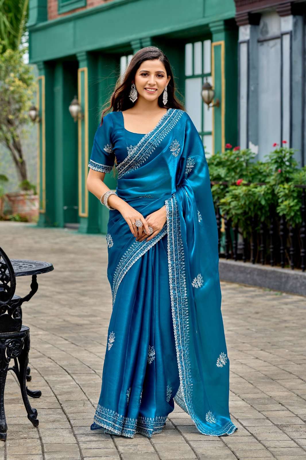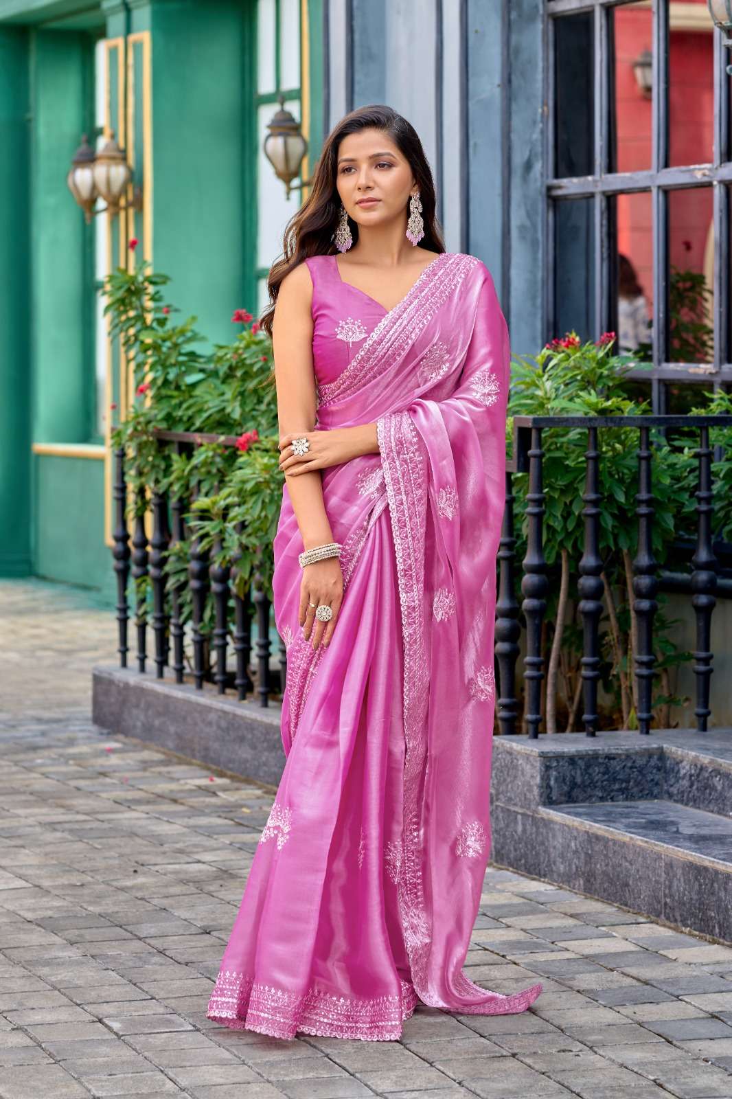 | Title | Simmer Chiffon Embroidery work border Fancy look saree best Collection |