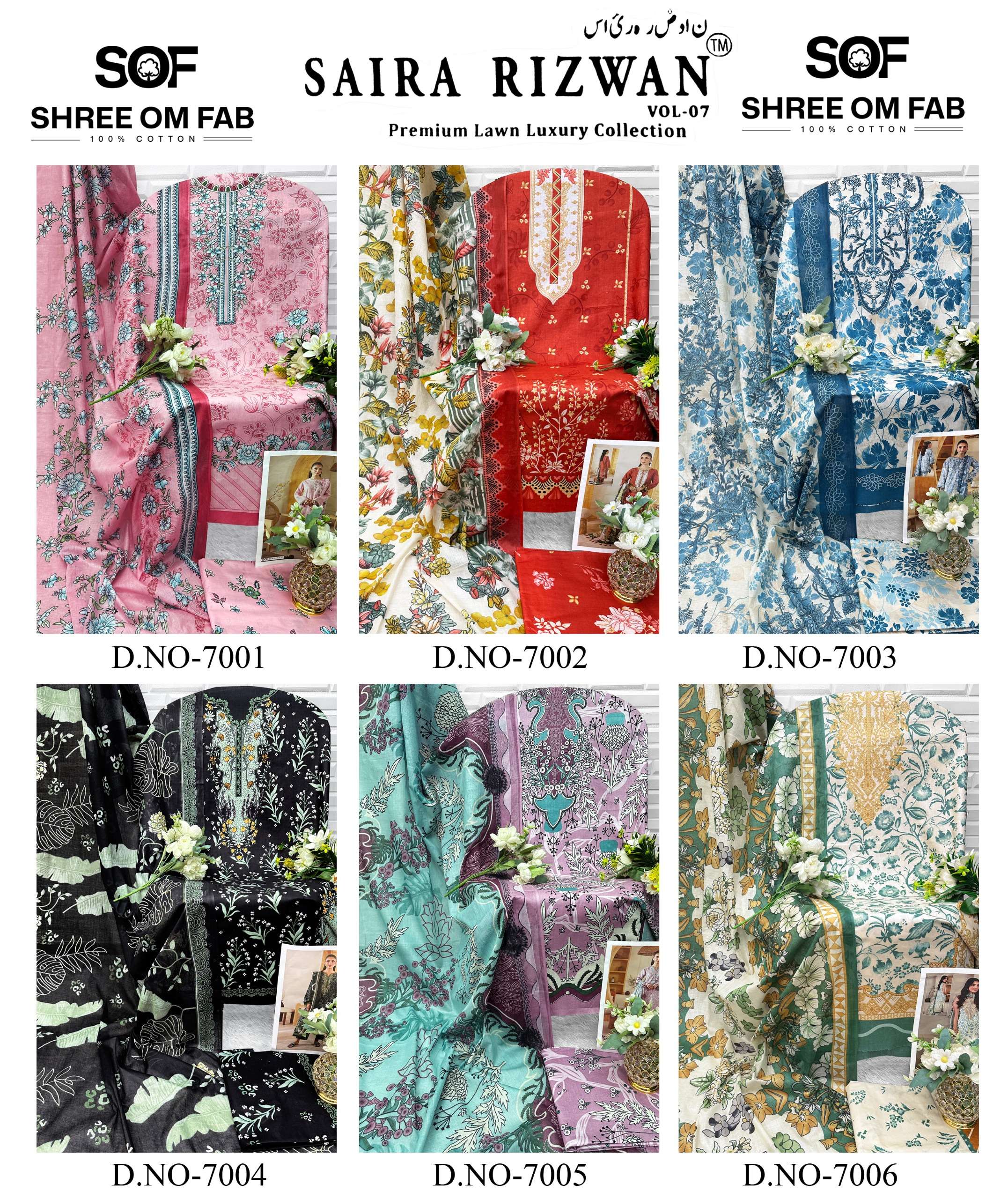 SOF SAIRA RIZWAN VOL 7 TOP PAKISTANI COLLECTION LAWN COTTTON MATERIAL SUIT SET DEALER
