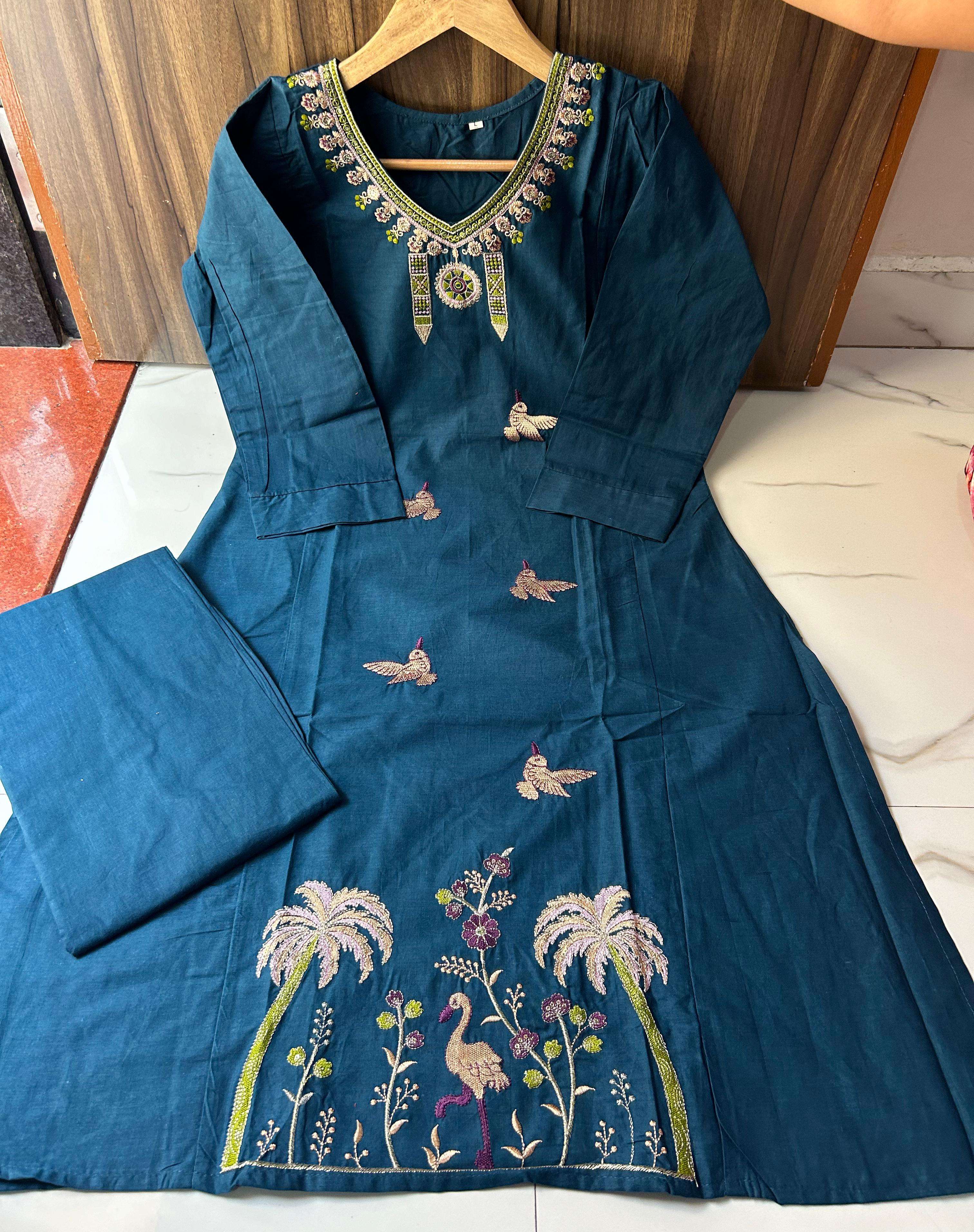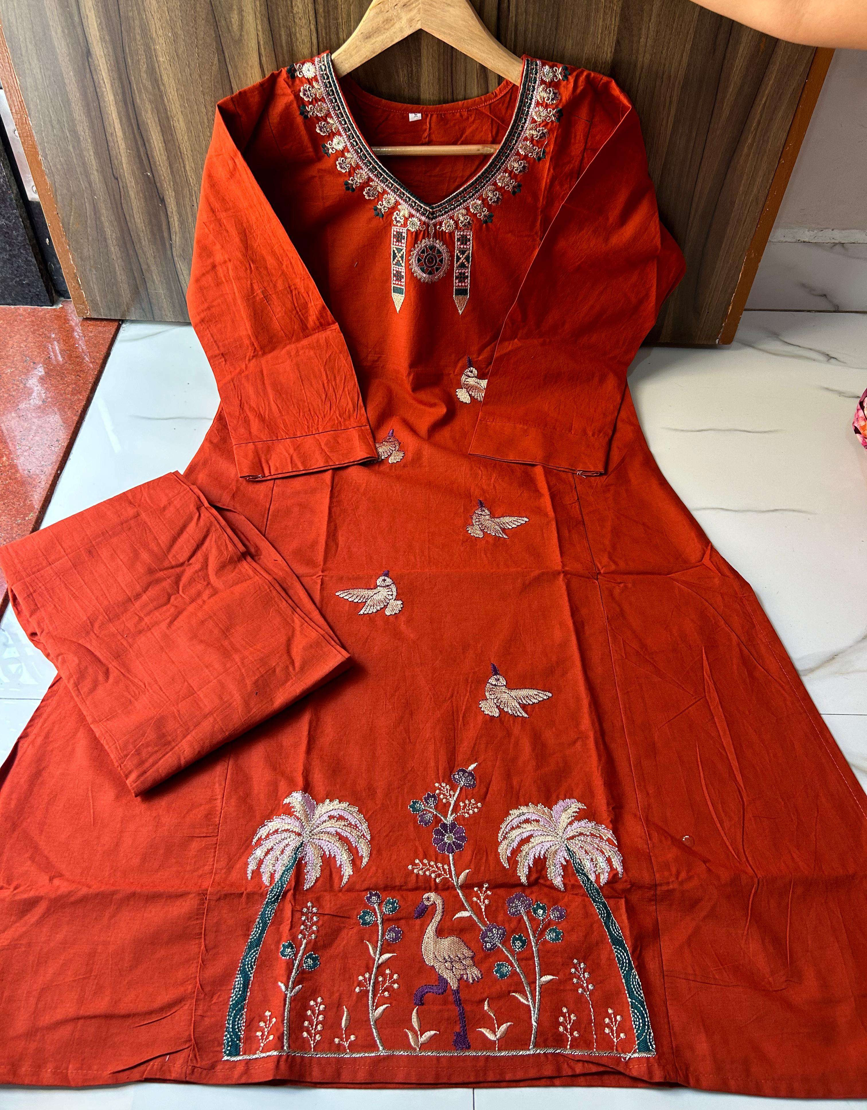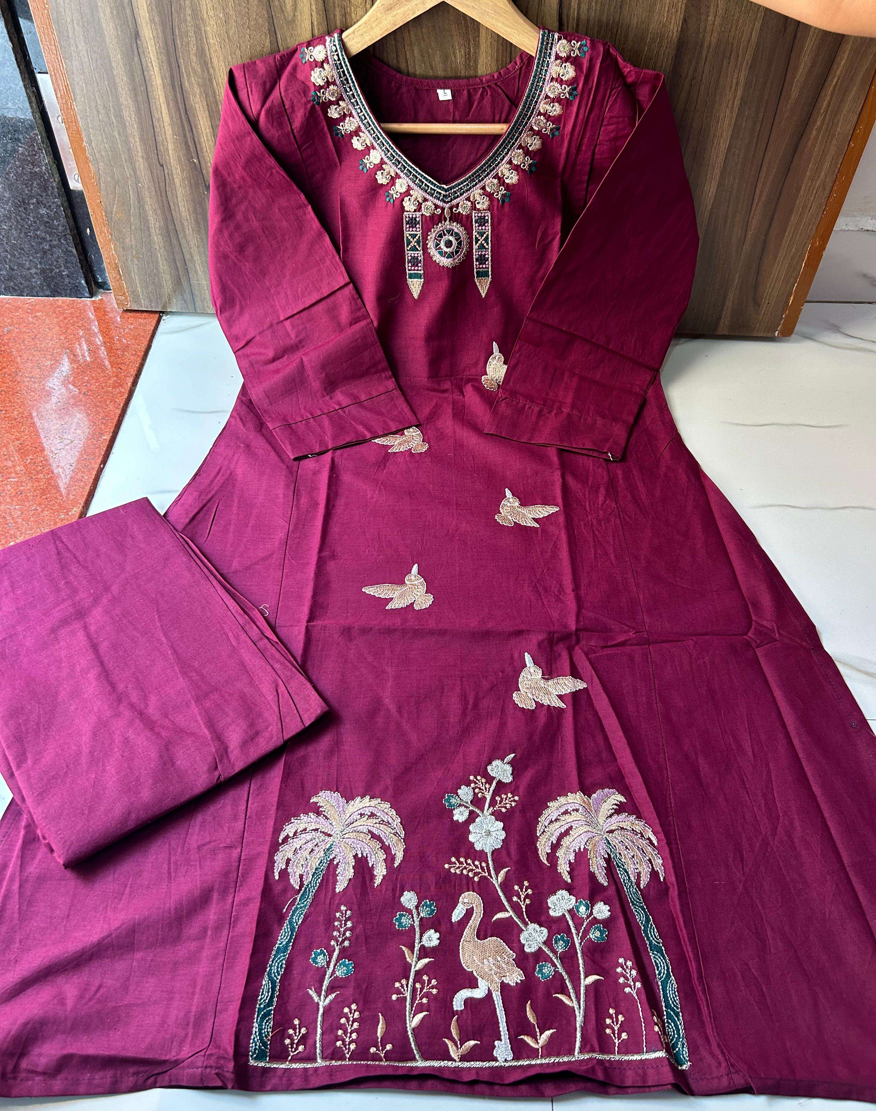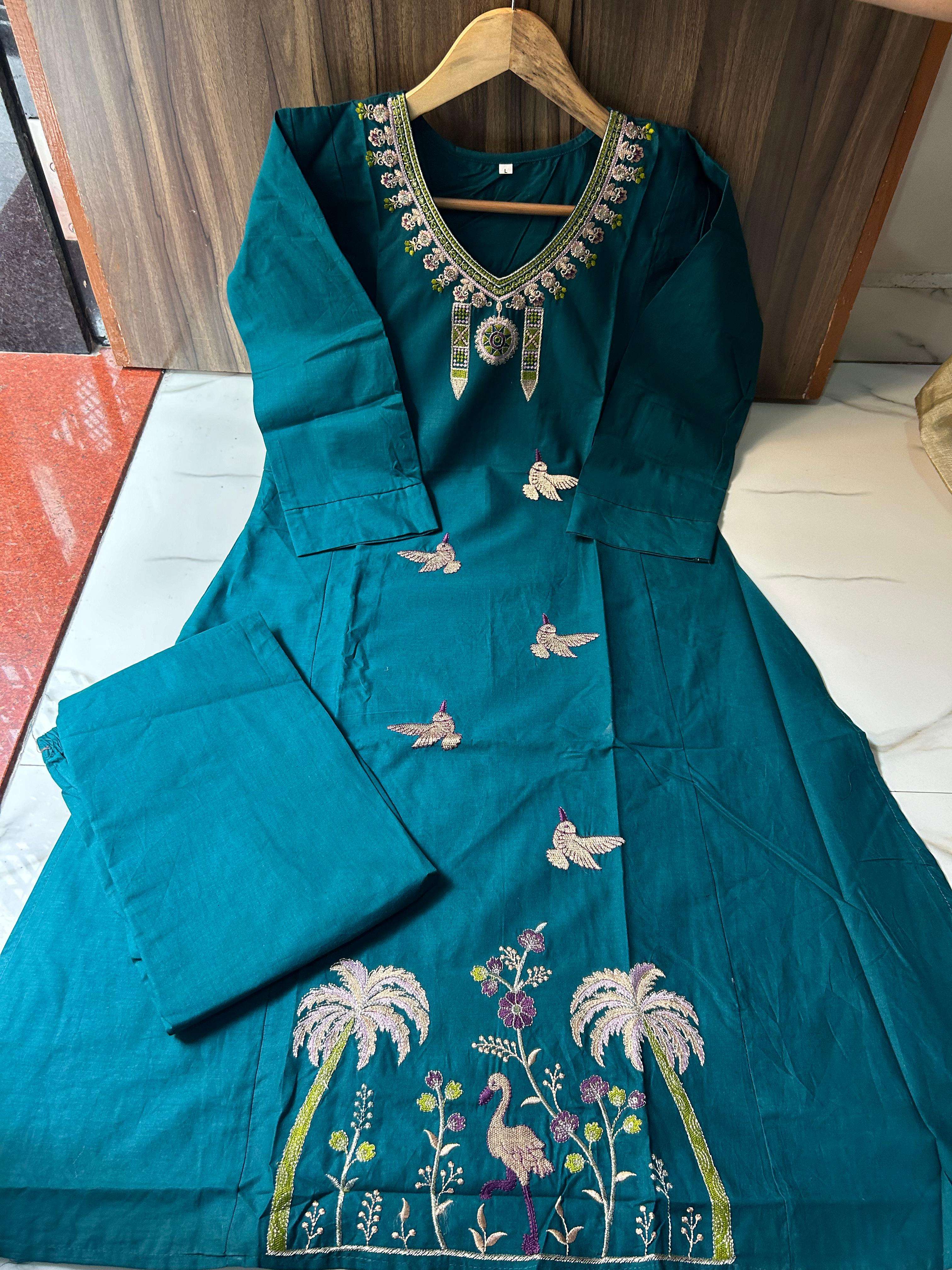 CORD SET STRIGHT CUT A LINE KURTIS WITH COMFORT PLAZO PRIMIUM DHABU COTTON FABRIC 🪡 HAVY EMBRODRY WORK & NACK EMBRODRY WORK🪡 🧵 M TO 2XL SINGLE ALSO AVA |