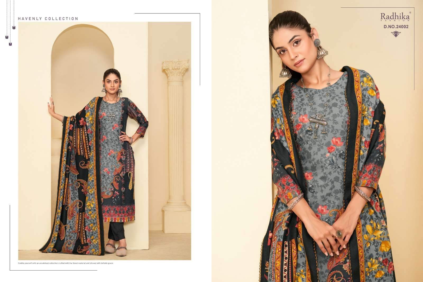 Buy Online SUMYRA MINAZ WINTER QUEEN DESINER MATERIAL SUIT COLLECTION INDIA 4 Pcs of Full Catalogue at Wholesale Price. Looking for SUMYRA MINAZ WINTER QUEEN DESINER MATERIAL SUIT COLLECTION INDIA Full Catalouge at Best Price? Buy Now SUMYRA MINAZ WINTER QUEEN DESINER MATERIAL SUIT COLLECTION INDIA at Wholesale Rate of Rs 2140 with Total 4 Pcs from authroized dealer and supplier of Radhika Fashion Brand. Cost of Each piece is just only Rs 535 which is very low and affordable price to resale the product in your retail store Ethnic Export is Surat based Wholesale Supplier & Dealer of Radhika Fashion Brand. Click on Brand name to Know more about Radhika Fashion Brand's products.Call or Whatsapp on +91-9825759366 for booking or enquiry
