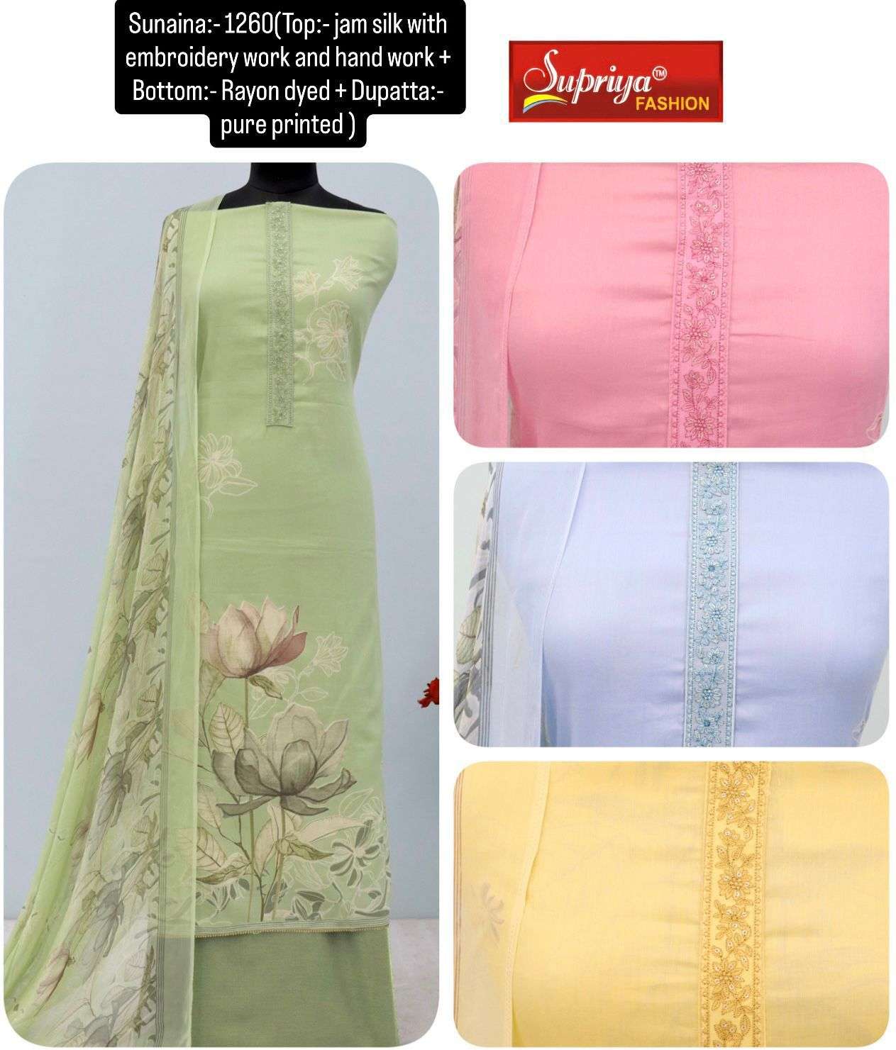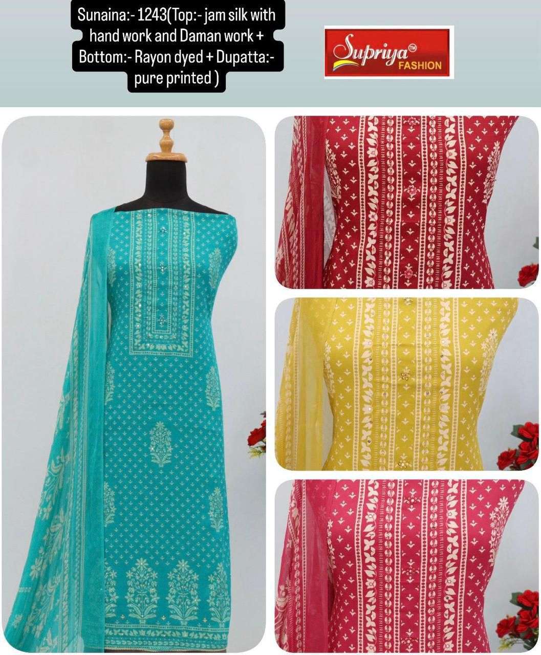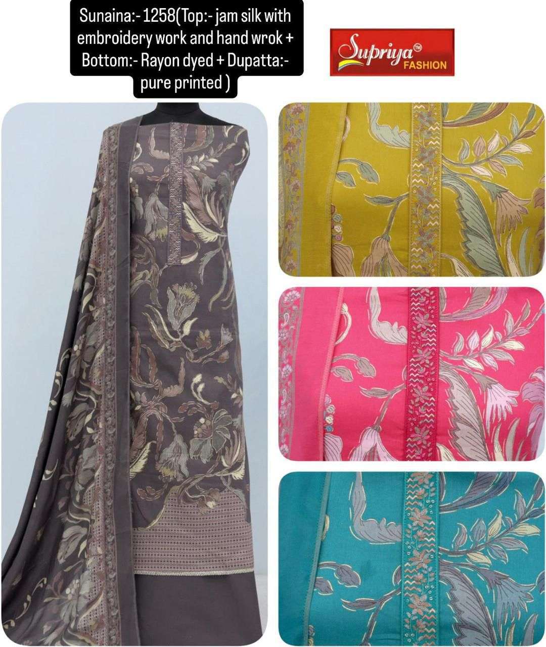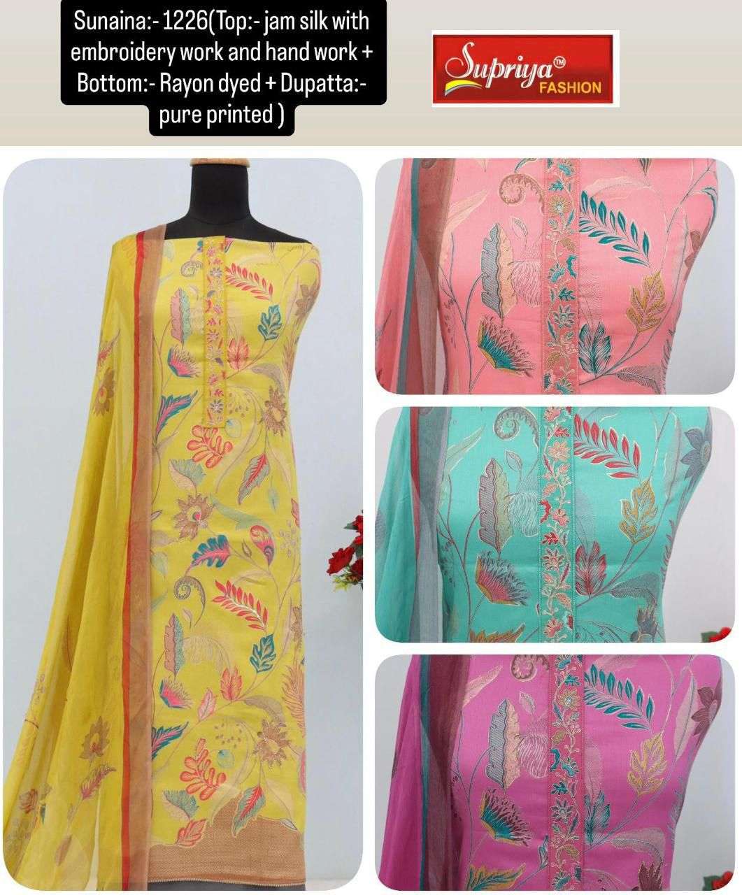 SUPRIYA FASHION SUNAINA FESTIVAL CLOTH JAM SILK FOIL PRINT DRESS SET DEALER SHOP