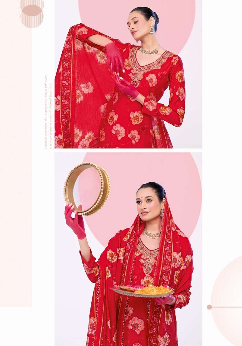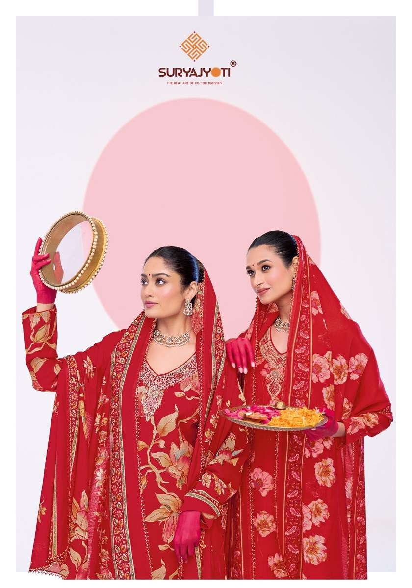 SURYAJYOTI KUMKUM VOL 1 KARWA FESTIVAL DRESS DISCHARGE FOIL WORK RED SALWAR SUIT