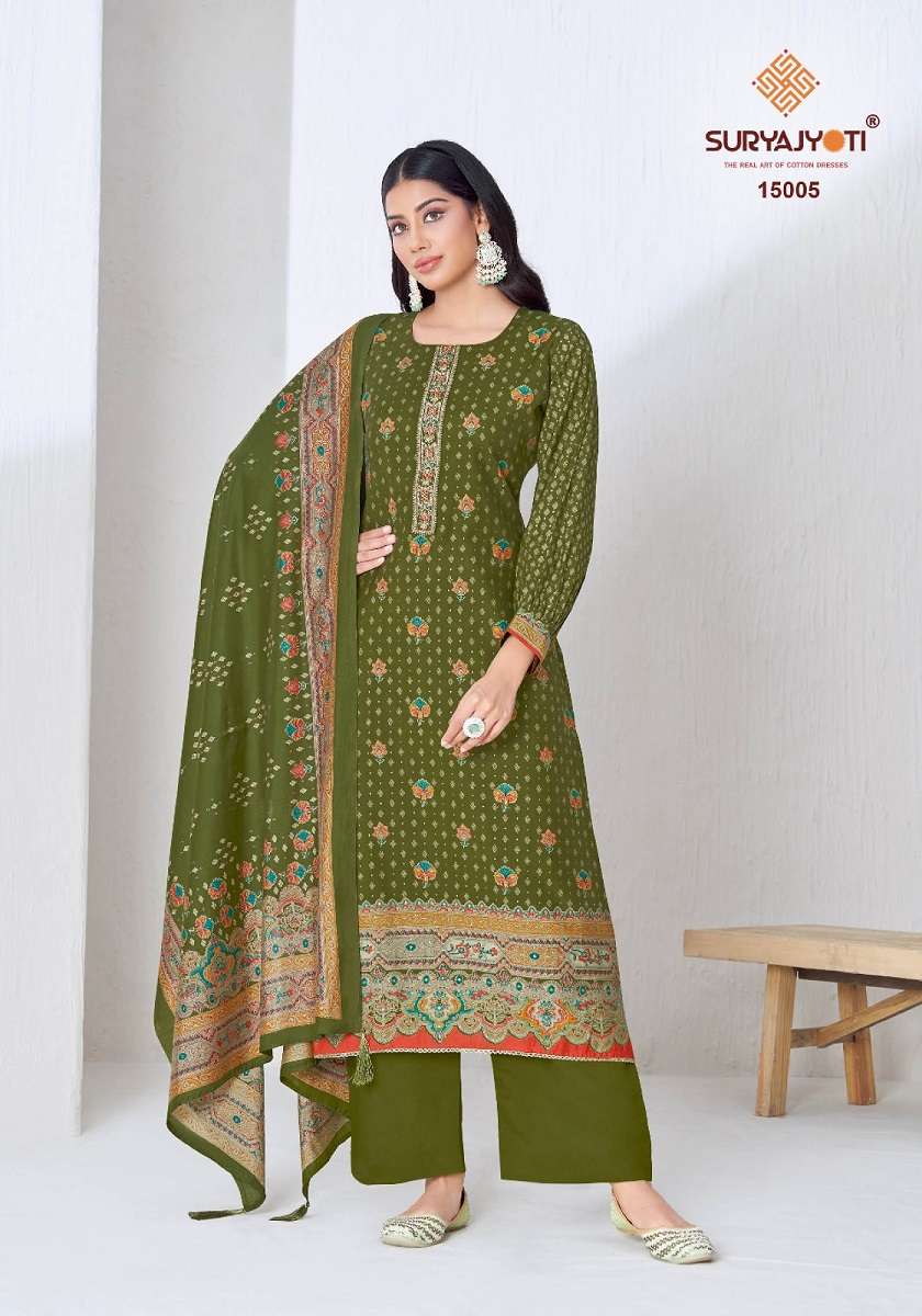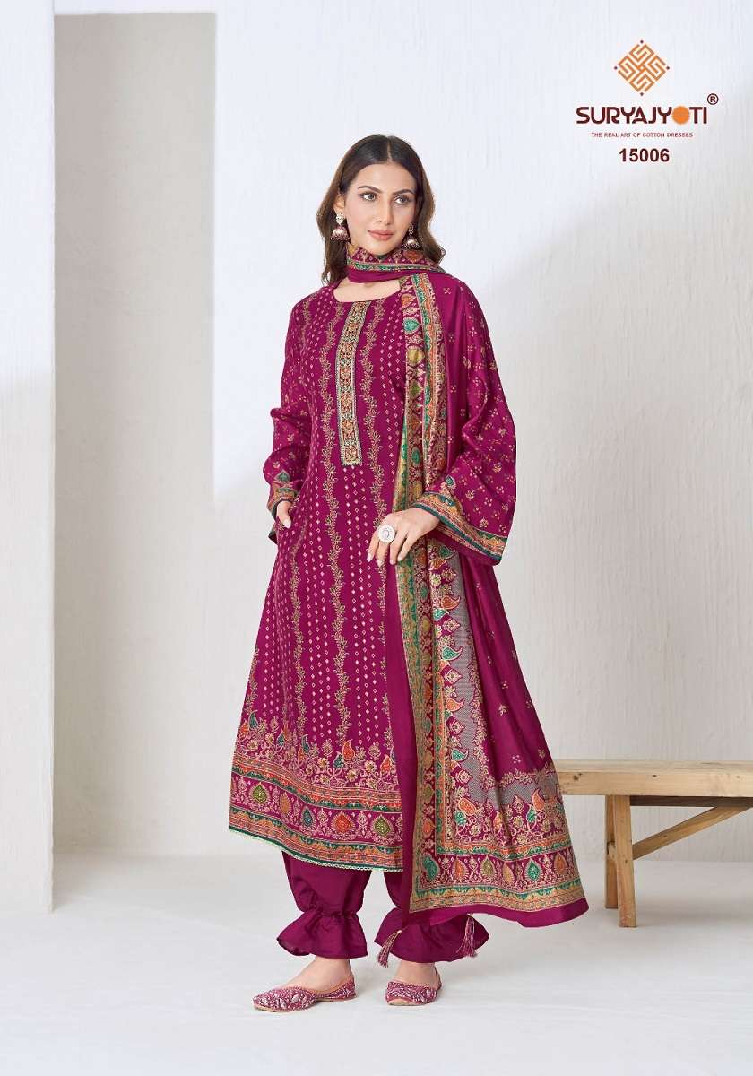 Buy Online SURYAJYOTI PUSHPA VOL 15 GOOD QUALITY DISCHARGE FOIL PRINT SALWAR KAMEEZ COLLECTION EXPORT 8 Pcs of Full Catalogue at Wholesale Price. Looking for SURYAJYOTI PUSHPA VOL 15 GOOD QUALITY DISCHARGE FOIL PRINT SALWAR KAMEEZ COLLECTION EXPORT Full Catalouge at Best Price? Buy Now SURYAJYOTI PUSHPA VOL 15 GOOD QUALITY DISCHARGE FOIL PRINT SALWAR KAMEEZ COLLECTION EXPORT at Wholesale Rate of Rs 6560 with Total 8 Pcs from authroized dealer and supplier of SURYAJYOTI Brand. Cost of Each piece is just only Rs 820 which is very low and affordable price to resale the product in your retail store Ethnic Export is Surat based Wholesale Supplier & Dealer of SURYAJYOTI Brand. Click on Brand name to Know more about SURYAJYOTI Brand's products.Call or Whatsapp on +91-9825759366 for booking or enquiry