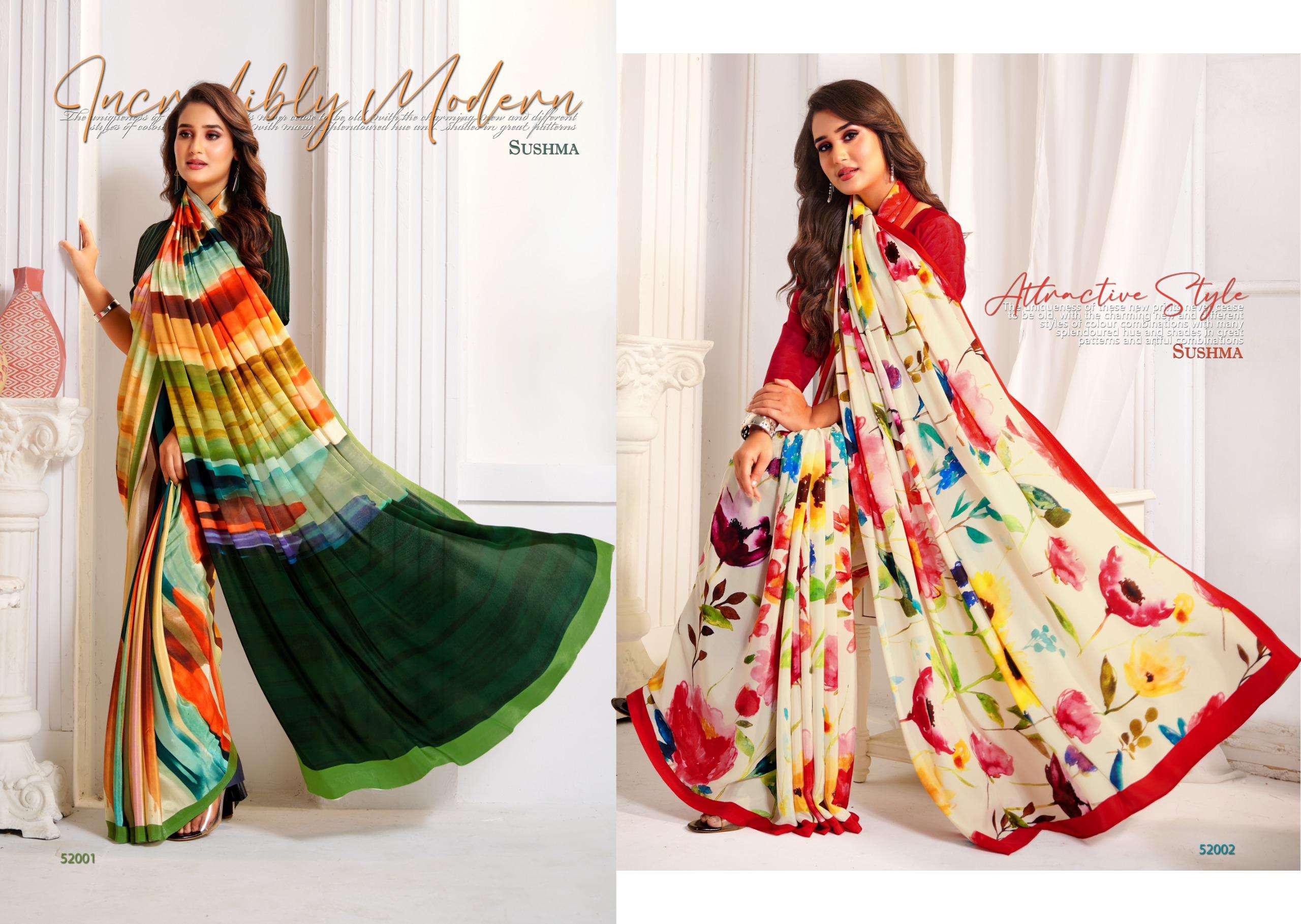 SUSHMA ATTRACTION CLASSY DIGITAL CRAPE SAREE COLLECTION TO REGULAR CLOTH EXPORT