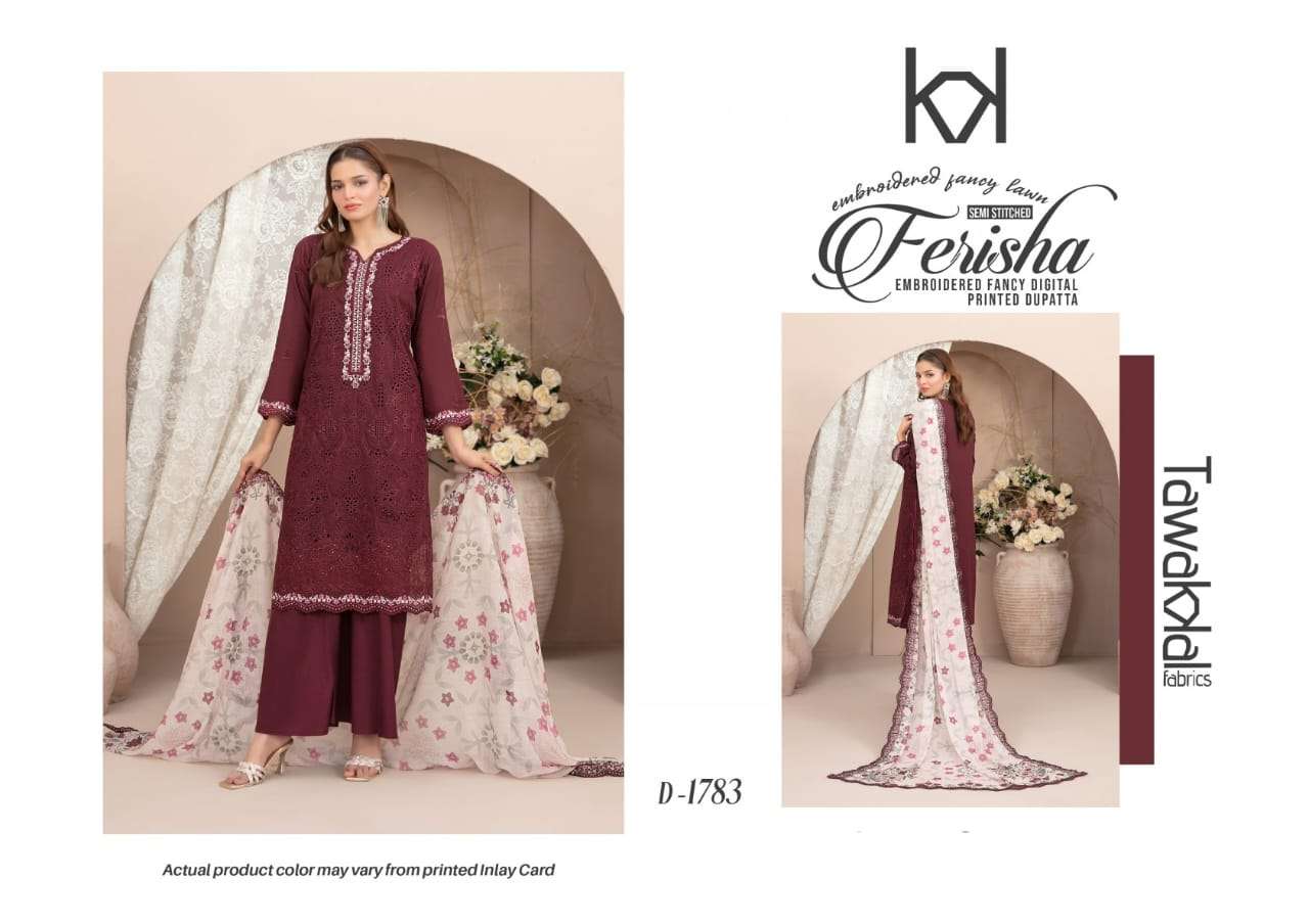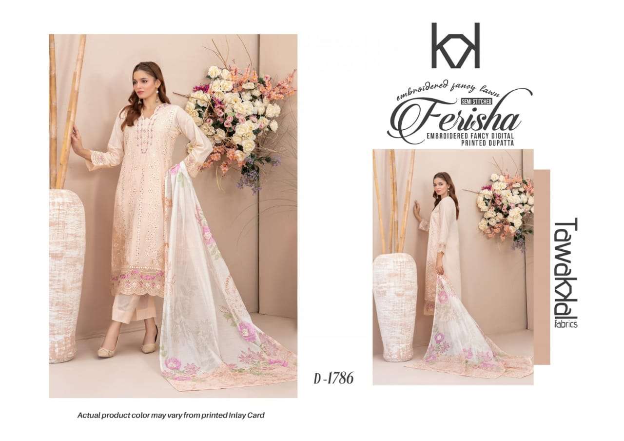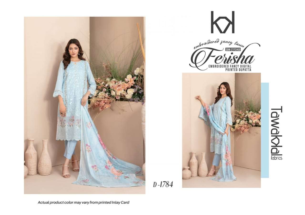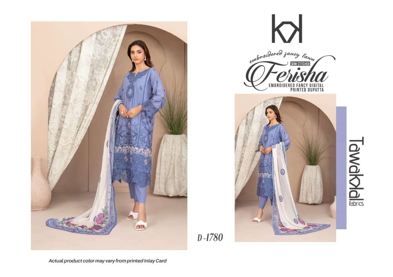 | Title | TAWAKAL FERISHA SEMI STITCH LAWN EMBROIDERY SALWAR SUIT FOR HIGH BRAND SHOP |