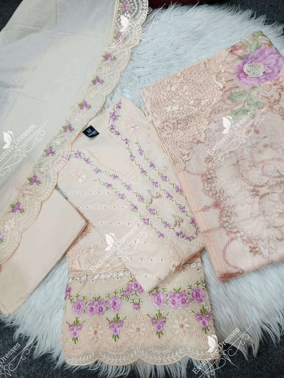 🎗 FERISHA 🎗 Semi-Stitched Fancy Embroidered Slub Lawn Shirt with Embellishments Each Set Contains 10 suits FULL SET ONLY |
