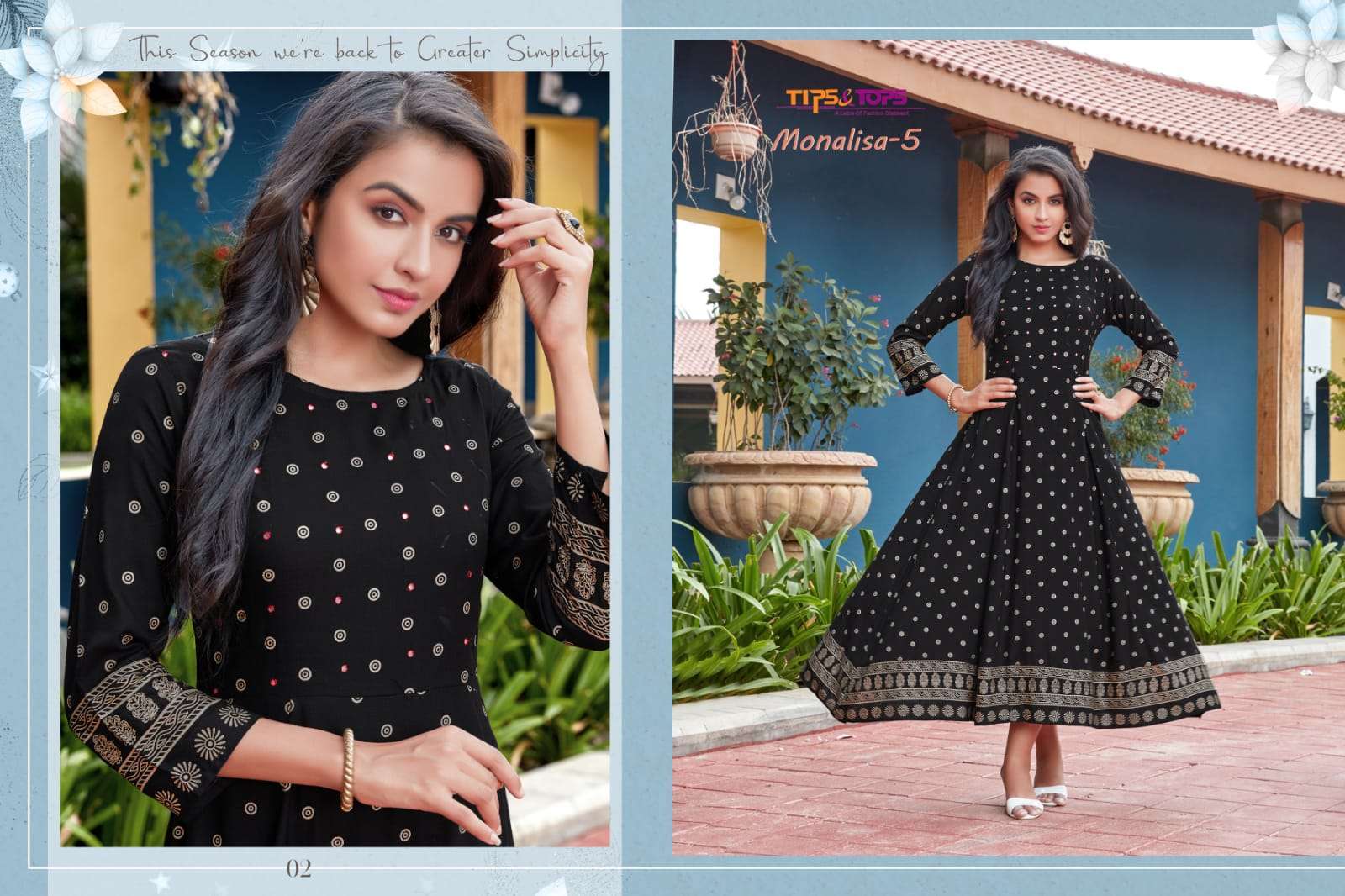 TIPS & TOPS MONALISA VOL 5 RAYON FOIL PRINT WITH WORK KURTIS COLLECTION