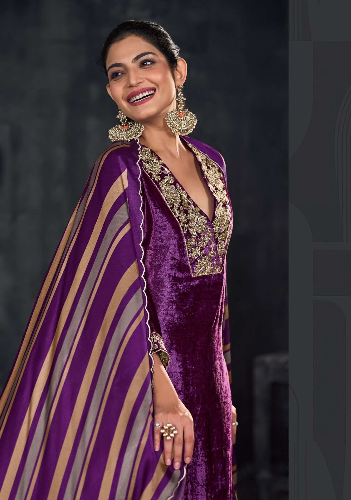 PANAS TOP - PURE VISCOSE VELVET DYED EMBROIDERY AND THREADLE WORK BOTTOM - PURE VISCOSE VELVET DUPATTA - PURE GAZI SILK DIGITAL PRINT WITH EMBROIDERY AND THREADLE FULL SET ONLY |