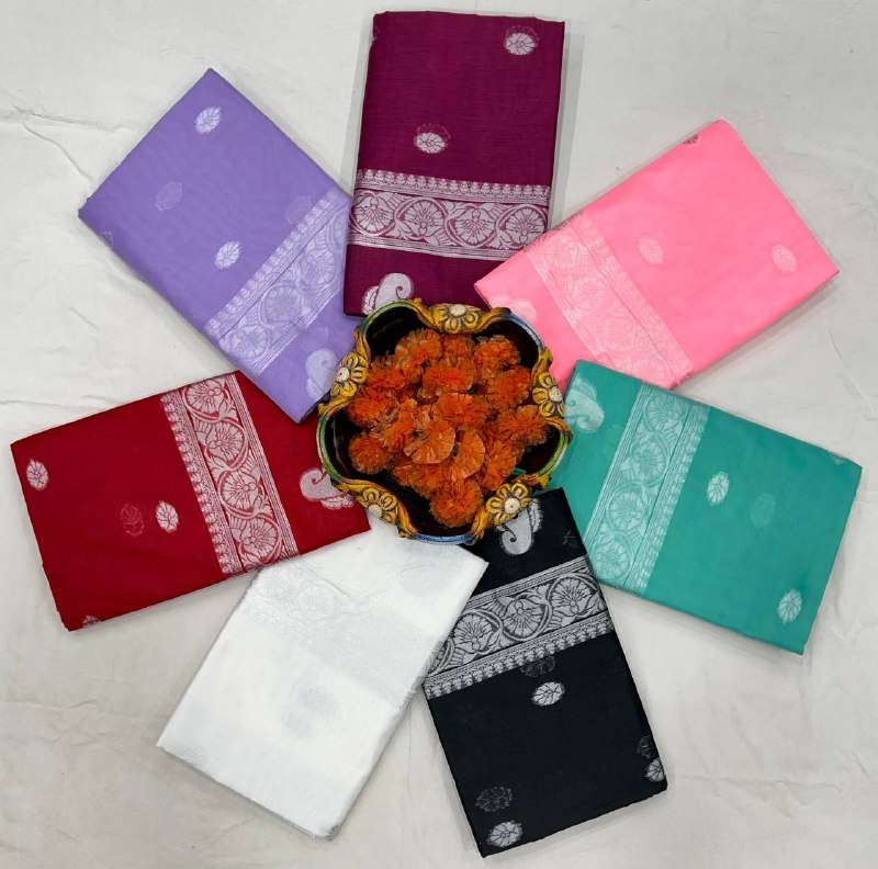 🔱 *KP-R:- 120* 🔱 🔔 *FABRIC :- SOFT LILAN SLAB ATTRACTIVE CHARMFULL* 🚨 *DESIGN : BEAUTIFUL RICH PALLU & JACQUARD WORK ON ALL OVER THE SAREE.* 🔔 *BLOUSE : CONTRAST EXCLUSIVE JACQUARD BORDER.*