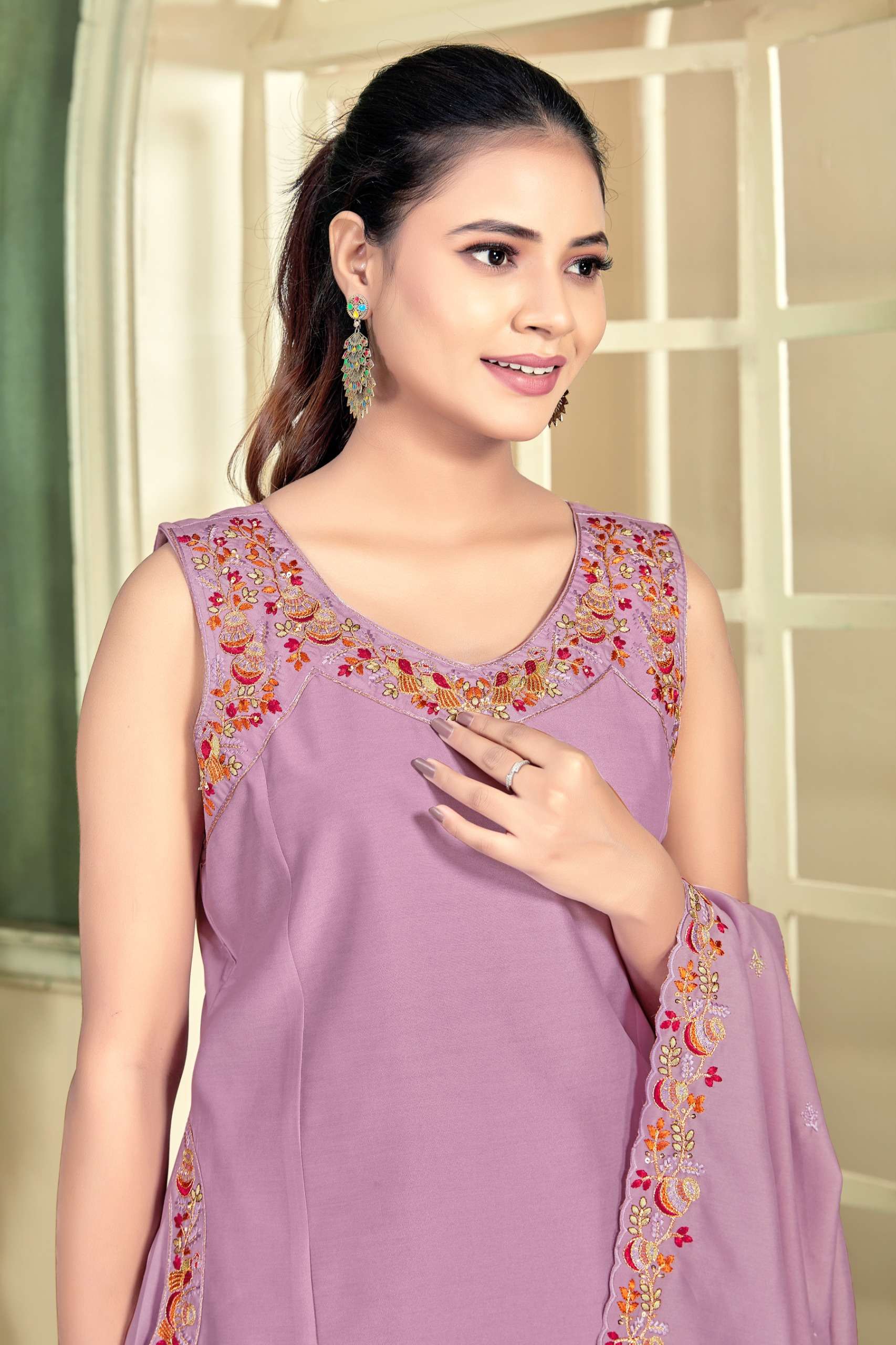 OP - BEAUTIFUL HAND WORK...WITH PREMIUM NACK SLEEVS😍 BOTTOM: HAVEY ROMAN SILK PLAZZO, WITH POCKET DUPATTA: CHANDERI BUTTI SILK BEAUTIFUL EMROIDARI WITH CUT WORK 1_ COLOR DESIGN WITH FULL COTTON INNER SIZES : M- L- XL- 2XL- These are combo sets: Select 1 Color All Size Compulsory |