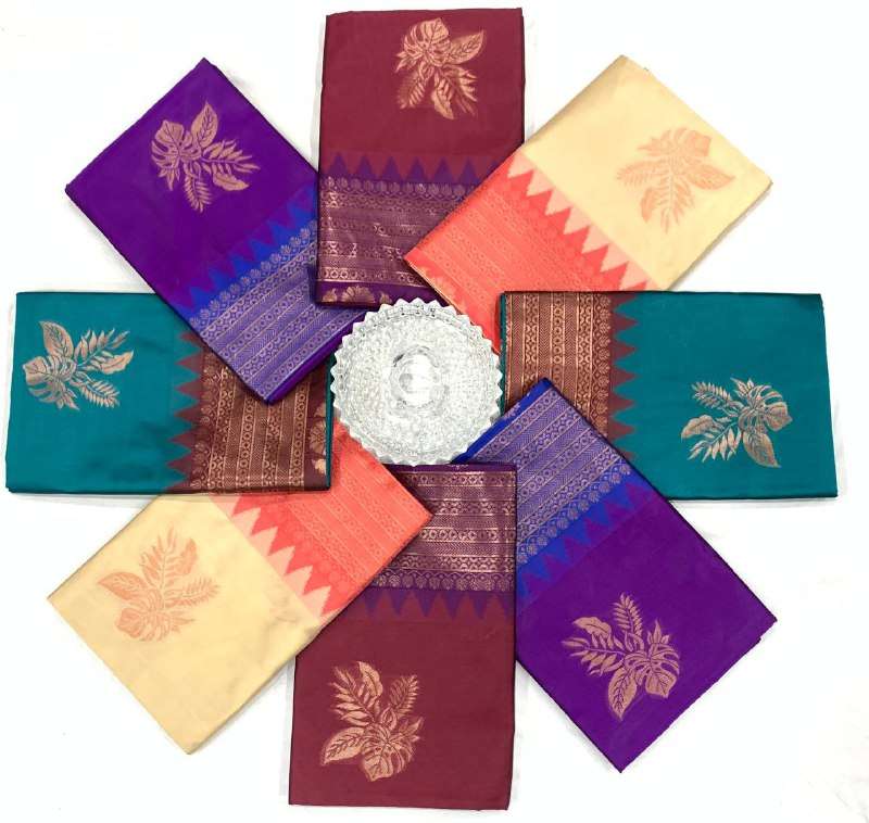 🔱 *KP-R:- 257* 🔱 *FABRIC : SOFT LICHI SILK CLOTH.* *DESIGN : BEAUTIFUL RICH PALLU & JACQUARD WORK ON ALL OVER THE SAREE.* *BLOUSE : CONTRAST EXCLUSIVE JACQUARD BORDER .*