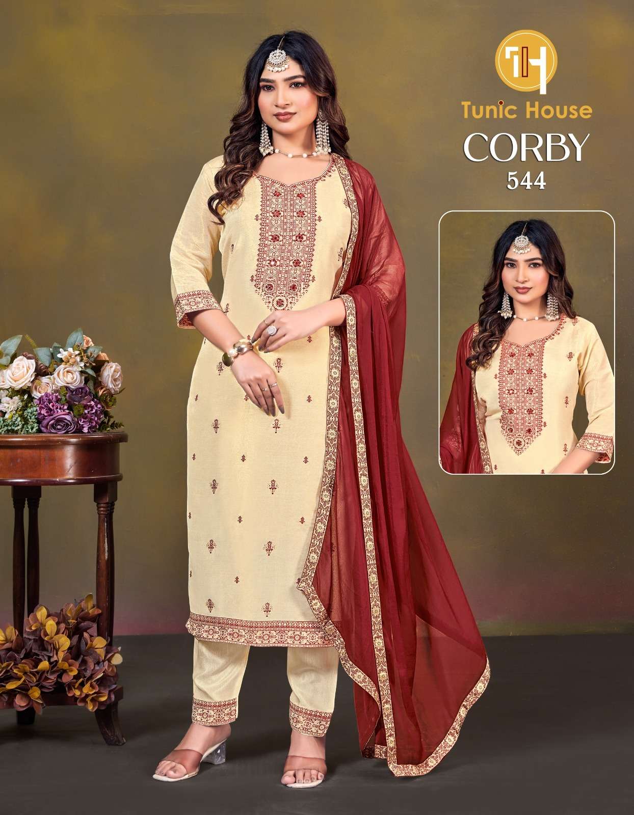 Buy Online TUNIC HOUSE CORBY 542 TO 545 SHIMMER TISSUE FABRIC FAT WOMEN BIG SIZE SUIT DEALER 4 Pcs of Full Catalogue at Wholesale Price. Looking for TUNIC HOUSE CORBY 542 TO 545 SHIMMER TISSUE FABRIC FAT WOMEN BIG SIZE SUIT DEALER Full Catalouge at Best Price? Buy Now TUNIC HOUSE CORBY 542 TO 545 SHIMMER TISSUE FABRIC FAT WOMEN BIG SIZE SUIT DEALER at Wholesale Rate of Rs 4396 with Total 4 Pcs from authroized dealer and supplier of Tunic House Kurti Brand. Cost of Each piece is just only Rs 1099 which is very low and affordable price to resale the product in your retail store Ethnic Export is Surat based Wholesale Supplier & Dealer of Tunic House Kurti Brand. Click on Brand name to Know more about Tunic House Kurti Brand's products.Call or Whatsapp on +91-9825759366 for booking or enquiry