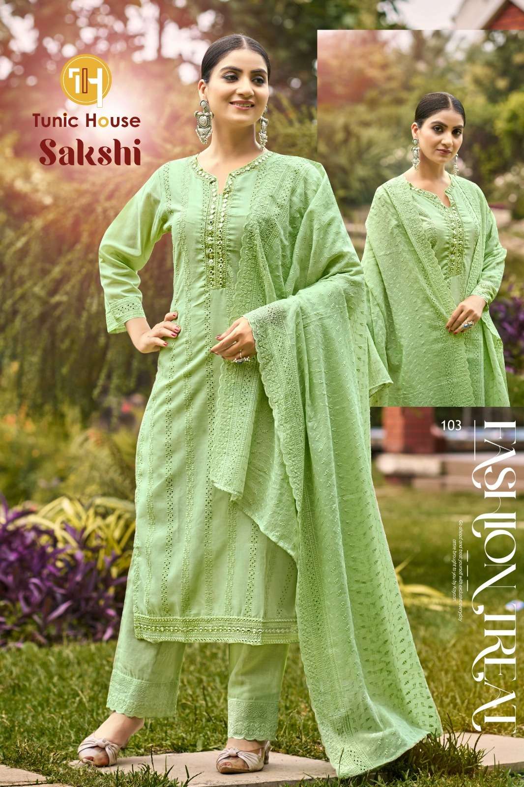 Buy Online TUNIC HOUSE SAKSHI COTTON SHIFFLY WORK READYMADE SALWAR SUIT TO FESTIVAL DEALER 5 Pcs of Full Catalogue at Wholesale Price. Looking for TUNIC HOUSE SAKSHI COTTON SHIFFLY WORK READYMADE SALWAR SUIT TO FESTIVAL DEALER Full Catalouge at Best Price? Buy Now TUNIC HOUSE SAKSHI COTTON SHIFFLY WORK READYMADE SALWAR SUIT TO FESTIVAL DEALER at Wholesale Rate of Rs 5495 with Total 5 Pcs from authroized dealer and supplier of Tunic House Kurti Brand. Cost of Each piece is just only Rs 1099 which is very low and affordable price to resale the product in your retail store Ethnic Export is Surat based Wholesale Supplier & Dealer of Tunic House Kurti Brand. Click on Brand name to Know more about Tunic House Kurti Brand's products.Call or Whatsapp on +91-9825759366 for booking or enquiry