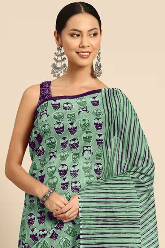 FABRICS : *Soft Pure Cotton* SAREES : *6.30 MTR PURE COTTON FANCY IKKAT BLOCK PRINT SAREES WITH BLOUSE PICE* *Colour - 4*