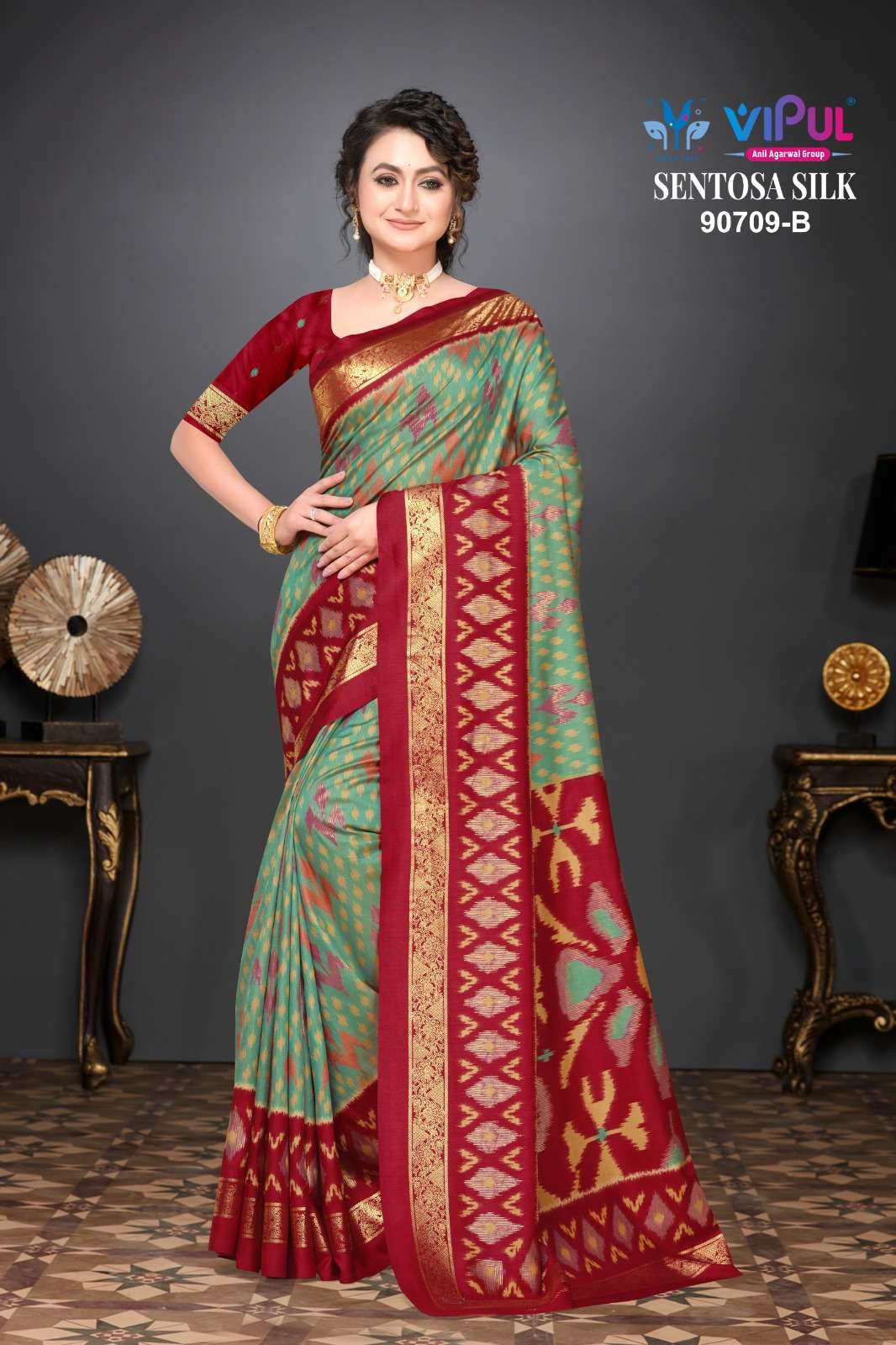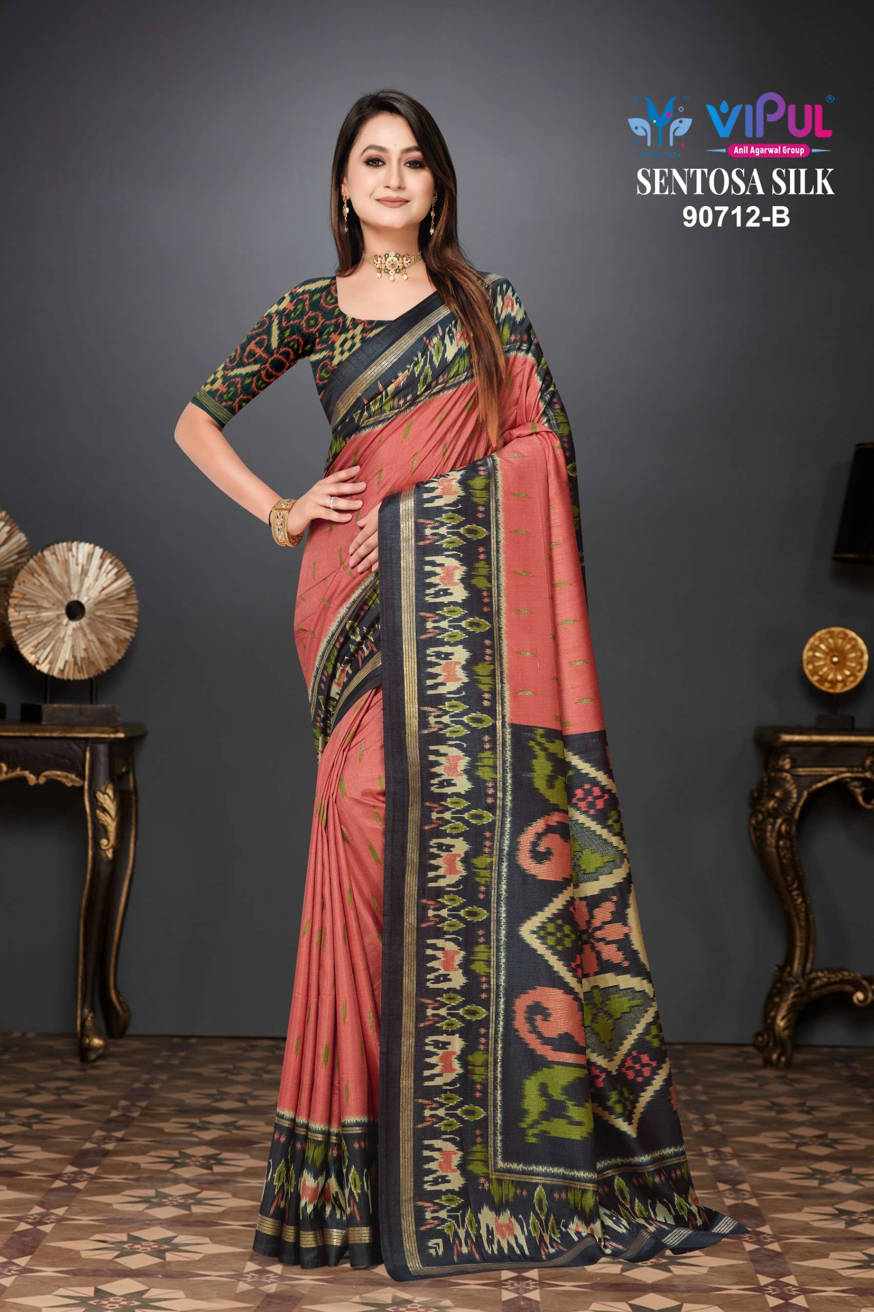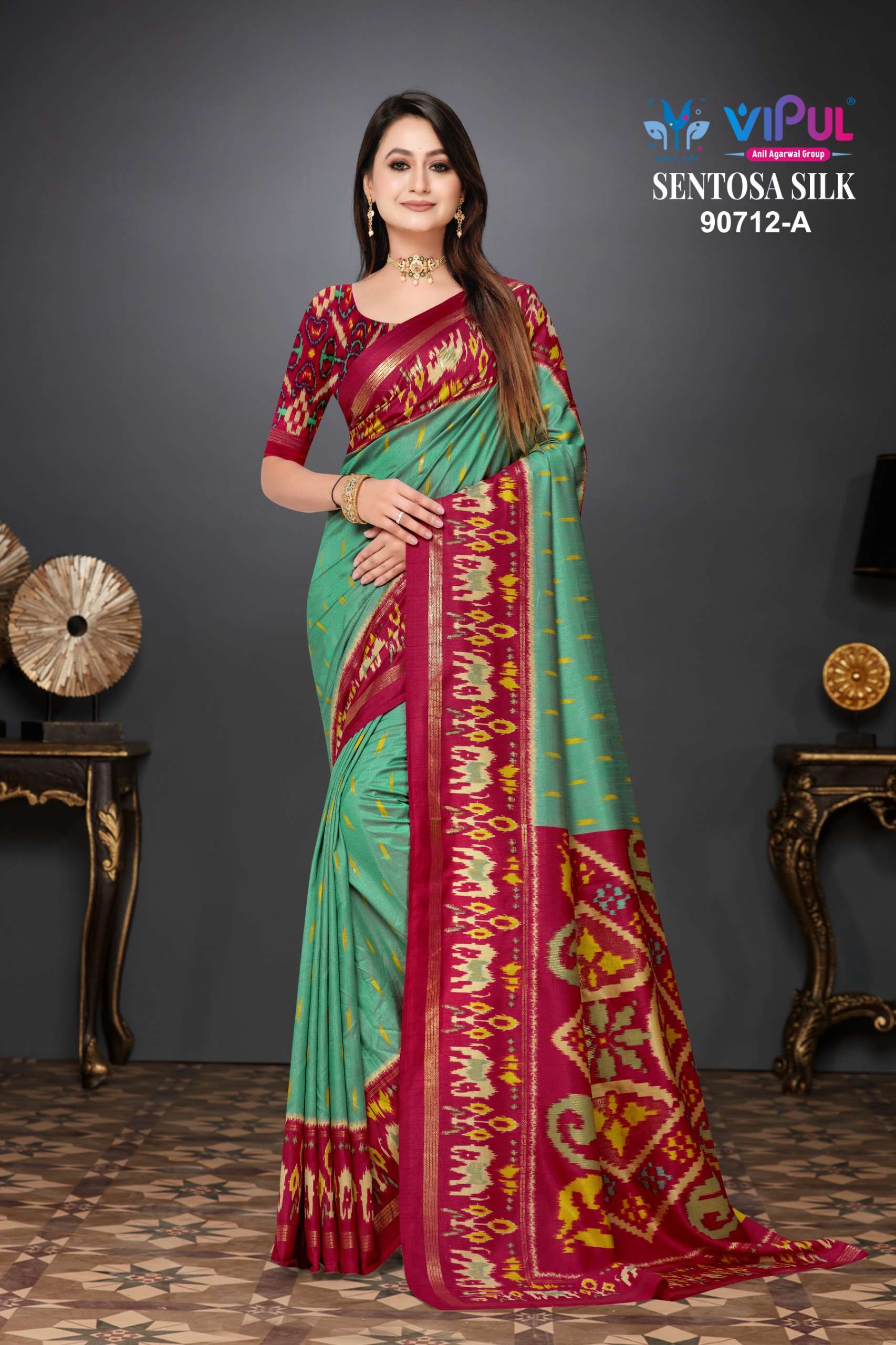 VIPUL 92332 INDIA TRADITIONA SENTOSA SILK SAREE SET SURAT MARKET