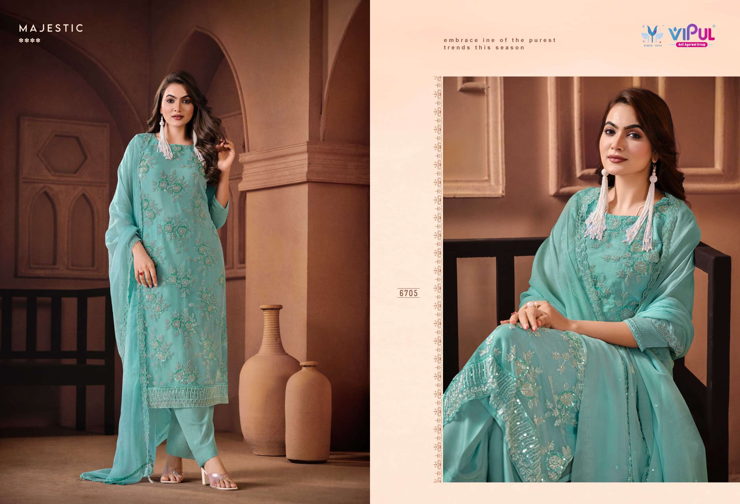 Buy Online VIPUL FASHION ARISSA CHIFFON HEAVY FLOWER EMBROIDERY SUIT FOR WEDDIGN ALL WEAR 5 Pcs of Full Catalogue at Wholesale Price. Looking for VIPUL FASHION ARISSA CHIFFON HEAVY FLOWER EMBROIDERY SUIT FOR WEDDIGN ALL WEAR Full Catalouge at Best Price? Buy Now VIPUL FASHION ARISSA CHIFFON HEAVY FLOWER EMBROIDERY SUIT FOR WEDDIGN ALL WEAR at Wholesale Rate of Rs 13140 with Total 5 Pcs from authroized dealer and supplier of Vipul Fashion Surat Brand. Cost of Each piece is just only Rs 2628 which is very low and affordable price to resale the product in your retail store Ethnic Export is Surat based Wholesale Supplier & Dealer of Vipul Fashion Surat Brand. Click on Brand name to Know more about Vipul Fashion Surat Brand's products.Call or Whatsapp on +91-9825759366 for booking or enquiry